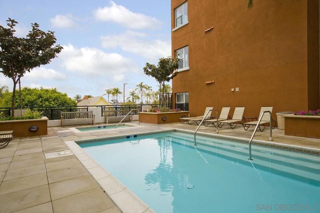 This unit is both the most coveted location in Hillcrest with the most sought after one bedroom layout. Open floor plan, huge bedroom and walk-in closet. Enjoy this natural light west facing unit. The expansive balcony creates even more space as outdoor living. The unit is in excellent condition with hardwood floors, stainless steel appliances, granite counter tops. Swimming pool, fitness center, social lounge. Walk to Balboa Park and all the restaurants. Car Charging Stations! STORAGE AND GUEST PARKING. Complex Features: ,,,,,,, Equipment: Dryer,Fire Sprinklers,Garage Door Opener, Washer Sewer: Sewer Connected Topography: LL Frontage: Bay