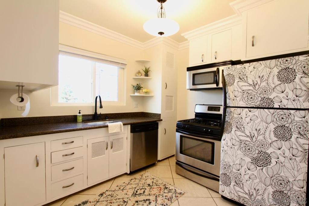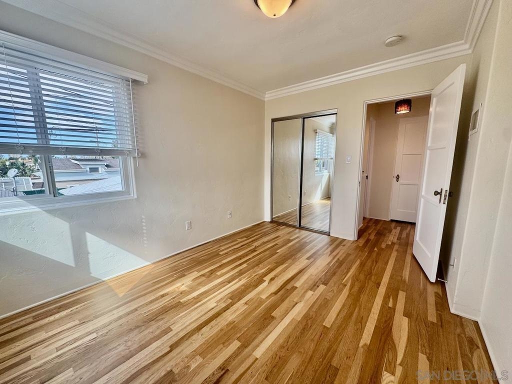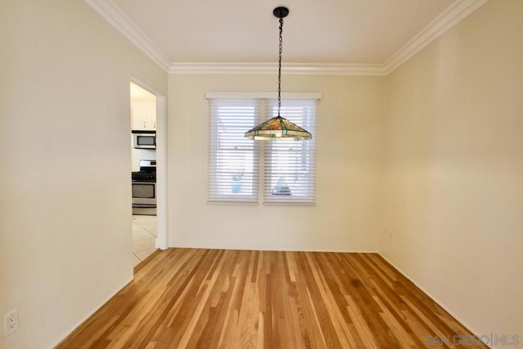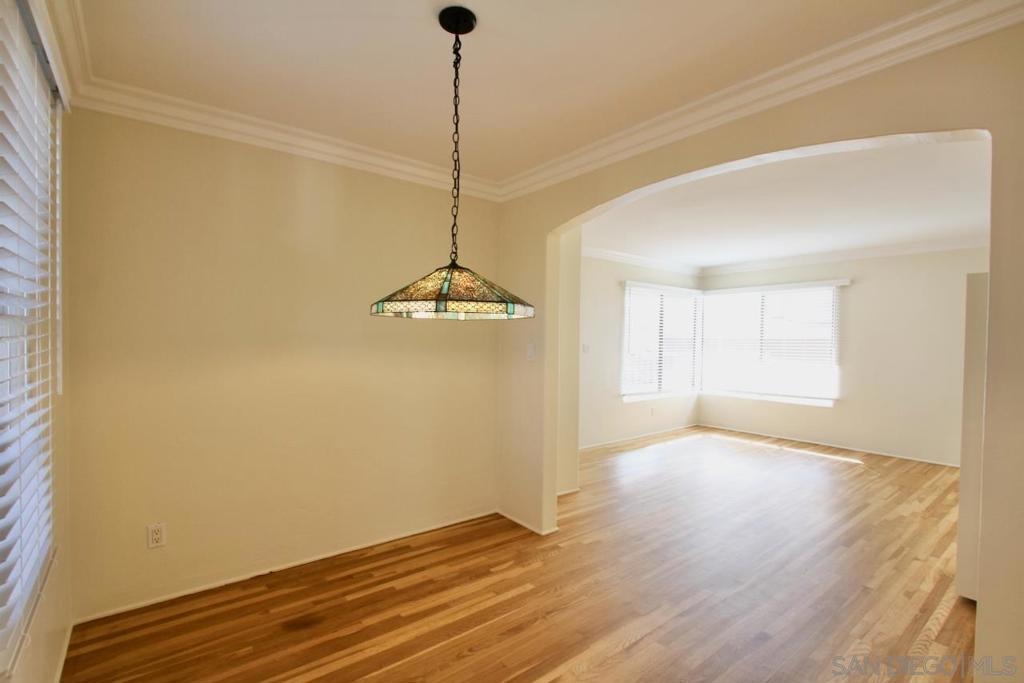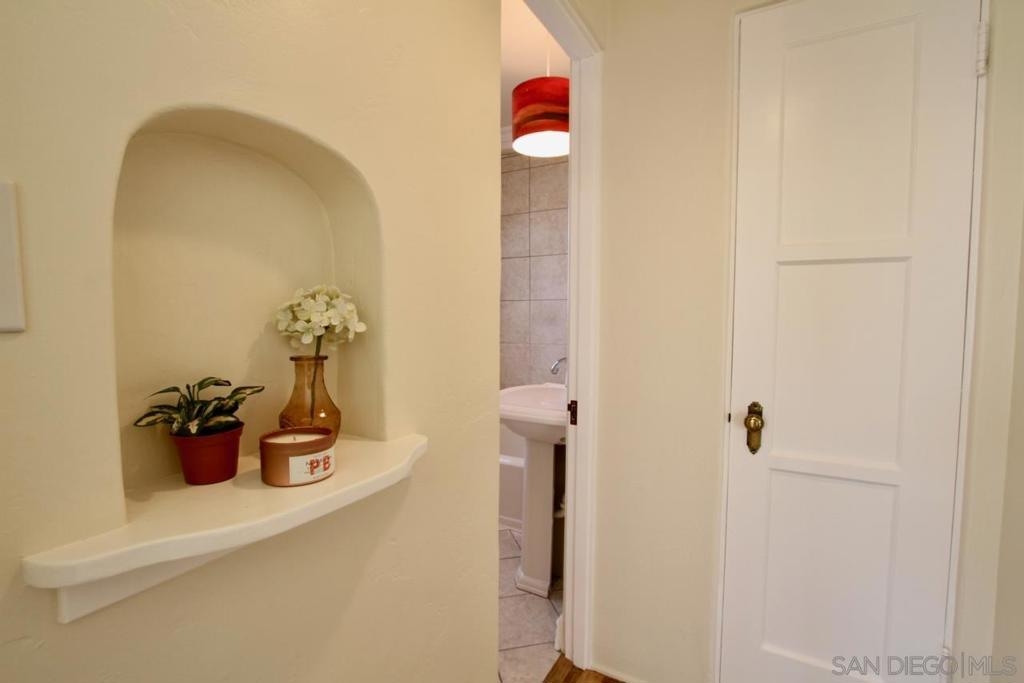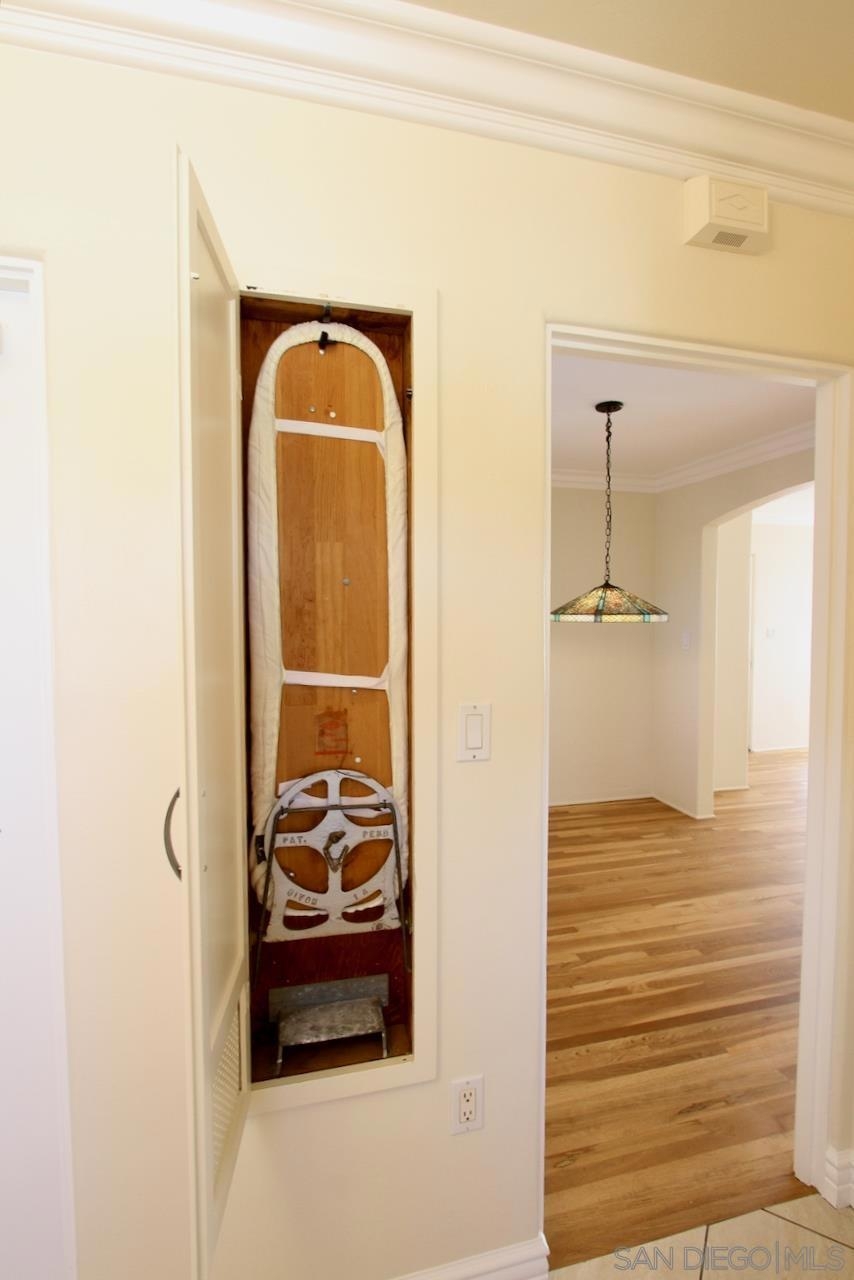 Discover timeless charm in this top-floor, end-unit condo tucked away in a 1939 Art Deco building that was converted to condominiums in 2006. This 1-bedroom, 1-bath residence offers 548 square feet of stylish living space infused with vintage character and modern updates. Original hardwood floors have been beautifully refinished, complementing freshly painted interiors, newly painted kitchen cabinets and updated hardware, and brand-new window blinds. Unique Art Deco details abound—from original doors and hardware to classic light fixtures and a decorative wall niche that nods to the building’s architectural heritage. The spacious layout feels bright and inviting, with generous storage throughout. As an end unit, it shares only one wall and enjoys wraparound exclusive-use outdoor space—perfect for relaxing or entertaining. Additional highlights include a private one-car garage accessed via the alley and free community laundry conveniently located just steps from the unit. Ideally situated within walking distance to Balboa Park, local shops, and restaurants, this condo blends historic allure with urban convenience in one exceptional home.