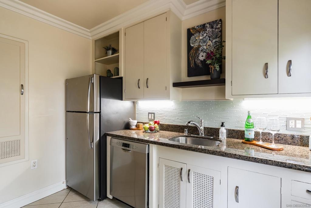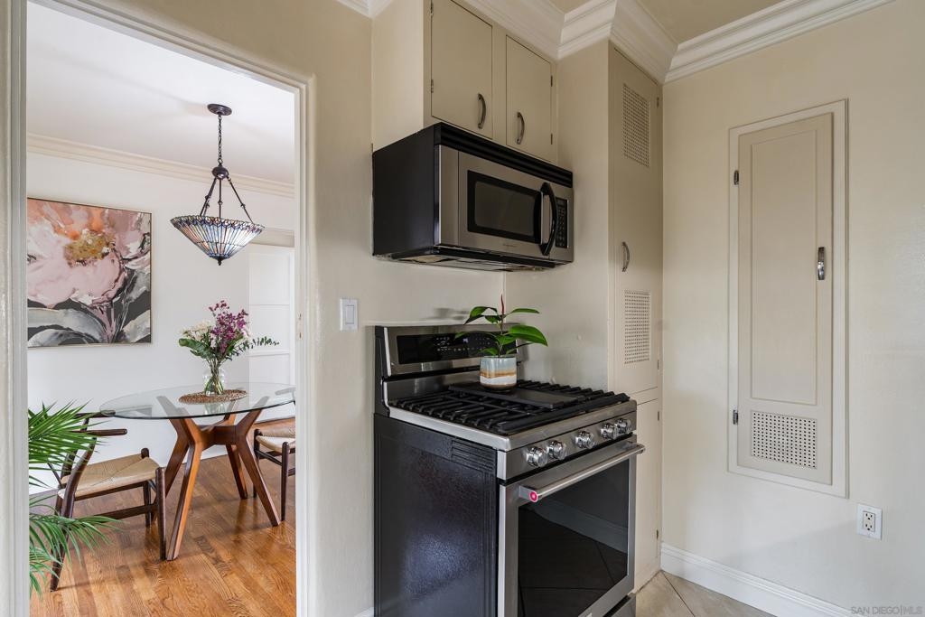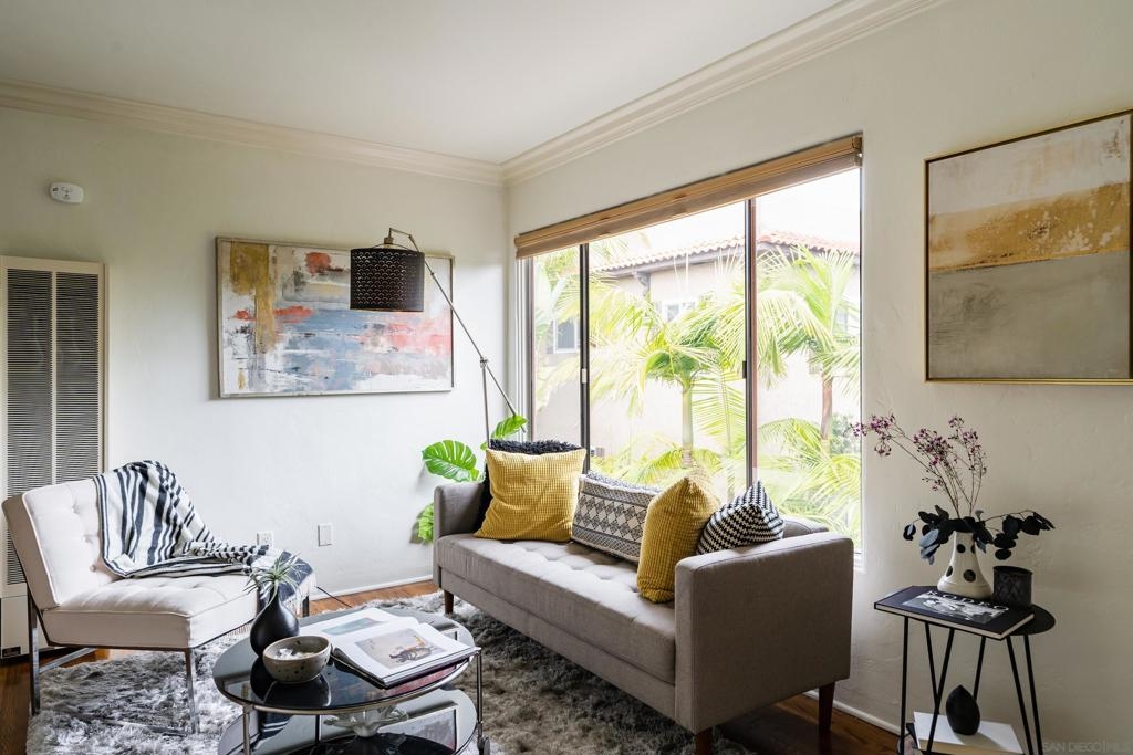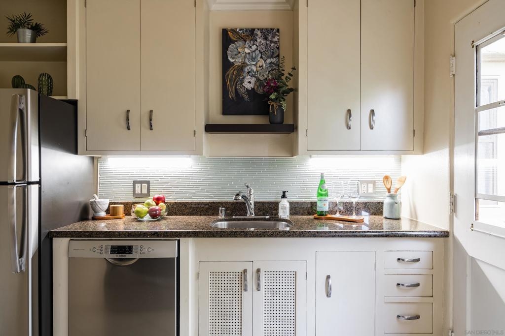 Welcome to your new home nestled in the heart of Marston Hills, San Diego! This classic one-bedroom, one-bathroom unit offers a delightful retreat to call your own. Situated in an unbeatable location, you’ll find yourself just steps away from the vibrant energy and bustling activity of Hillcrest. As you step inside, you’ll be greeted by a bright and airy living space, adorned with plenty of natural light and vintage art deco rounded walls, custom crown molding and refinished real hardwood floors throughout. The surrounding lush tropical greenery creates a warm and inviting atmosphere, perfect for unwinding after a long day. The kitchen comes fully equipped with sleek stainless steel appliances, gleaming granite countertops, and ample cabinet space. The bedroom is well-appointed, featuring a generous walk-in closet to cater to all of your storage needs. With the world-famous San Diego Zoo located nearby, you may even hear the lions roar in the morning! Moreover, a variety of restaurants, cafes, and bars are within easy walking distance, providing endless opportunities for exciting exploration. Downtown San Diego is easily accessible, granting effortless access to all the city has to offer, while the presence of nearby parks offers delightful opportunities to revel in the great outdoors. Furthermore, the central location ensures easy access to major freeways, enhancing convenience and connectivity. Don’t miss out on the chance to experience the best of Hillcrest living!