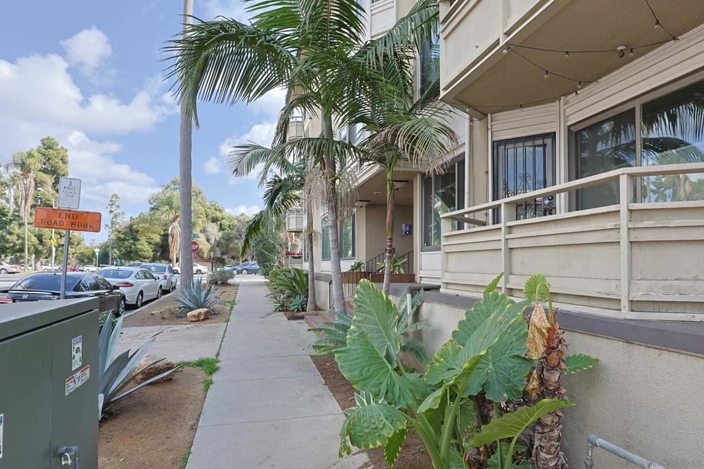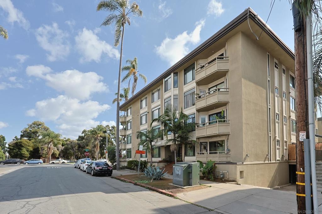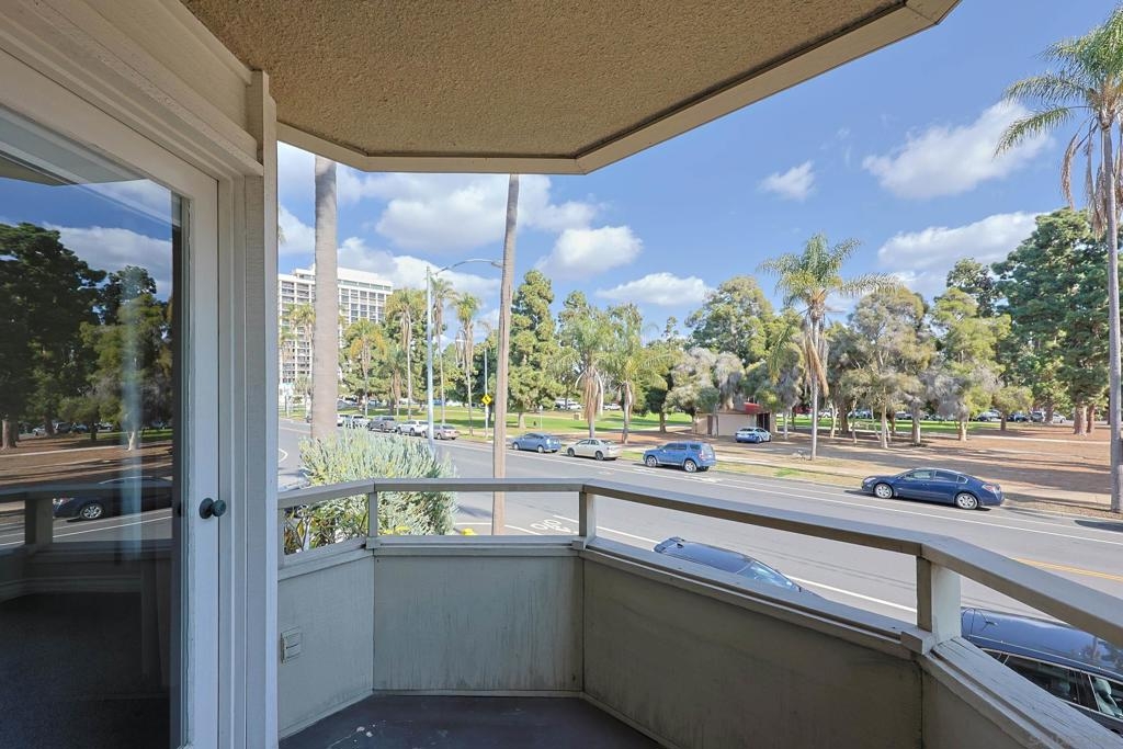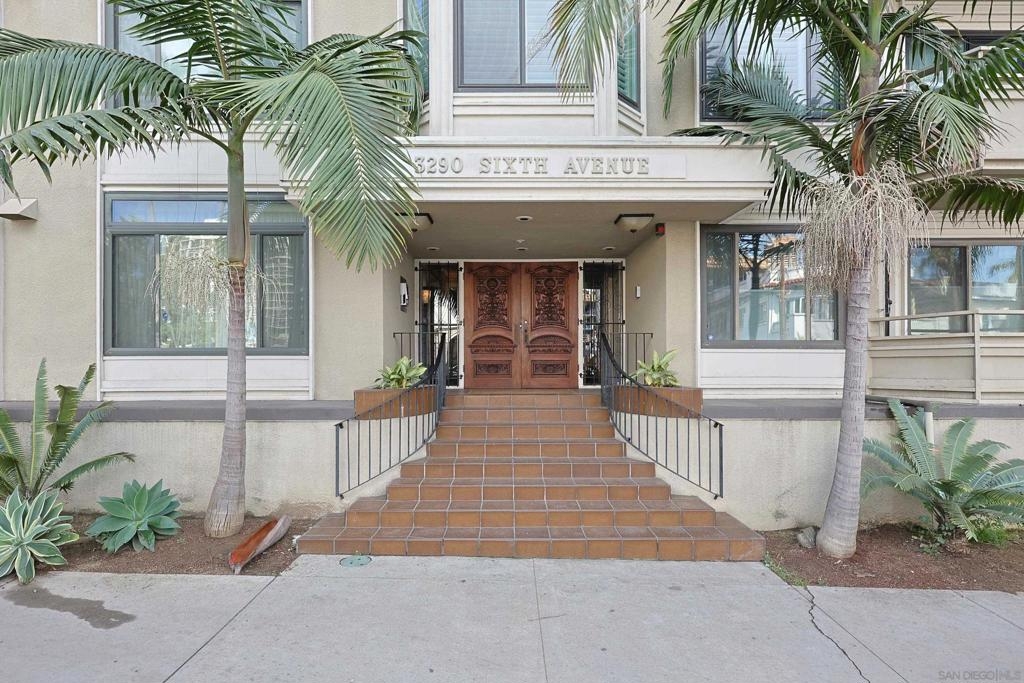 Rare opportunity to own an affordable condo right on 6th Avenue facing Balboa Park in a very walkable location. This second story unit has unobstructed views from the spacious living room, bedroom and balcony. Access to the balcony is from both bedroom and living room. This home has 736 sq ft, crown moldings, newer carpet and tile, double paned windows, and a dining area. Very livable floorpan with lots of storage. There is one underground parking space and storage. Laundry room on each floor. Low HOA fees. A lobby on each level adds a sophisticated vibe. Very nice!