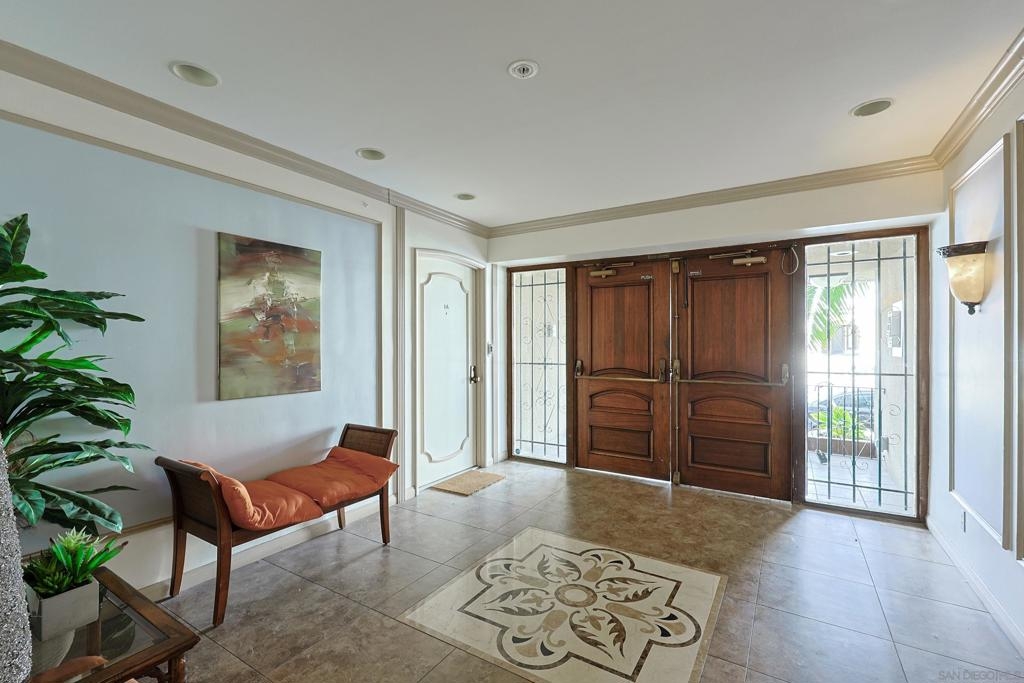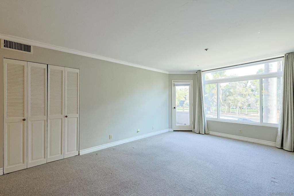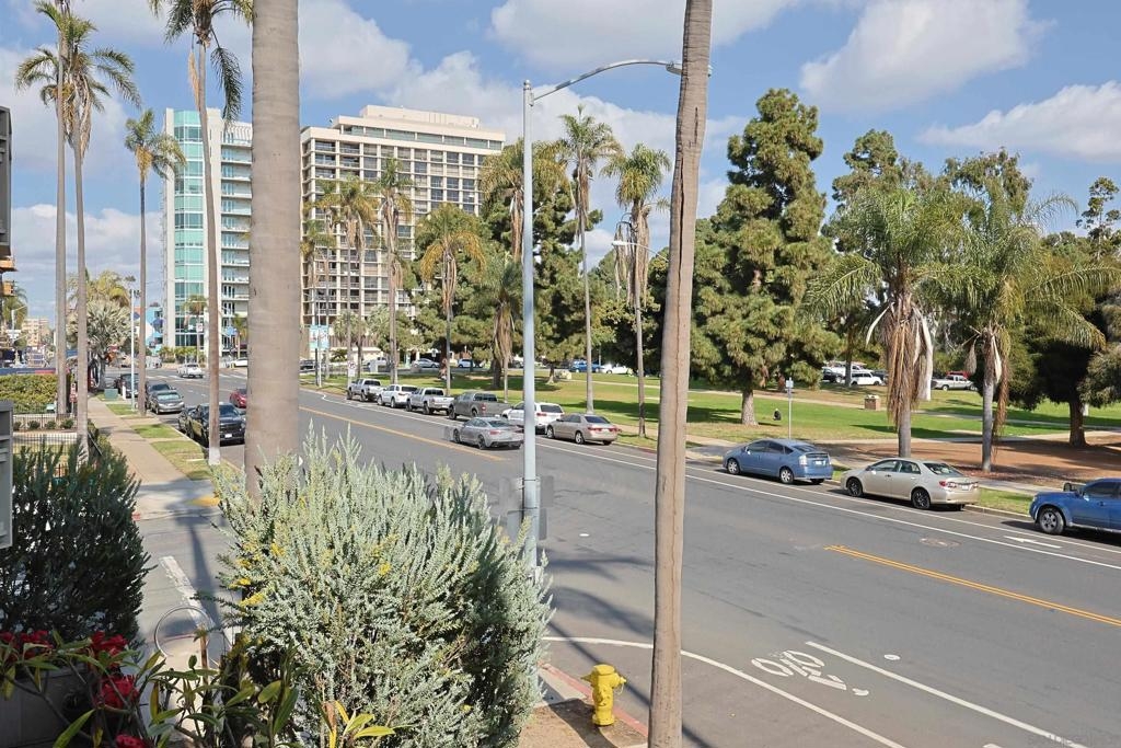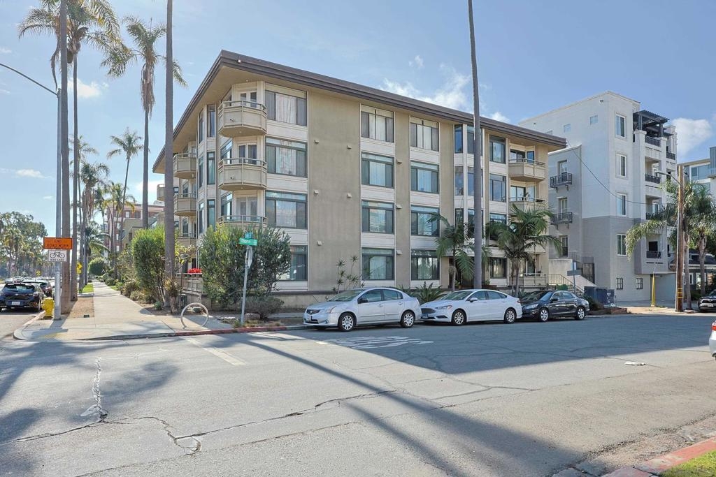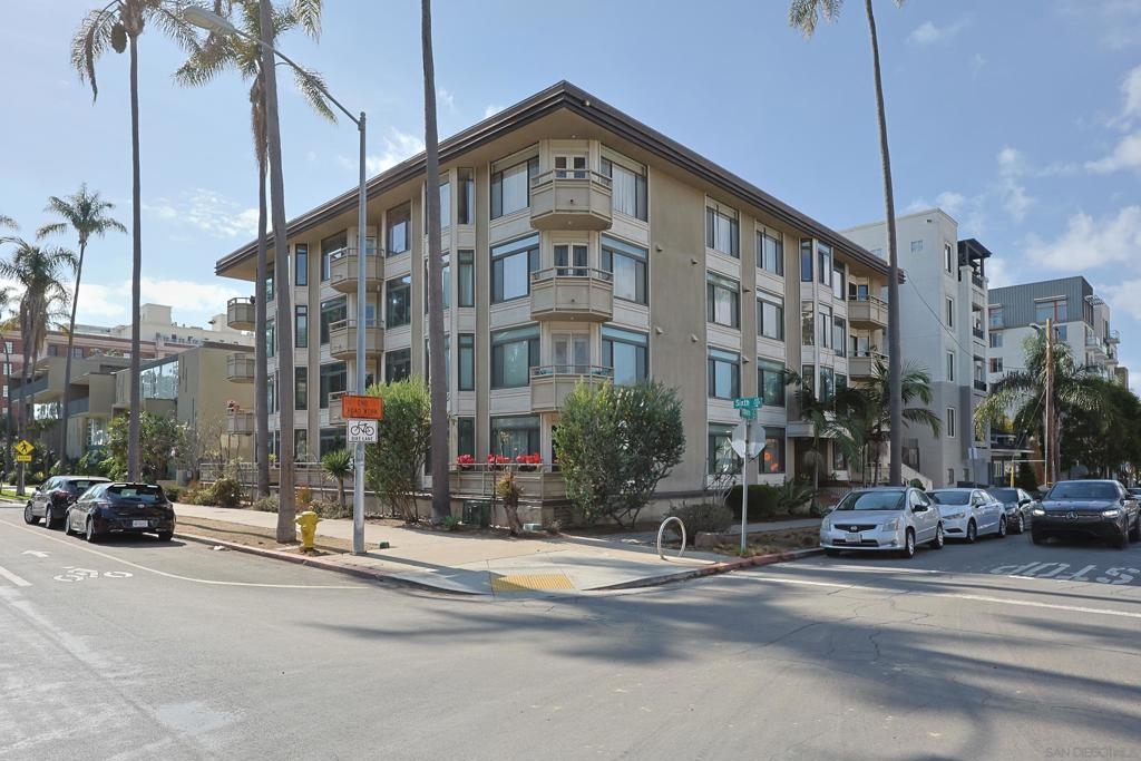 Rare opportunity to own an affordable condo right on 6th Avenue facing Balboa Park in a very walkable location. This second story unit has unobstructed views from the spacious living room, bedroom and balcony. Access to the balcony is from both bedroom and living room. This home has 736 sq ft, crown moldings, newer carpet and tile, double paned windows, and a dining area. Very livable floorpan with lots of storage. There is one underground parking space and storage. Laundry room on each floor. Low HOA fees. A lobby on each level adds a sophisticated vibe. Very nice!