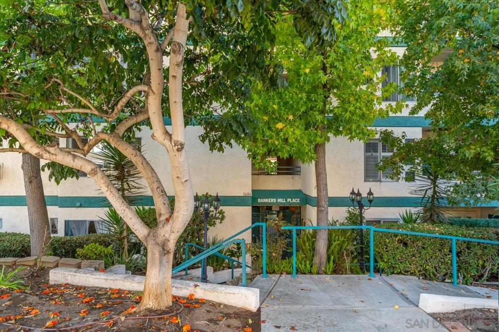 Beautiful sunlit Bankers Hill 2 Bedroom/2 Bath condo. An end-unit filled with light, windows on 3 sides. Located on the SW corner of the building, the unit enjoys sunset views. Living room and main bedroom open through French doors onto a covered balcony. New engineered wood flooring and a new furnace. Lovely kitchen with incredible storage, gas stove, and granite tile counters. Secure underground parking, community spa. Great central location, close to Balboa Park, Hillcrest, Downtown, local restaurants Pet restrictions--2 max not to exceed 25 lbs each. Complex Features: ,, Equipment: Garage Door Opener Other Fees: 0 Sewer: Sewer Connected Topography: LL