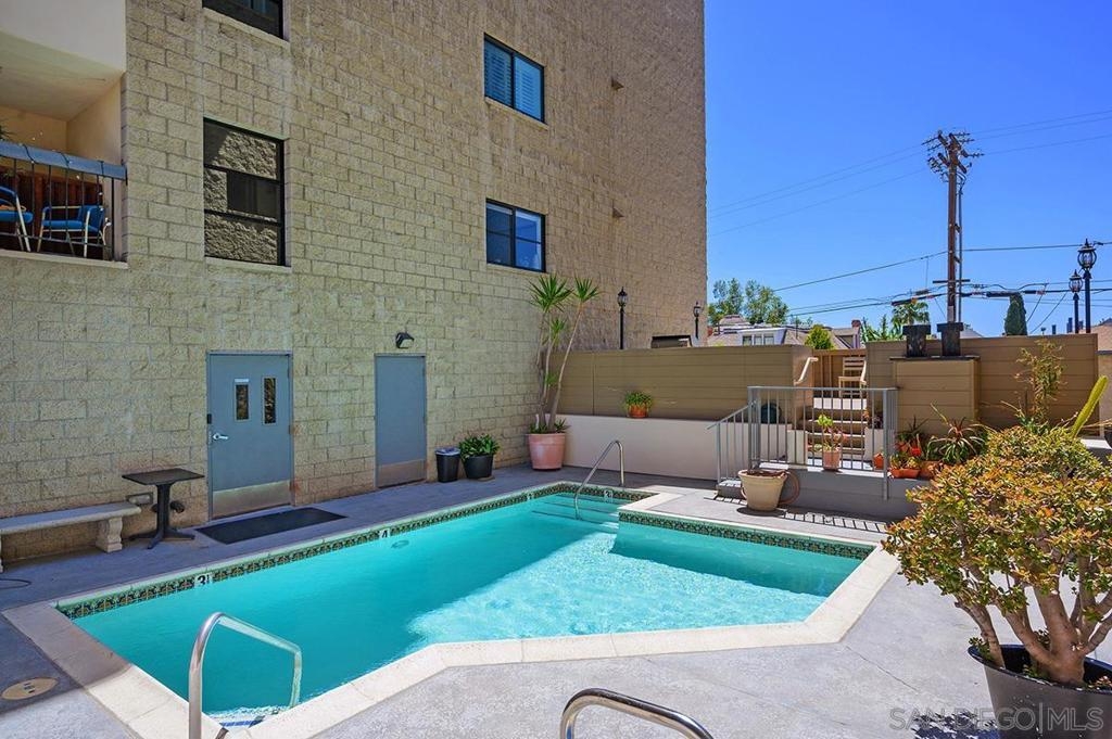 Don't miss this sophisticated and chic condo in the heart of Bankers Hill. Contemporary features in the kitchen include quartz counters, stylish shaker cabinets with soft close drawers, stainless appliances, large island, and side-by-side laundry closet. Stylish light fixtures, planked floors, recessed lighting, ceiling fans, fireplace, and highly upgraded bathrooms. A sunny, west-facing balcony offers a lovely oasis at the end of the day. Pool, spa, BBQ area and sun deck. All the work has already been done--you just move right in and enjoy! Close to restaurants, cafes, and Balboa Park. Complex Features: ,,,, Equipment: Dryer,Garage Door Opener, Washer Sewer: Sewer Connected Topography: LL
