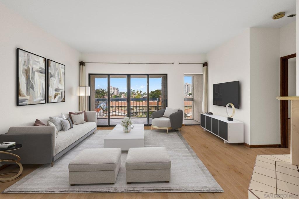 ***Motivated Seller***Personifying refined upscale living, this penthouse offer an abundance of natural light. The single level floor plan hosts a living room leading out a spacious balcony, dining area, 2 bedrooms, primary bath with dual sinks, and a kitchen open to the living area. The Bankers Hill lifestyle is enhanced in close proximity to Balboa Park, San Diego Zoo & numerous shops and dining. Parking consists of a 2-car garage with storage in the garage. Buyer to select flooring from seller.