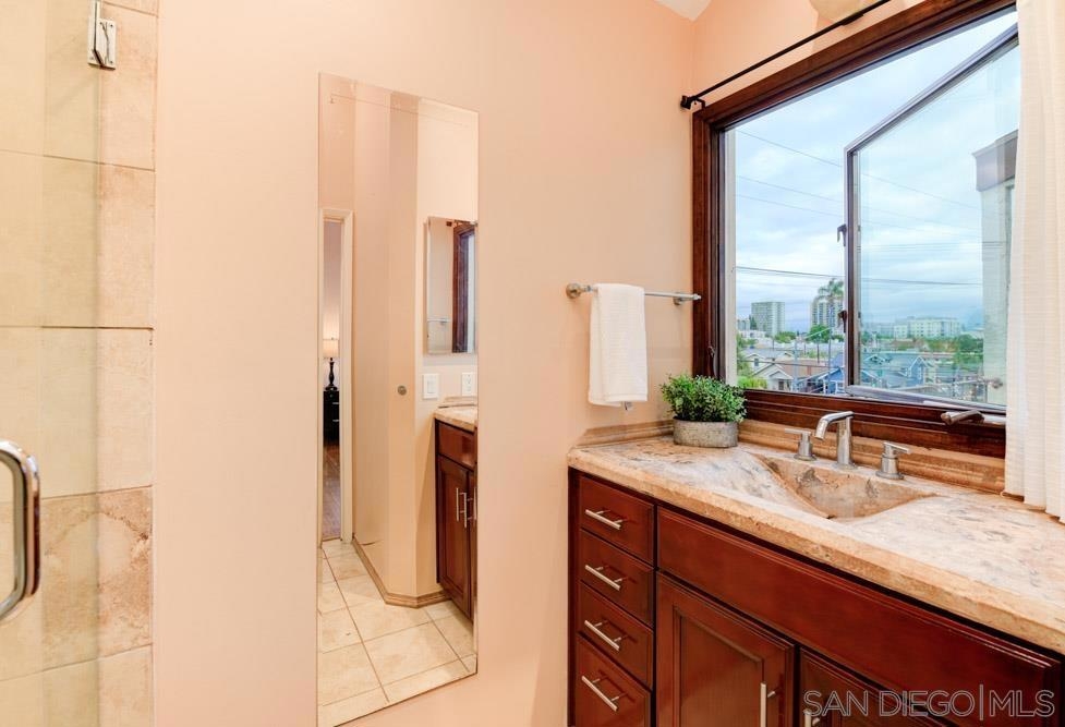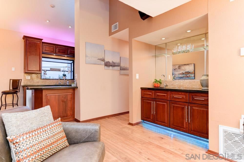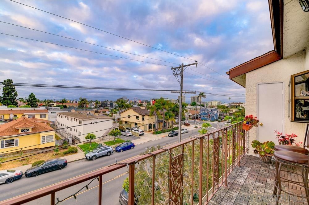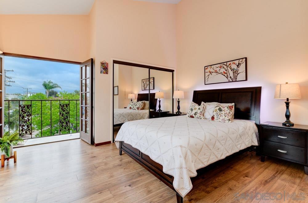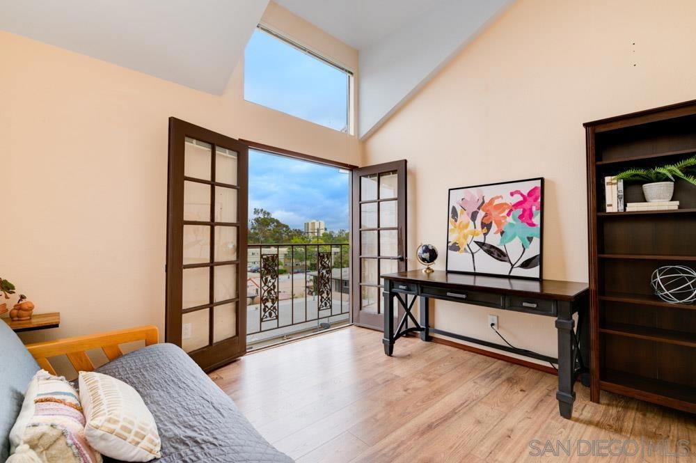 It's Here.. The One and Only Penthouse Entertainers Model in Hillcrest's Most Desirable Neighborhood! This cozy home boasts 15+ ft vaulted ceilings throughout the living areas and bedrooms with custom Wi-Fi lighting, plus an entertainers wet bar with sink and storage for those lovely sunset evenings with family and friends. YOU will LOVE the choice of outdoor space whether you overlook the heart of the city from your private balcony, patio or just a peak from out the Juliet' balconies in both bedrooms. Primary bedroom features two balconies and a spacious bright bathroom with a walk-in shower and a natural sun skylight. Secondary bedroom features vaulted ceiling with high windows to brighten up your space. With a convenient 94 walk score, you are only minutes of a stroll down to Trader Joe's, Ralphs, Hillcrest Hub Shopping Center and much much more. Easy freeway access to Downtown San Diego, Balboa Park, beaches and your favorite places to go. This amazing condo has laundry in unit with newer stack washer/dryer. This rare top floor model and location is the only 1 out of 33 in the community. Super low HOA that includes water/trash, gated entry, one reserved parking space with EV CHARGER in the gated garage, gym, clubhouse and elevator access. GRAB this ONCE in a life time opportunity before it's gone, FRI-SAT-SUN!