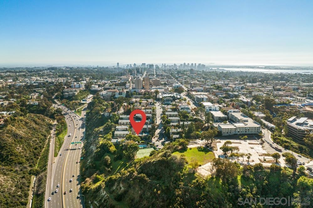 Lovely, unique, one of a kind, top floor 1br/1ba condo in the highly desirable and amenity rich Canyon Woods complex in the vibrant community of Hillcrest. Upon entering this amazing unit, you will immediately notice the abundance of natural light that draws you into the spacious family room. This home has only ONE shared wall and is ideally located overlooking the pool, tennis courts, and trees/green space of the community. The location of this unit is ideal. It is not only convenient to the abundance of ameneiies in the complex, but to all that Hillcrest and San Diego have to offer. Beautiful, gleaming hardwood floors throughout framed by beautiful marble tile. The kitchen is open to the living space. Ample storage throughout in the kitchen including a pantry, built-in storage in the bedroom, walk-in closet, and space off of the long balcony for more storage. There is also first-come, first-serve storage in the community. The bathroom also features more storage, updated vanity and a walk-in shower stall. Tennis courts, swimming pool, spa, ping pong table, recreation/club house, and dog run are among the amenities of the community. There is one parking space, but an abundance of guest parking spaces nearby. The community laundry is nearby and there is bike storage as well. Canyon Woods is a resort like community. It is perfectly located to the energetic community of Hillcrest and not far from other neighborhoods and destinations of San Diego, including Mission Valley, Bankers Hill, Little Italy, Downtown, Point Loma, the beaches, the airport, and so much more. Nestled in the canyon side, there is little to no noise in the commuity. It has a very tranquil and serene feel. It's more than a home. It's a Lifestyle! Complex Features: ,,,,,,,, Equipment: Range/Oven Sewer: Sewer Connected, Public Sewer Topography: ,,GSL