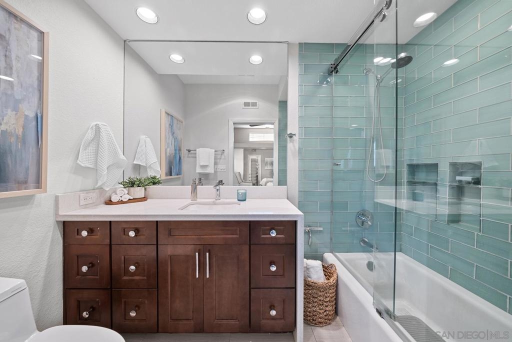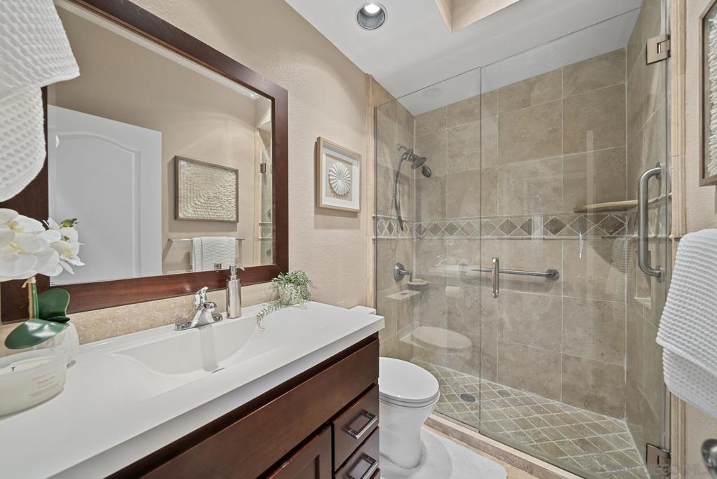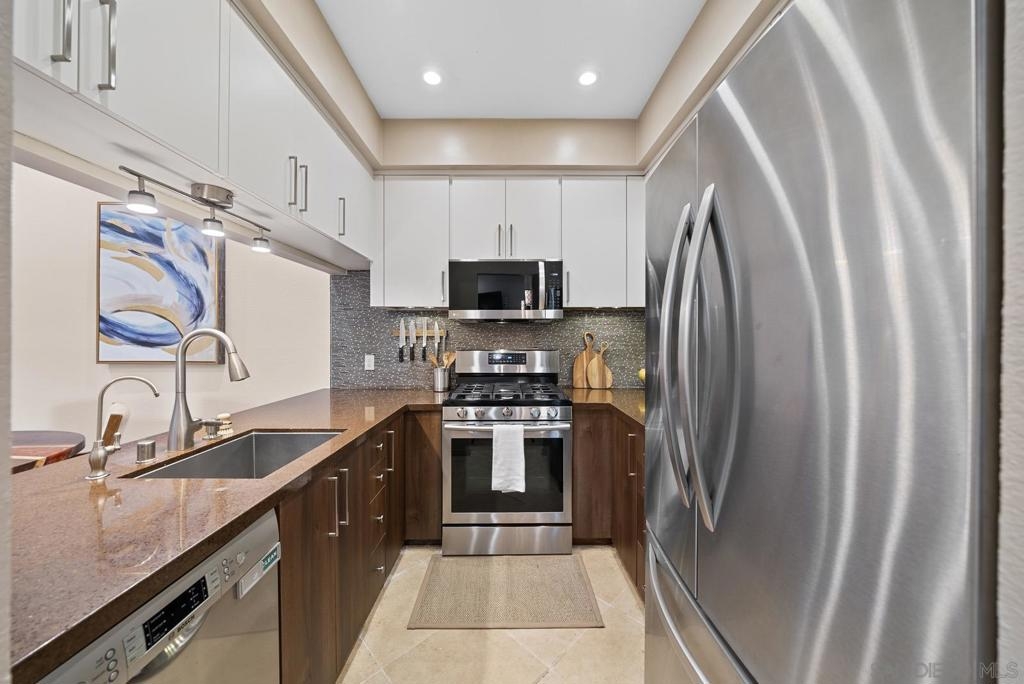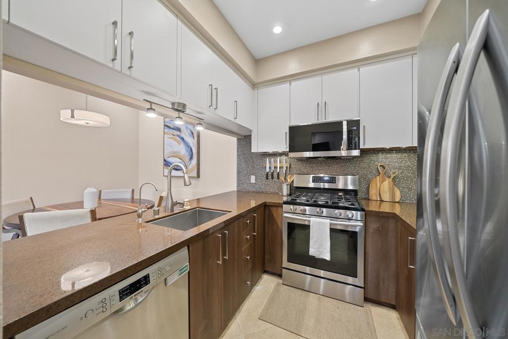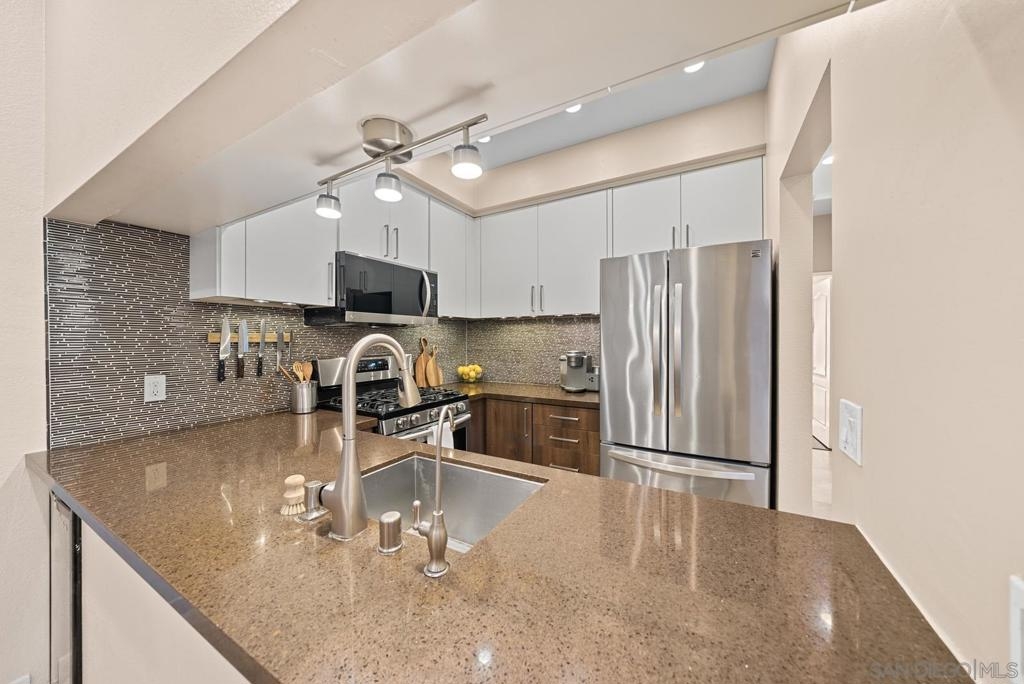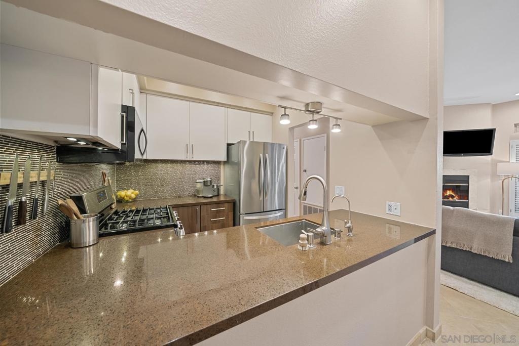 Must see RARELY available gorgeous single level condo in the heart of HILLCREST! This home boasts incredible features such as high ceilings, a fireplace, newly refaced two-tone kitchen cabinetry, wine fridge, stainless steel appliances,elegant travertine tile flooring throughout, and a newly remodeled master bedroom & bath! Additional upgrades include a new water heater and over-the-range microwave. Bask in abundant natural lighting in your cozy living room space, which is perfect to host an intimate gathering with friends and family. Open your living room french doors for breezy fresh air that leads you to the first outdoor patio. The second patio is right off the guest room’s exterior and it includes BRAND NEW patio decking & fencing that was just installed in September! Casa Barcelona is a gated community with two entrances in the front and back. Delight in the community garage with two assigned underground tandem parking spaces and a private storage unit. This complex also has 24-hour surveillance. Rightfully so, the unit is also conveniently located in the front of the complex for easy access. This unit is so walkable, you'll find everything such as coffee shops, restaurants, Whole Foods grocery, eclectic shops, and the Iconic Balboa Park!! Enjoy a short drive to the fabulous Coronado Island & Seaport Village. This VIBRANT community also has many parades and various events throughout the year. Every Sunday you can even head on over to the Hillcrest farmers market for fresh produce and treats. One of San Diego's most sought after neighborhoods!! This one won't last!