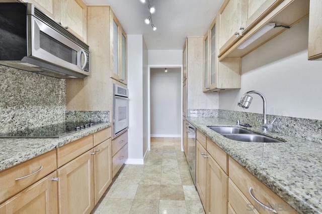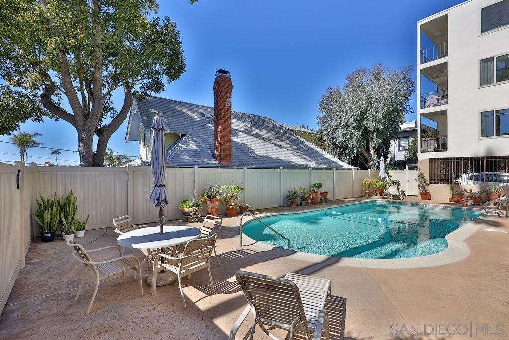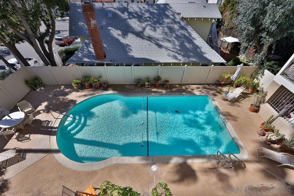 Spacious 2 bed 2 bath with gorgeous views in a fantastic Bankers Hill location! This southwest facing corner unit features new carpet, fresh paint, s/s appliances, granite counters, custom built-ins, smart thermostat, central heat & a/c, walk-in closet, oversized living room, separate dining area & a large private balcony. 1 parking space in gated garage + storage. Complex features laundry room, pool & a room available for residents to rent for guests for $30/night. 1 dog or cat up to 20# allowed. Some photos are virtually staged.