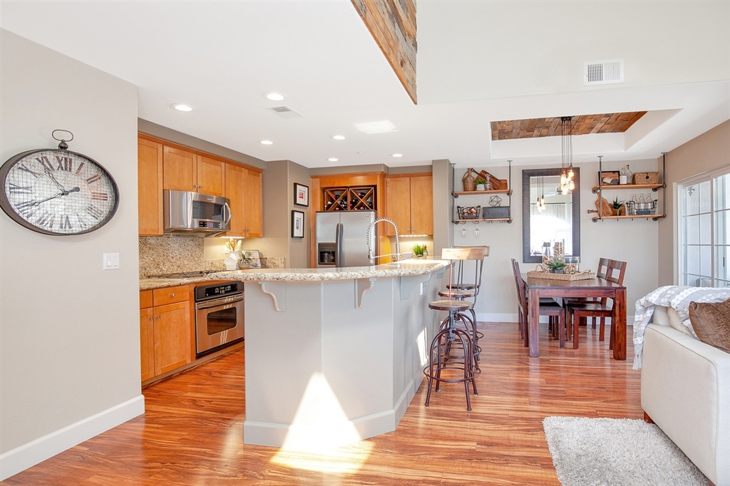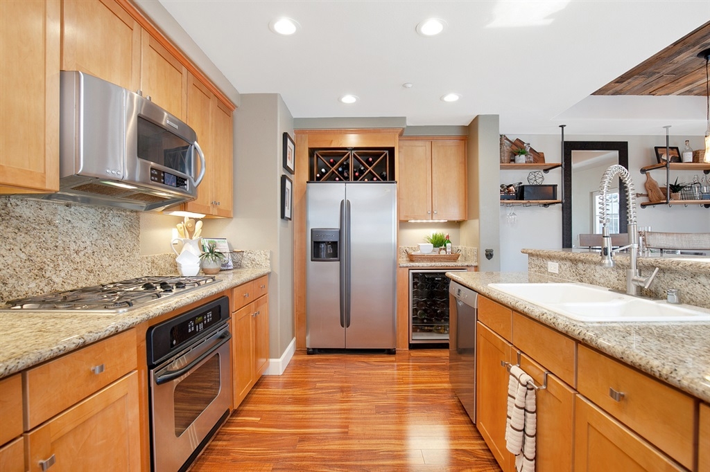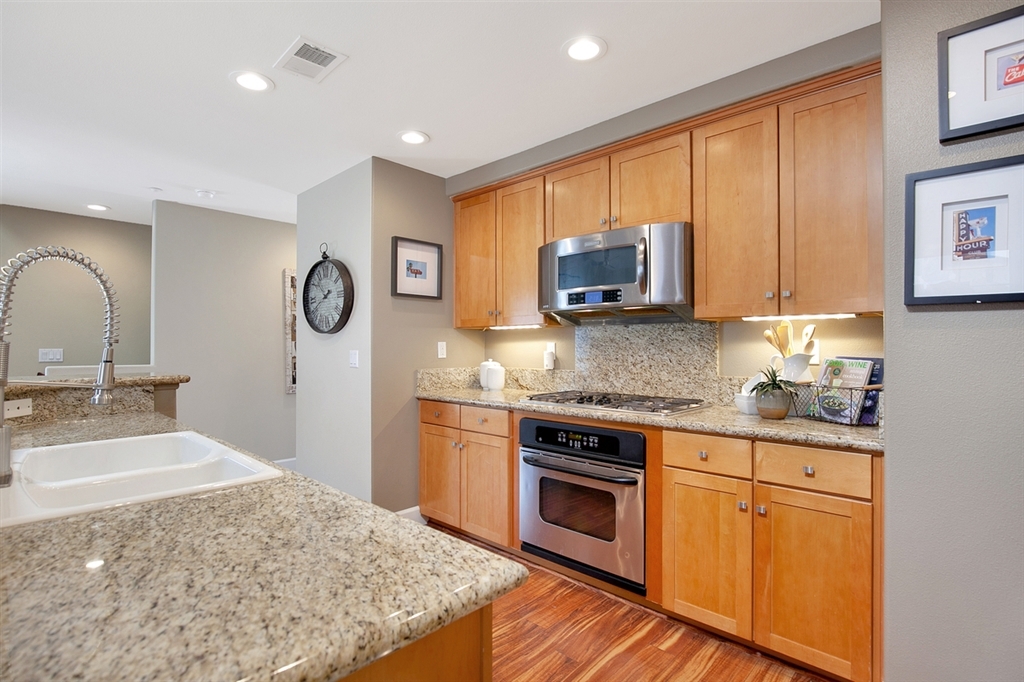 Premier end unit in Casa Valencia! A sensational metro offering sure to tantalize the Urban dwelling seekers, this home is perfectly located walking distance to everything in Hillcrest yet just offset enough to avoid the city noises. Its fantastic townhome layout offers max privacy and comfort, as each bedroom is situated on a different floor with own bath. You'll love the open concept great room experience of kitchen, dining, living room & balcony. Designer features abound & direct access 2-car garage! Casa Valencia is a well thought out enclave of 10 homes. This home is the furthest west end unit and features afternoon sunlight and sunsets that drench the living areas in golden light. The kitchen features lots of generous granite counter space perfect for large meal preparation, an abundance of cabinetry, and the full array of modern appliances complete with wine fridge! Add to this a large island with double sinks and breakfast bar (or wine bar) area for seating, and you get the ideal experience! Another striking feature are the soaring ceilings in the living room and raised in the dining room. The added volume creates a cathedral effect, evoking a much larger home. The entire top floor is the master suite. You will absolutely love the spacious wardrobe and master bath area as the design was really thought through with dual granite counter sinks, a soaking tub and separate shower. Add to that plenty of under cabinet space so no more questions of where to put things! The other two bedrooms are featured on each floor and have the accompanying baths either in the room or just outside the hallway, as in the case of the 2nd floor. All three bedrooms have ceiling fans and, when combined with the wonderful cross breezes due to the location, makes for a very comfortable lifestyle. The flooring is a combination of stunning hardwoods in the living areas and plush carpeting in all three bedrooms. This home is ready to just move in and start living the urban lifestyl...