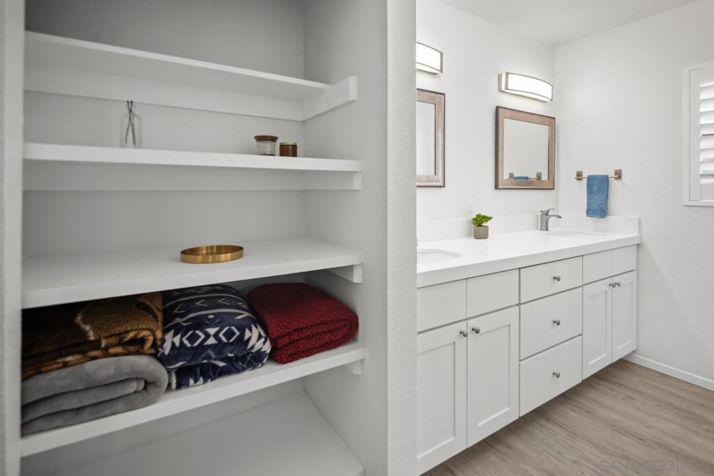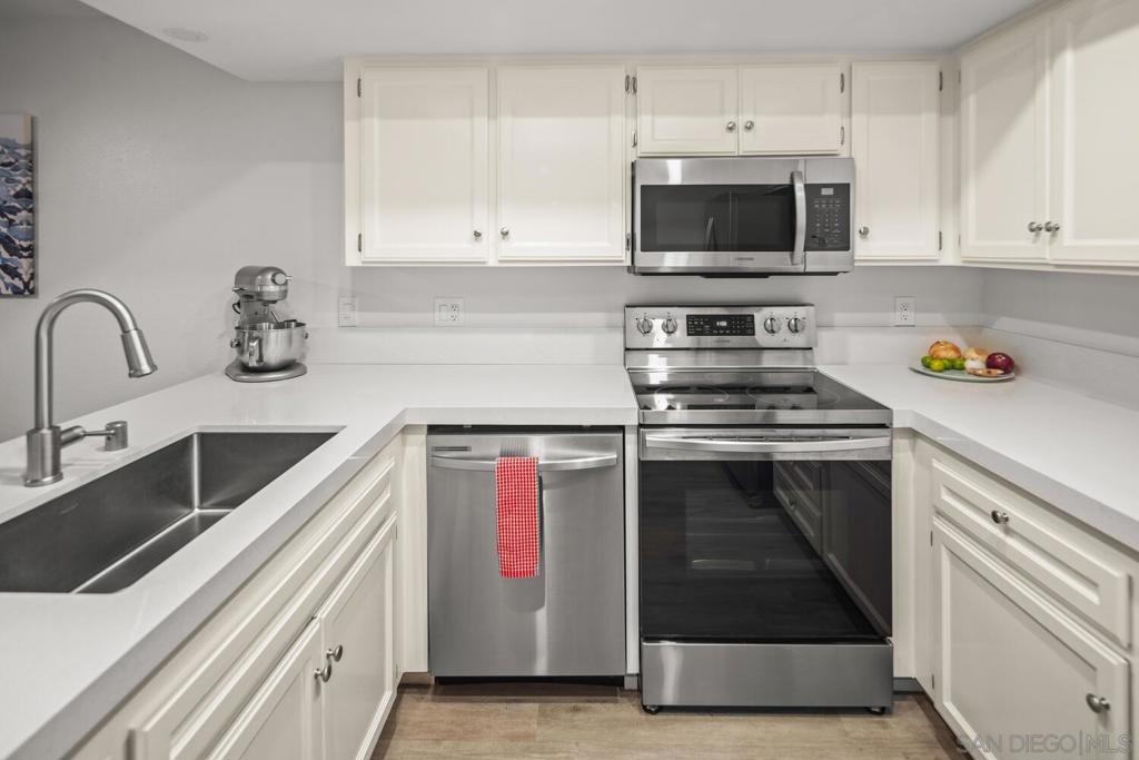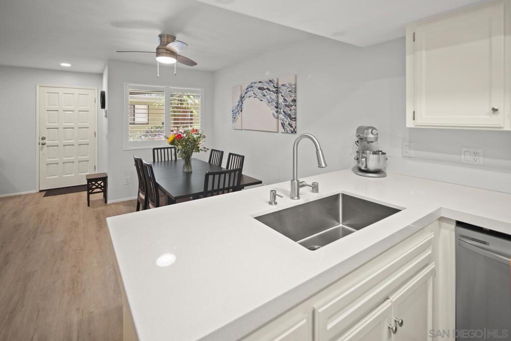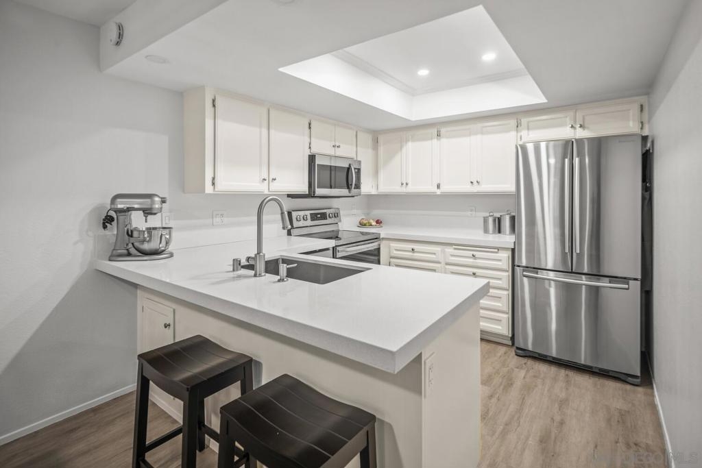 This lovely entry level corner unit is fully remodeled and filled with natural light! This corner unit is ideally situated off back of building providing a serene, quiet private location. Upgrades include: smooth finished ceilings, recessed LED lighting, vinyl flooring throughout, new counters, sinks & fixtures, new large soaker tub with subway tile surround, stainless appliances, custom shades & blinds. Gated garage with 2 tandem spaces situated near the elevator and back entry stairs provides easy access to unit and you have a guest parking pass too! Just a block away from restaurants, dining, entertainment on University Ave. VA assumable loan considered for VA eligible buyers.