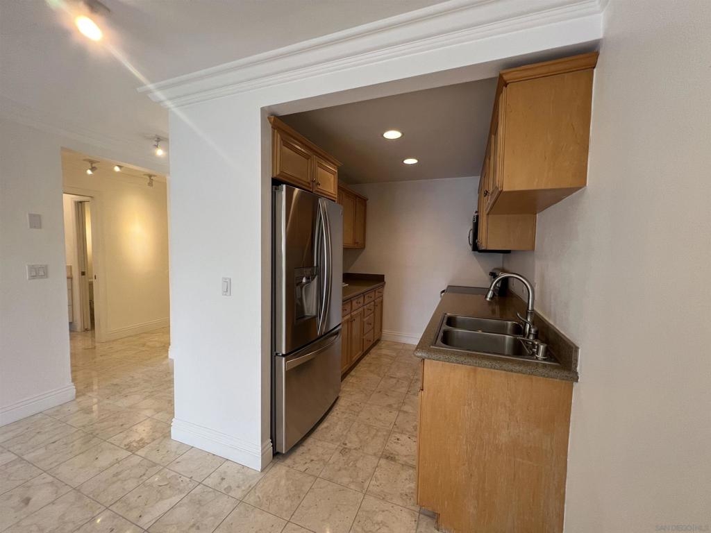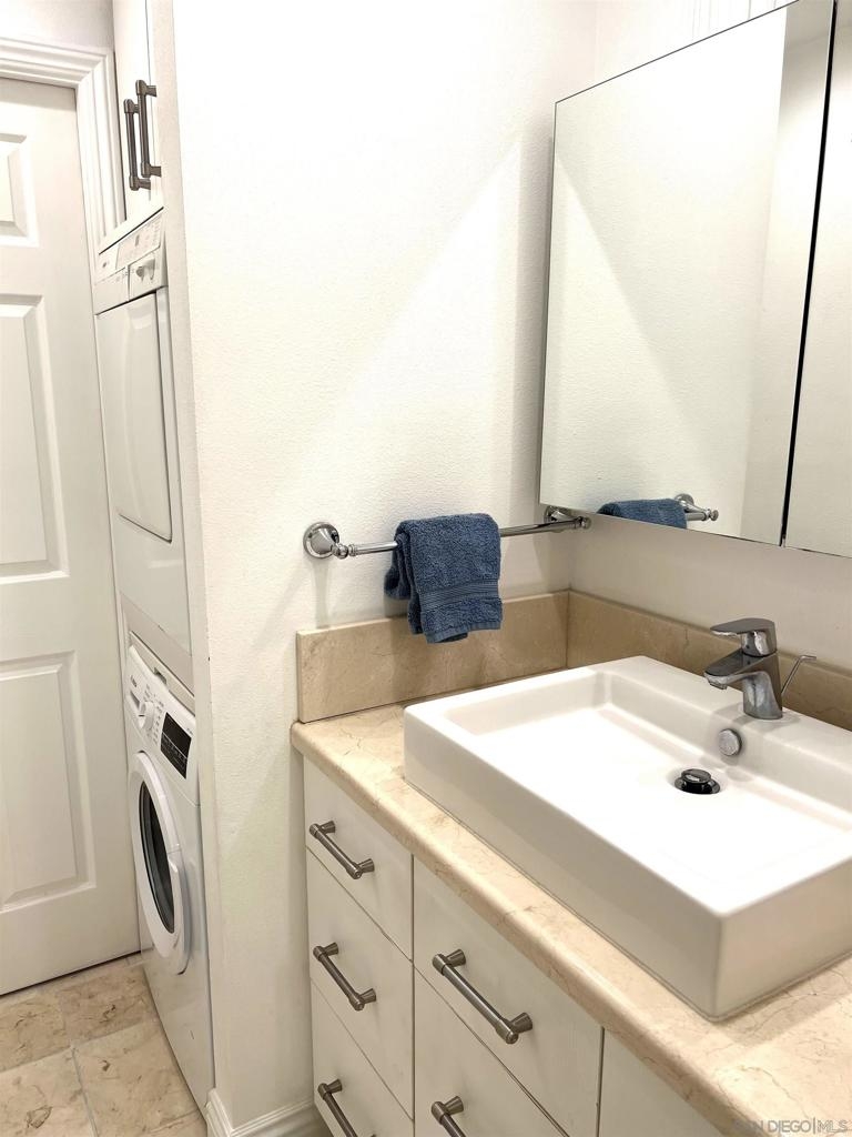Bright and beautiful, recently remodeled 1-Bedroom 1-Bath condominium located in the heart of Hillcrest between University Ave. and Washington Street. Walk to everything! Short walk to UCSD Medical Center and Scripps Mercy Hospital, ½ block to Whole Foods, 2 blocks to Trader Joe’s, steps to shops, theaters, restaurants, bars and all that this vibrant Hillcrest neighborhood has to offer. Low HOA fee includes private gym and pool for residents, building and grounds maintenance, water and trash pickup. Mailboxes and secure package delivery located inside the lobby. This first floor unit lives large with gleaming marble floors throughout the unit, large sliding doors and a built in Murphy bed easily tuck out of the way to double the entertaining space. Spacious balcony with roll-down privacy shade overlook the pool area. Unit 106 also features: Secure key-card front door entry, secure remote entry garage under the building, one assigned parking space, dual mini-flat air conditioner/heat units, in-unit washer and dryer (plus laundry room on each of the building’s three floors), Quality built-in dresser and closets in bedroom, murphy bed, sliding doors between bedroom and living area. Walk-in closet with electrical outlets could be used for office space or additional storage. The kitchen features stone countertops, new fixtures and new appliances including: Bosch dishwasher, oven/stove combo, refrigerator, garbage disposer and microwave. Current tenant has lease agreement through January 2024