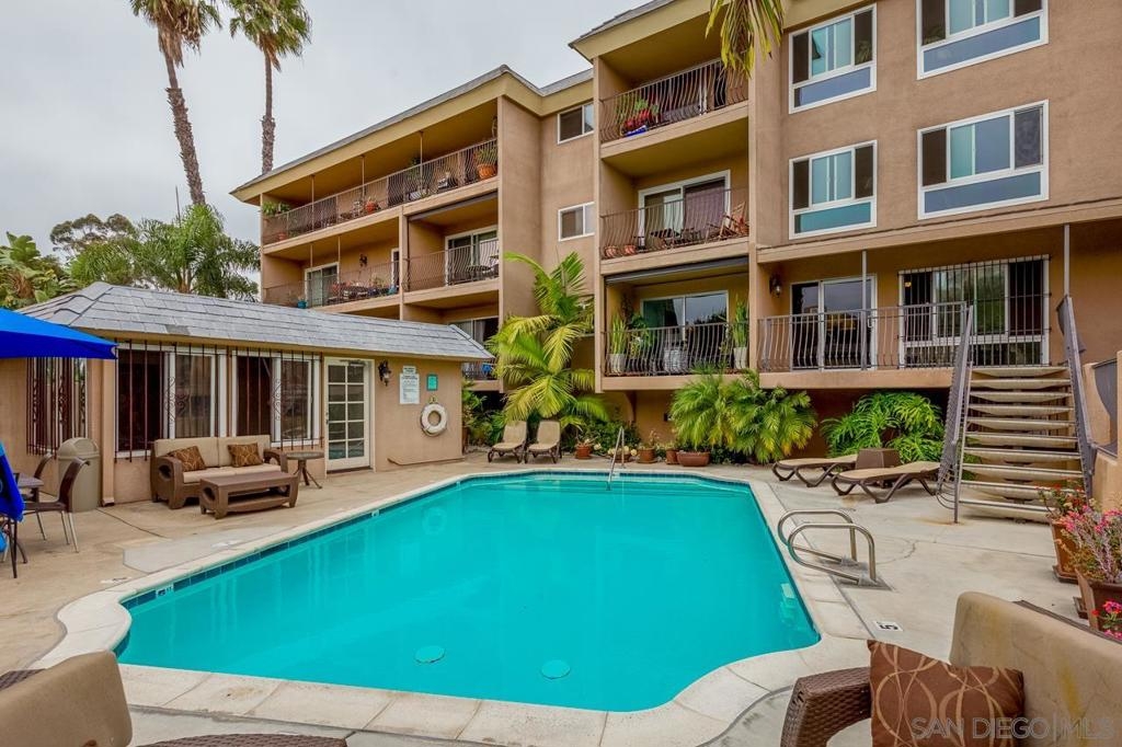 Move-in ready third floor studio in the heart of Hillcrest! Open & bright floorplan features balcony facing 8th Ave, light-colored laminate flooring throughout, complimentary wall color, galley kitchen, full bath, and full closet. The community offers a below-ground pool, weight room, dedicated bike storage room, community washer and dryer on each floor, and secured entry. One assigned parking space. Prime location! Complex Features: ,,, Equipment: Range/Oven Sewer: Sewer Connected Topography: LL