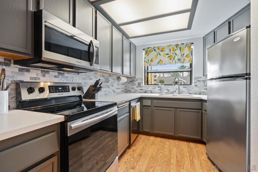 This top floor, south facing condominium features excellent natural lighting, formal entry, laminate flooring, central heating & AC, fireplace, 2 parking spaces, low HOA dues, and a washer & dryer. The open kitchen floor plan sports stainless steel appliances and stunning subway tile behind the countertops. Enjoy the short walk to trendy cafes, fashionable boutiques, and incredible restaurants in nearby Hillcrest & University Heights. This complex is a VA approved and allows for a pet. Equipment: Dryer, Range/Oven, Washer Sewer: Sewer Connected Topography: GSL