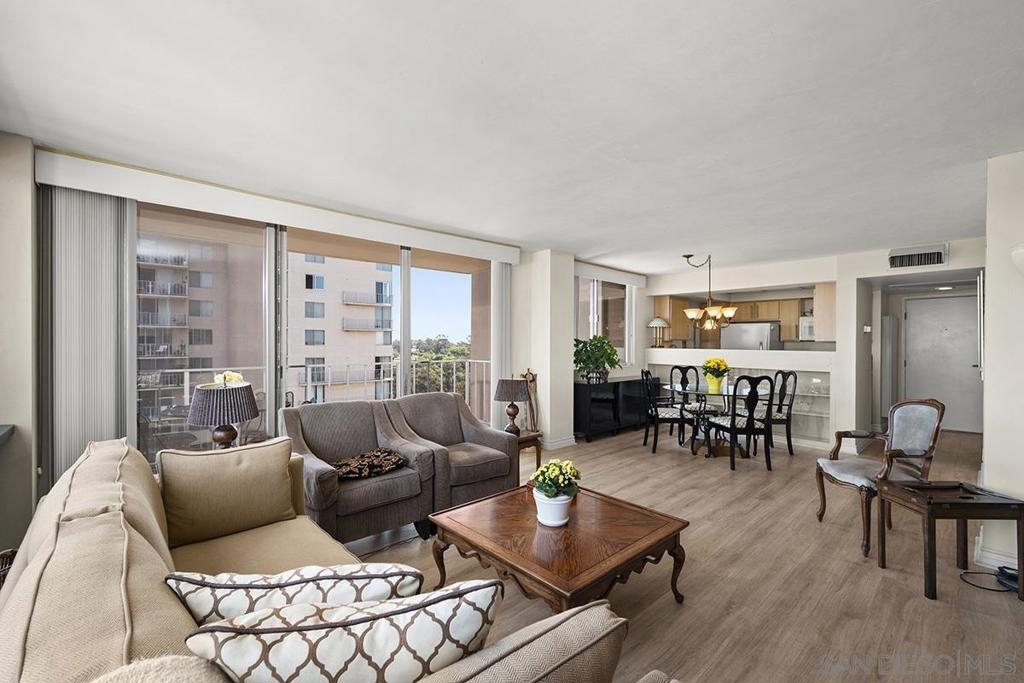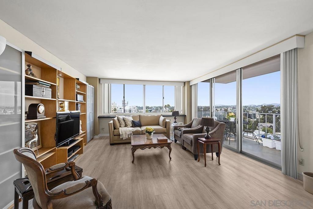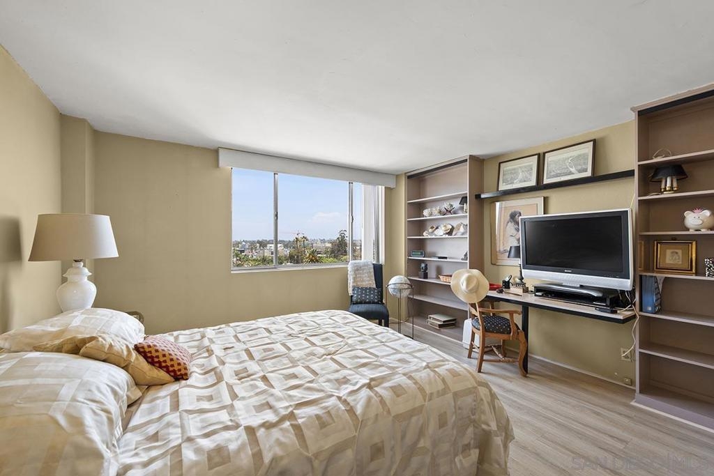 Experience the epitome of light and brightness in this northeast corner unit, surrounded by lush trees and cityscapes, featuring an expansive balcony perfect for enjoying San Diego’s renowned weather. The spacious living area boasts sleek flooring and an abundance of windows, flooding the space with natural light. Your personal retreat awaits in the serene primary bedroom, complete with customized built-ins adding a touch of elegance. The ensuite bathroom is designed for luxury, featuring a changing area with custom cabinetry and a sit-down vanity. This unit also includes a roomy second bedroom, a storage unit, and TWO parking spaces. Just steps from Balboa Park and Hillcrest’s vibrant scene, urban living has never been so effortless! Positioned as a premier residential destination in Hillcrest, Coral Tree Plaza exemplifies urban sophistication with its impressive array of amenities. The property boasts a crystal-clear swimming pool, a rejuvenating spa, perfectly curated tennis courts, and a contemporary fitness center, catering to those with an active lifestyle. Additional features of Coral Tree Plaza include welcoming guest suites and a generously sized club room. This communal space, accentuated by a vintage-style fireplace, becomes a hub for animated conversations, fostering a warm community spirit. For pet owners, an on-site dog run is a convenient amenity, while ample parking facilitates easy visits for guests. Situated in a prime location, the complex offers unparalleled pedestrian access to the lively village of Hillcrest and the verdant tranquility of Balboa Park. For those seeking the buzz of city life, downtown's vibrant heartbeat is just a brief drive away. Residing at Coral Tree Plaza is more than an address; it's a chance to experience an exceptional lifestyle uniquely blending luxury, comfort, and convenience.