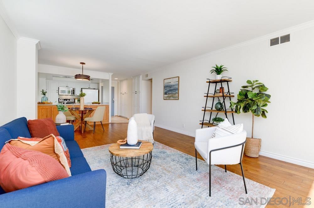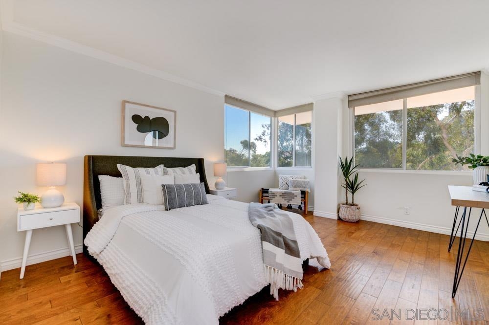 Fabulous 4th floor corner unit at Coral Tree. South-facing residence looks directly into Balboa Park. Beautifully upgraded and freshly painted, this open-concept floor plan is light & bright, spacious & ready to call your new home. Kitchen opens to living area. Floor to ceiling window & slider to large balcony that overlooks the canyon & trees. 2 full bathrooms, Brilliant hardwood floors, crown-molding, Washer/Dryer in unit, Full HVAC throughout & plenty of storage. Walk-in closets in both bedrooms. 2 side-by-side spaces in secure parking garage & storage closet. only 4 other residences share the same floor! Coral Tree offers a tremendous level of amenities and is centrally located to all that San Diego has to offer. 90 Walk Score - A++ Location at the end of 7th Avenue cul-de-sac, just steps from Balboa Park, excellent restaurants, cafes, groceries, shopping, theater and so much more. minutes to downtown and the airport. An amazing offering in this highly sought after location. Amenities include: Ample guest parking, a hobby/workshop room, car wash, bike storage, Recreation room, tennis courts, HEATED pool & spa, central courtyard, gym, and guest suites available for out of town visitors for a small fee. What? AN ONSITE GENERATOR ACTIVATES AUTOMATICALLY IF POWER FAILS! Amazing amenities, amazing location - call this amazing residence your new home, today!