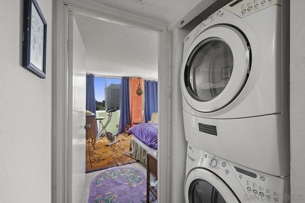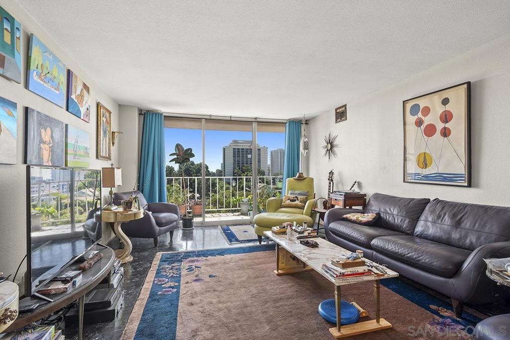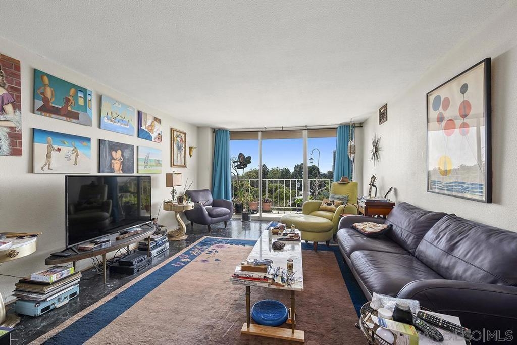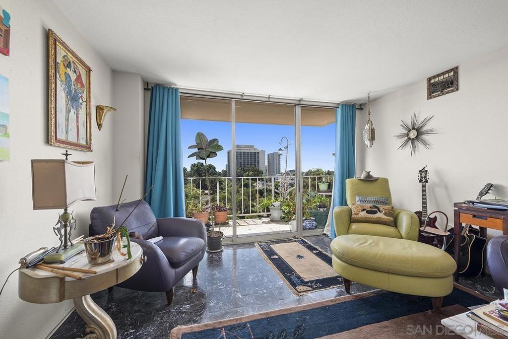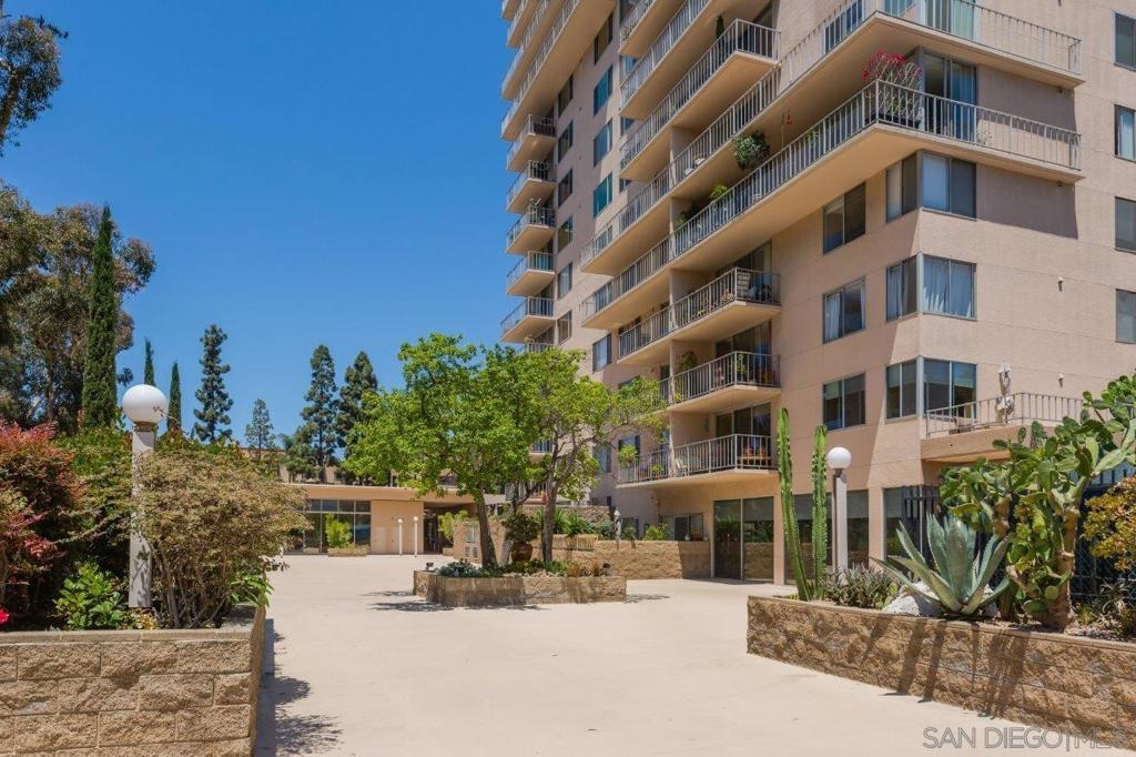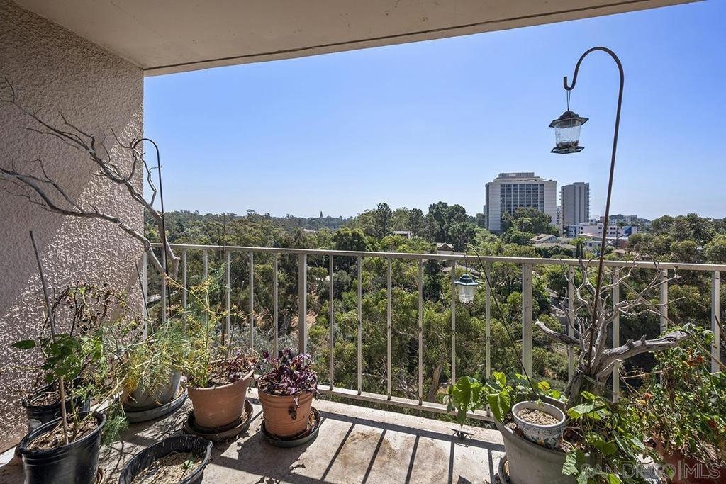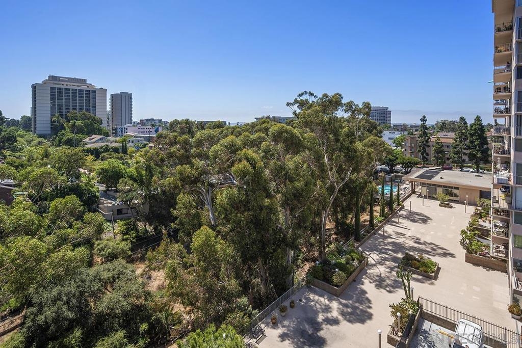 Unlock the potential of this southwest corner Coral Tree Plaza residence and transform it into your dream "Uptown oasis." This unit presents a rare opportunity for those with a vision—let your creativity shine as you bring your personal touch to every corner. Enjoy the panoramic views of the lush treetops, mountains in the distance, and Balboa Park from your own private balcony. The spacious living area flows into a kitchen with plenty of cabinetry and a convenient eat-at bar, offering a great foundation for future upgrades. The primary bedroom features a Juliet balcony, an ensuite bathroom, and a walk-in closet. Plus, you’ll appreciate the roomy second bedroom, extra storage, and two parking spaces. With its unbeatable location just steps from Balboa Park and Hillcrest’s lively atmosphere, this is your chance to craft a one-of-a-kind urban sanctuary! Positioned as a premier residential destination in Hillcrest, Coral Tree Plaza exemplifies urban sophistication with its impressive array of amenities. The property boasts a crystal-clear swimming pool, a rejuvenating spa, perfectly curated tennis courts, and a contemporary fitness center, catering to those with an active lifestyle. Additional features of Coral Tree Plaza include welcoming guest suites and a generously sized club room. This communal space, accentuated by a vintage-style fireplace, becomes a hub for animated conversations, fostering a warm community spirit. For pet owners, an on-site dog run is a convenient amenity, while ample parking facilitates easy visits for guests. Situated in a prime location, the complex offers unparalleled pedestrian access to the lively village of Hillcrest and the verdant tranquility of Balboa Park. For those seeking the buzz of city life, downtown's vibrant heartbeat is just a brief drive away. Residing at Coral Tree Plaza is more than an address; it's a chance to experience an exceptional lifestyle uniquely blending luxury, comfort, and convenience. The east tower has 2 guest suites and west has 1 guest suite and the gym. 2 parking spaces #99 & #100 on P2, storage #5 on P1 in storage room 1.