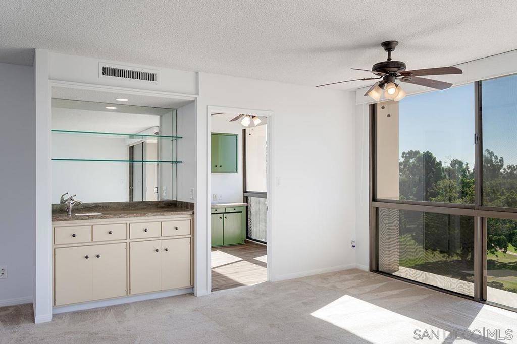 Panoramic views of spectacular Balboa Park in this south facing home in Del Prado. Tremendous natural light, floor to ceiling windows, private veranda overlooking Balboa Park. Huge Master Suite with full walk in closet, 24 hour lobby concierge service, very secure, 2 fitness centers, library, club house, community room with extended outdoor patio, 2 separate guest suites available for guests to stay. Minutes to walk downtown, The Old Globe Theater, San Diego Zoo, museums, and spectacular restaurants. Only 5 condos on the 4th floor. Very large storage unit on the 3rd floor. HOA PAYS HOT & COLD WATER. Condos facing Balboa Park seldom come on the market, and this has not been available for years. Shared laundry room on fourth floor for use only with five condos. Del Prado qualifies for the Historic District Tax Benefit. Sewer: Sewer Connected Topography: LL