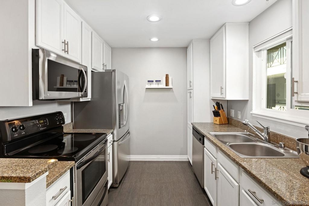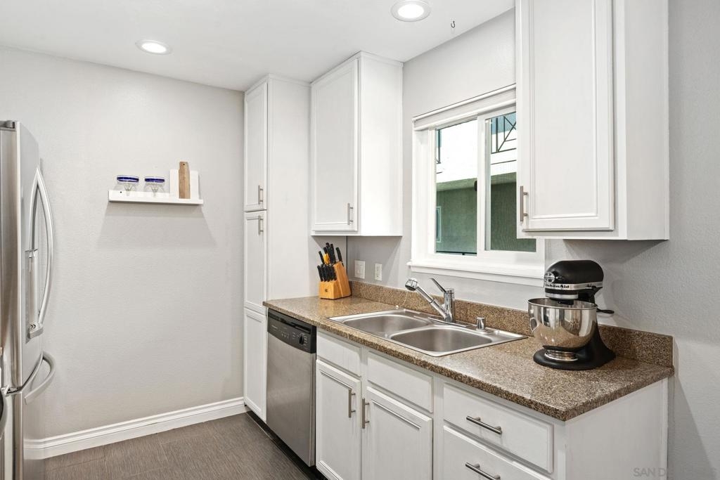 Welcome to this beautifully renovated condo in a gated building on a quiet Hillcrest street. This unit offers a rare layout with no shared walls, ensuring privacy and tranquility. Enjoy the outdoors on your spacious 8x10 patio, perfect for relaxing or entertaining. Inside, the updated kitchen features granite countertops, stainless steel appliances, and recessed lighting, while the remodeled bathroom includes modern tile, a walk-in shower, and a chic vanity. A designated garage parking space in the below ground garage makes it convenient and secure as well as an on-floor laundry room. The building also offers a dog run for pet lovers. With Hillcrest shops, Balboa Park, and North Park just a short walk away, you’ll enjoy the best of city living.