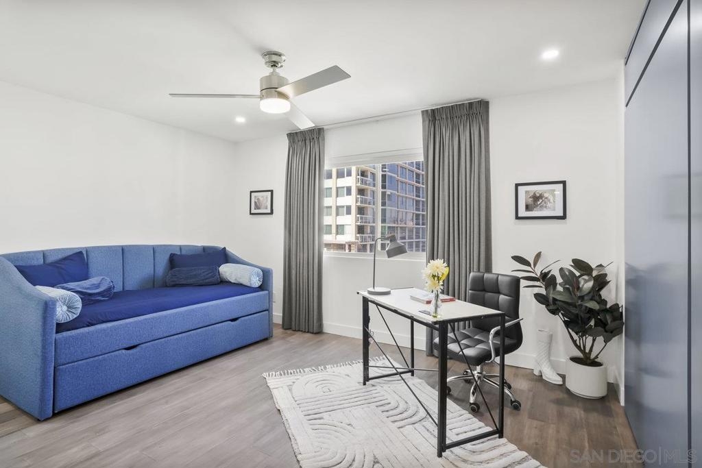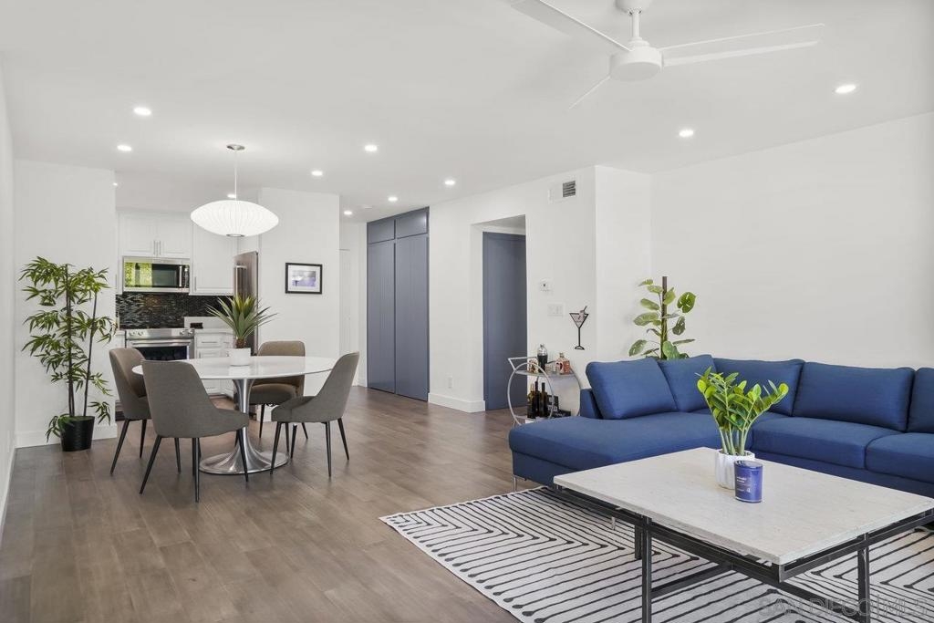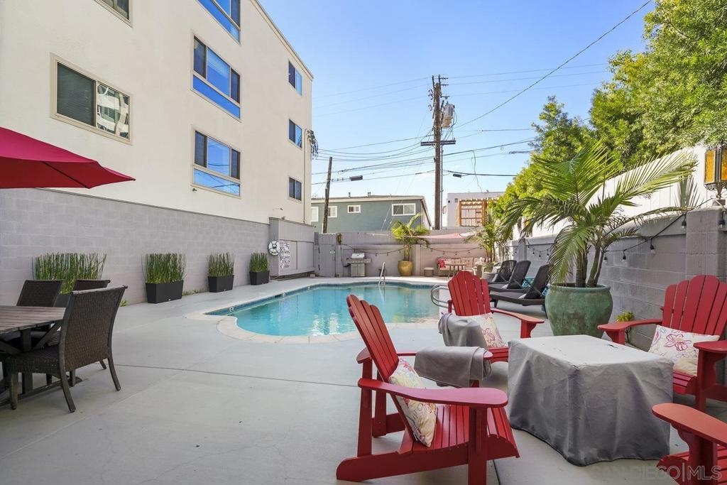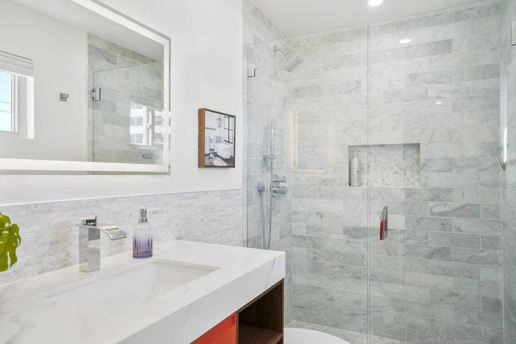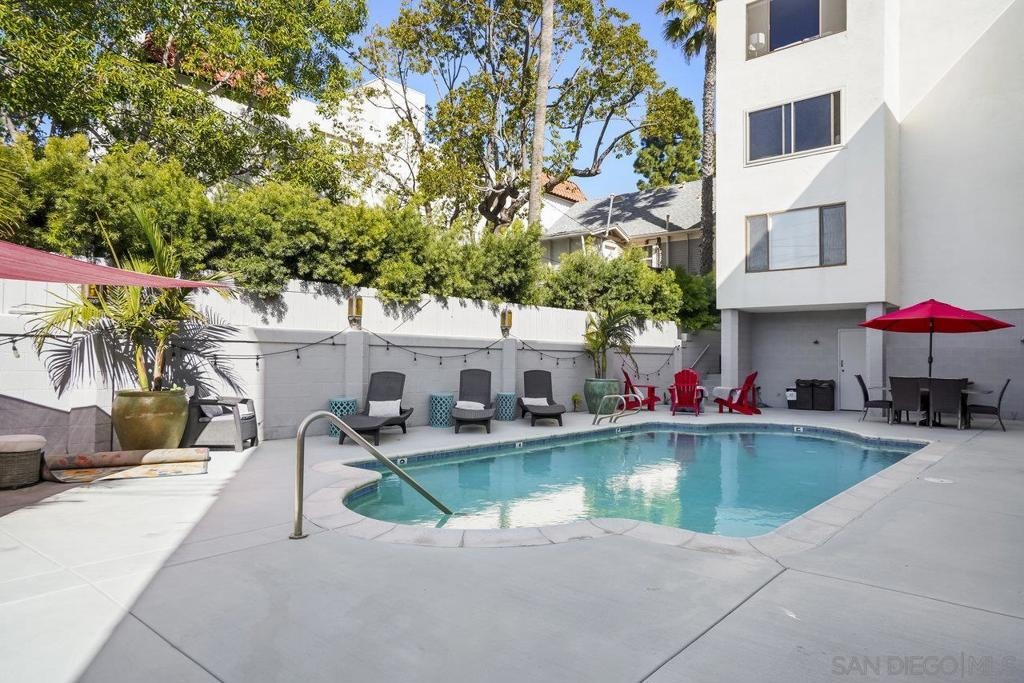 Welcome to an exceptional top-floor penthouse offering unparalleled sophistication and privacy. This highly upgraded corner unit boasts hardwood floors throughout, striking marbled bathrooms with floating vanities and a newly upgraded kitchen complete with stainless steel appliances and custom tile backsplash. Light and bright, highlighted by oversized windows with custom treatments. Enjoy ample storage with sleek finishes, and the convenience of a side-by-side laundry room, with washer and dryer included. Only one shared wall in a boutique 21-unit complex, privacy is paramount. Located in the heart of Bankers Hill/Hillcrest and just moments from Balboa Park, Little Italy, and downtown, this penthouse offers the perfect blend of luxury living and urban convenience. Short term rentals ok!