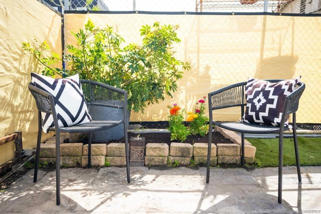 Wonderful top floor end unit! Bright spacious open floor plan recently renovated. Beautiful new flooring , windows , counter tops, and appliances. Private location at back of complex with 3 assigned parking spaces which currently used for parking and back yard !! A luxury to have outdoor space and parking in this excellent neighborhood. Interior Laundry. Enjoy walking to nearby stores , restaurants ,and parks. Quaint 9 unit quiet complex with very low HOA fees. In the back of this condo 3 adjacent assigned parking spaces an electronic gate had been installed for access for the parking from the alley. There is a back stairwell and back door for direct access to the condo from the back yard and parking space. In additon to parking current owner created backyard space to enjoy. Condo also has central AC and Heat. Fantastic location and condo .