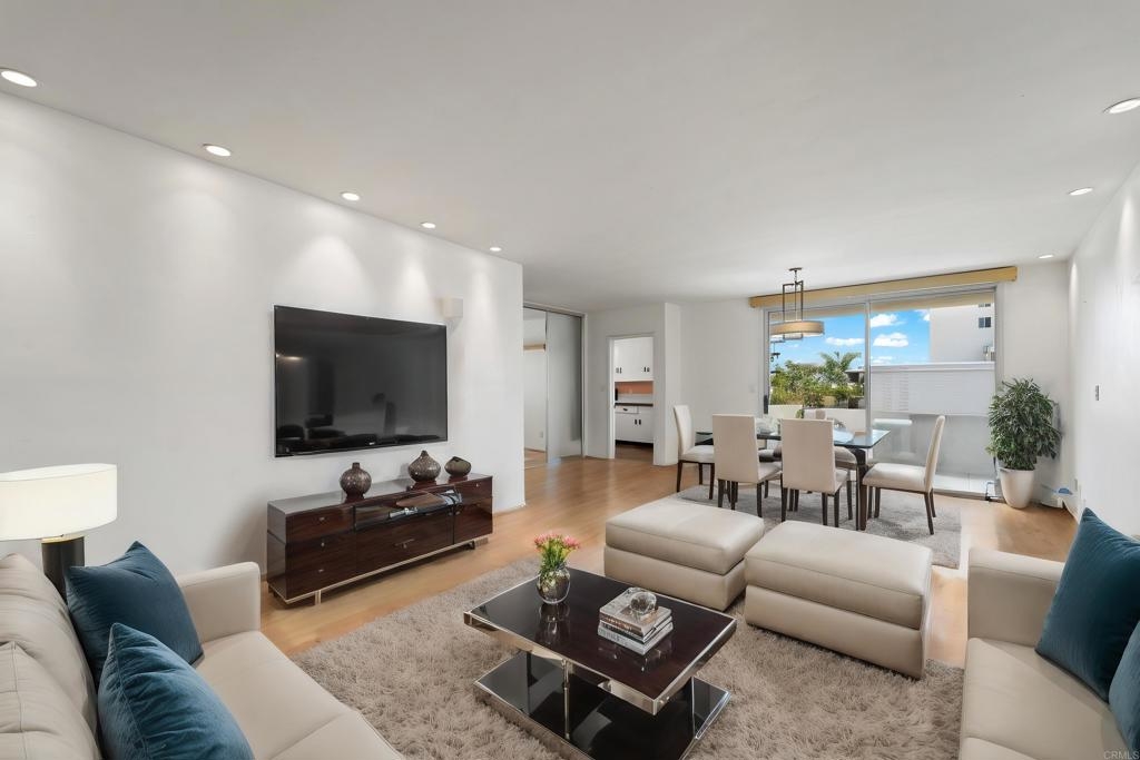 Location, Location, Location! Live in a beautiful top floor corner condo with stunning views of harbor and city. This Bankers Hill mid century condo is located in one of San Diego's most coveted downtown neighborhood . 3 story building located on a Cul de Sac. Less than four blocks to the World famous Balboa Park which includes museums, fine eateries, stunning gardens, trails, nationally known theaters, and much more. Walking distance to 1st Avenue Bridge, Maple Canyon, Boutiques, restaurants, coffee shops. Short distance to Zoo, Airport, Downtown, Little Italy, Hillcrest and Beaches. Secured entry to building and underground gated parking with 1 assigned parking space. Elevator access to Unit. Open floor plan Condo boasts Solid Maple Flooring and Gorgeous City and Harbor views. Spacious Bath with newer double sink vanity and separate Tub and shower. Plenty of Storage inside this unit. Office/Den has a Murphy Bed and be used as second bedroom. Enjoy Water views from your own generously sized private Balcony. You can see San Diego Skyline from kitchen window including Mr A's majestic seasonal lights display. Low HOA, water and trash included. Onsite community Laundry room at no cost.