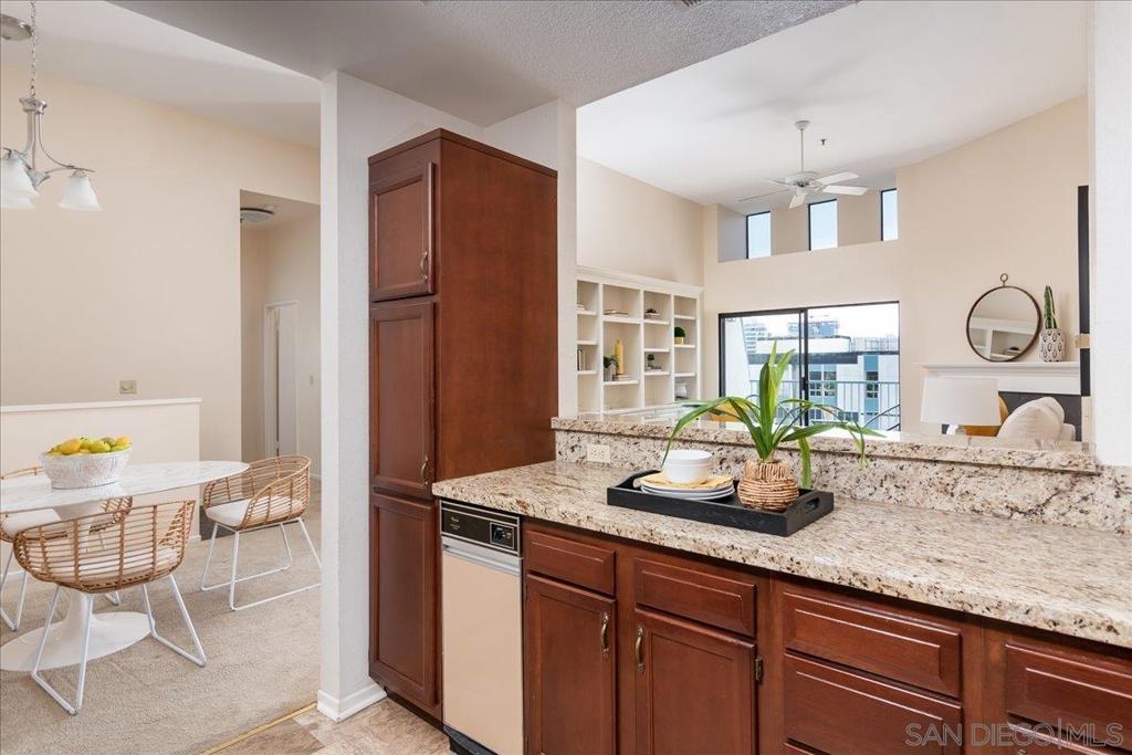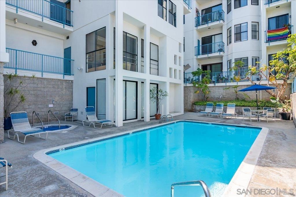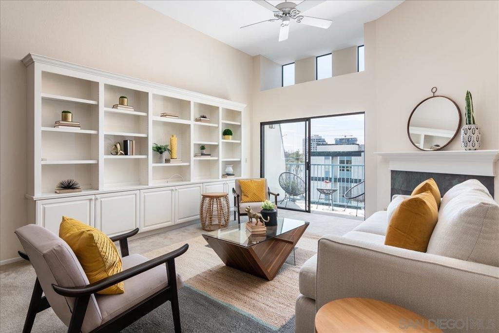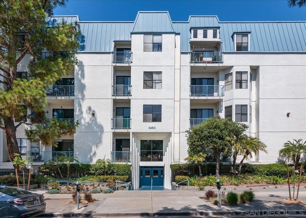 Premier TOP FLOOR View unit with 12' ceilings!! South facing with views of Downtown and the Bay! Great split-bedroom floor plan with spacious rooms. Light-filled Living Room with clerestory windows, beautiful built-in bookshelves and a gas fueled corner Fireplace. There are ceiling fans in the LR and both bedrooms. The kitchen features granite counter tops and new stainless refrigerator, stove and dishwasher within the last year. There is a laundry closet with full-size washer and dryer. AND there are two side-by-side parking spaces in the underground garage! Just 3 blocks to Balboa Park!! Go for it! Complex Features: ,, Equipment: Fire Sprinklers,Garage Door Opener, Washer Sewer: Sewer Connected Topography: LL