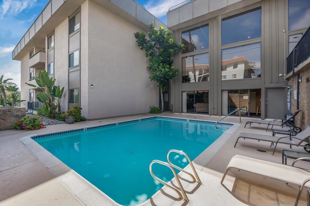 You will love this large 3 Bed 2.5 bath condo!! This is the lowest priced 3 bedroom home in all of the highly sought after Hillcrest/Mission Hills area! This home boasts a large living room with a fireplace and balcony and a large master bedroom with a wall of mirrored closets plus an additional walk-in closet! Home includes updated windows, HVAC system and appliances!! Within close proximity to restaurants, parks, Vons, nightlife and downtown! The unit also offers community pool, gym and elevator with a low HOA! Must see!! Complex Features: ,,, Sewer: Public Sewer Topography: LL