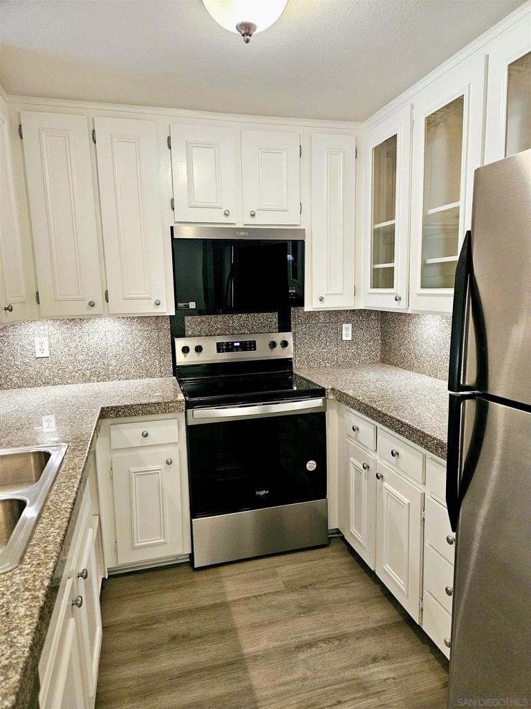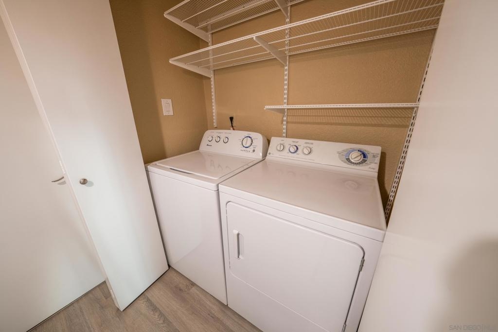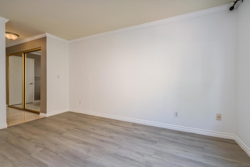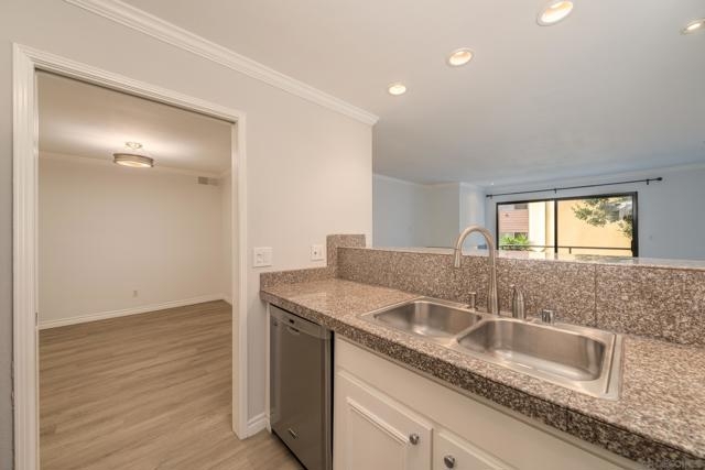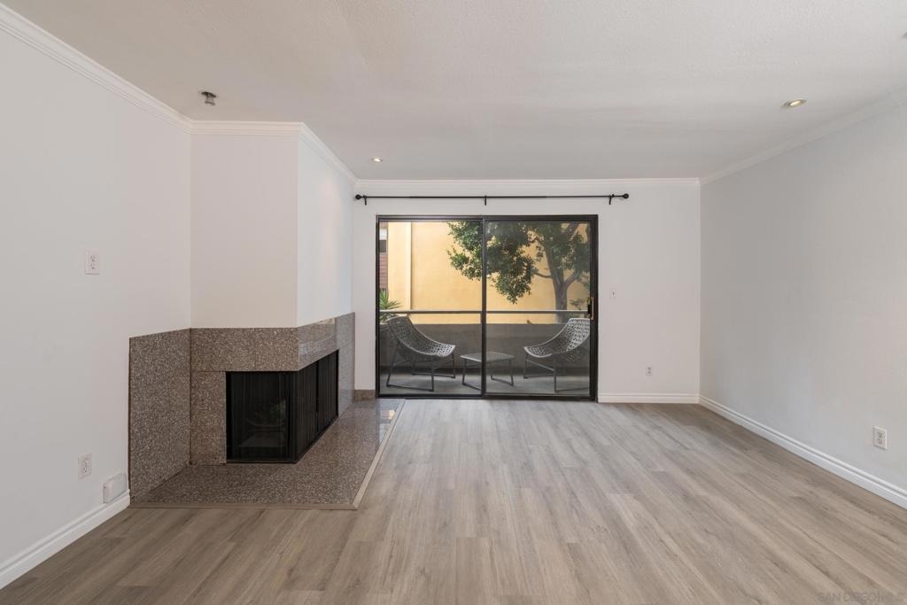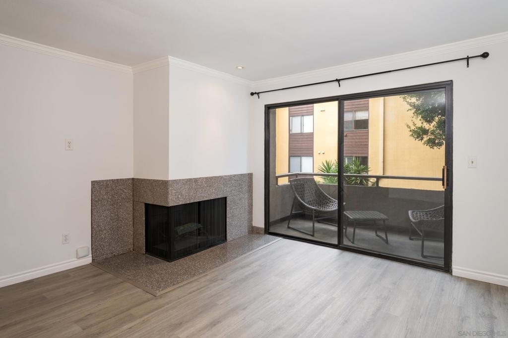 Incredible LOCATION!! This lovely 2BR/2BA condo at Mission Crest Gardens is just a short stroll to everything Mission Hills has to offer! Freshly painted with new luxury vinyl plank flooring! Wood burning fireplace in the living room, brand new stainless-steel range and microwave, custom built-in closet organizers in both closets and much more! Nice balcony off the living room and unit does not face the street so it's nice and quiet. Community pool, roof deck, gym, sauna, and gated covered parking. Unit also comes with one secured storage space near parking. This one is a must see, come fall in love with Mission Crest Gardens and the fabulous location of this lovely home in the heart of Mission Hills!