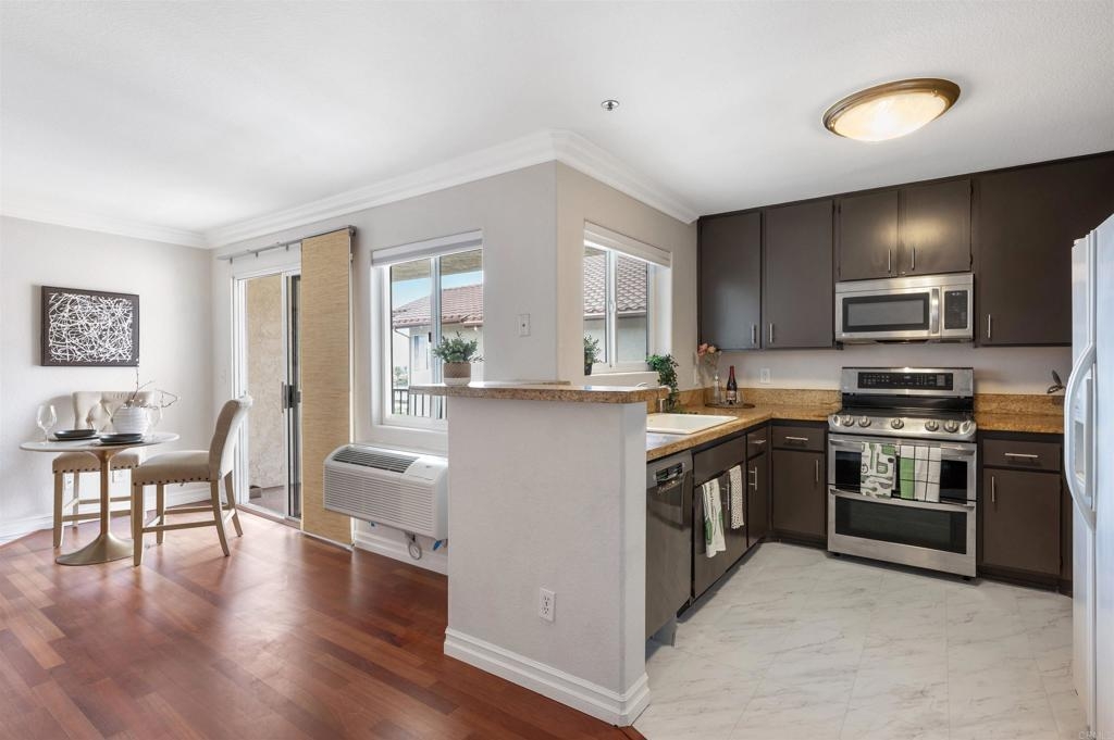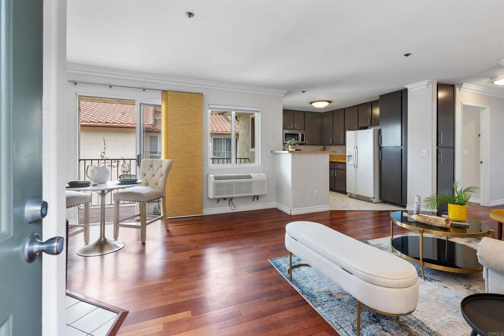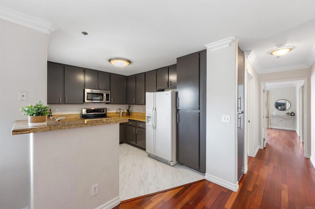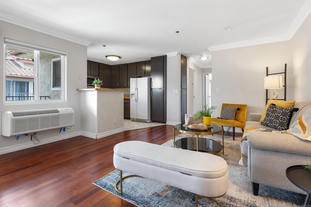 This fabulous top-floor residence has it all and is ready for its lucky new owner to make it home — or an investor to start generating substantial income. Sunlit and spacious, this 2BD/2BA/2PRKG condo features beautiful hardwood floors and elegant crown molding. The inviting living room includes a balcony and a cozy fireplace, creating an ideal space to unwind. The kitchen flows into the dining area, perfect for everyday living and entertaining, it offers granite countertops, newer dishwasher, updated stove/oven, and a convenient breakfast bar. The spacious primary suite features a sizable walk-in closet, travertine walk-in shower, and an east-facing balcony for serene morning coffee moments. This beautiful home also provides the convenience of 2 tandem parking spaces and extra storage in the secure underground garage. Additional highlights include: NO FREEWAY NOISE, no units above and only one shared wall with the neighboring unit, energy-efficient dual pane windows, newer A/C mini-splits, updated cordless window shades and newer glass shower doors. And if you're also looking for an excellent location, look no further! Enjoy the close proximity to downtown San Diego, Coronado Island, Balboa Park, museums, shops, farmer's market, restaurants, bars, beaches, and more. Don't miss out on this great opportunity to add your personal touch to this fantastic home. PROPERTY IS ALSO AVAILABLE FOR RENT - Year or 3 or 6 months.