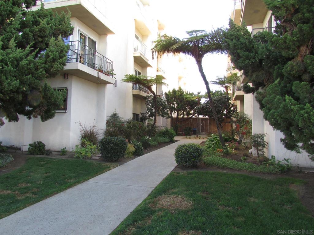 Park Royal building Fabulously located, Wonderful Top floor spacious floor plan & private, quiet end unit with views. In the heart of it all, just steps away from Hillcrest, Balboa Park, Morley Field, Museums & SD Zoo. Newer paint, new carpet. Very Dog friendly building. Light and bright throughout, kitchen has granite counter tops, SS sink. Very Large 1 bedroom with large mirrored closets. Secure gated underground parking. Parking, water, and trash included in the low HOA fees. Submit offers! Equipment: Garage Door Opener Other Fees: 0 Sewer: Sewer Connected, Public Sewer Topography: LL