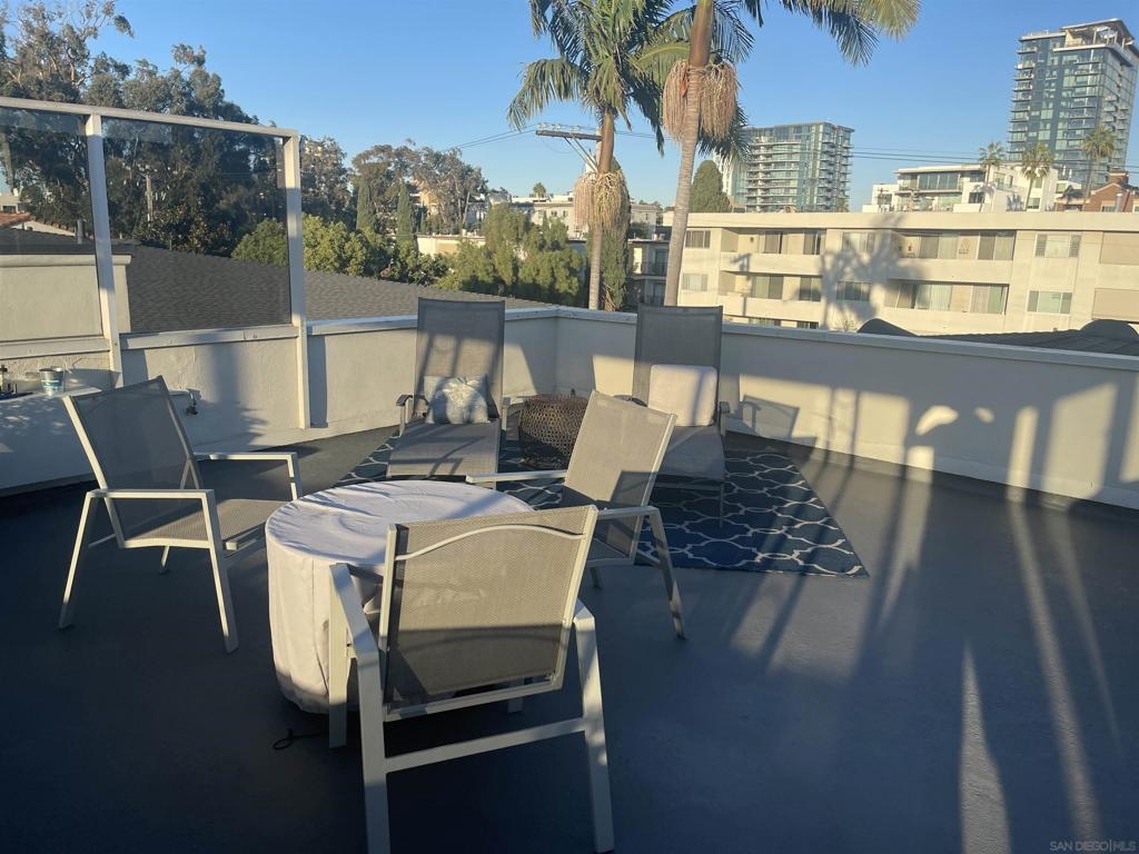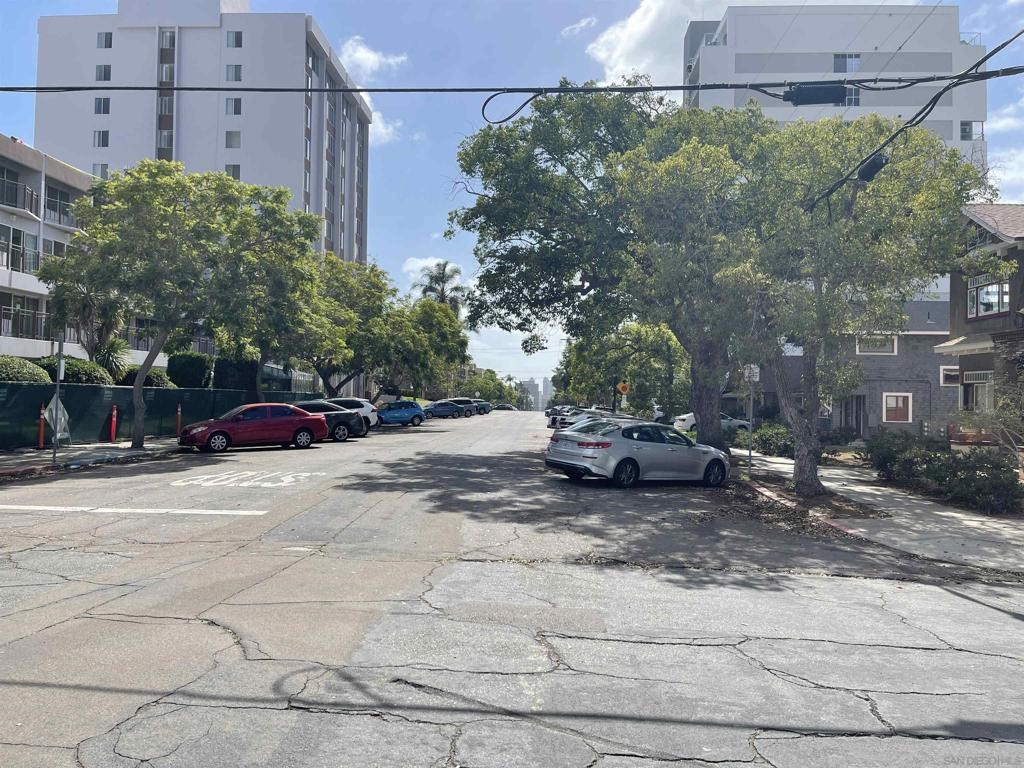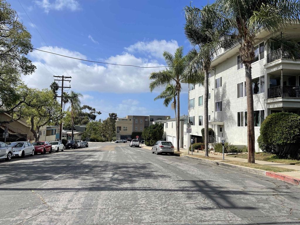 Fantastic single level condo with no stairs to access the building or the unit. Top floor very quiet unit with just one common wall. Amazing common area rooftop deck with views to the San Diego Bay Point Loma, sunsets and all-around Bankers Hill and South Mission Hills. Unit comes with one underground secured parking space with a storage unit in front of it. Located in a small 18-unit complex sits at the corner of 2nd Ave and Nutmeg in a beautiful tree lined neighborhood. Walking distance to bars/restaurants/Balboa Park in Bankers Hill and a short 17-minute walk down into Little Italy. Unit is in mostly original condition except for beautiful pristine hardwood floors throughout except the kitchen and bathrooms. Huge Living Room dining room combo with nicely functional kitchen and pass-through window. Complex allows one pet of any kind with no breed or size restrictions. Popcorn ceilings scraped long ago. Unit has central heat and AC. As far as we know all other nits have radiant heat and no AC. Top floor end unit offers peace and quiet. Additional large private storage room (approx. 3x6x10) and common area laundry room down in the common garage Sewer: Sewer Connected, Public Sewer Topography: LL