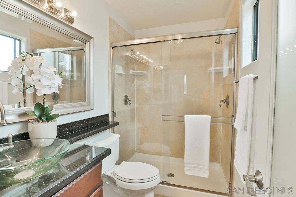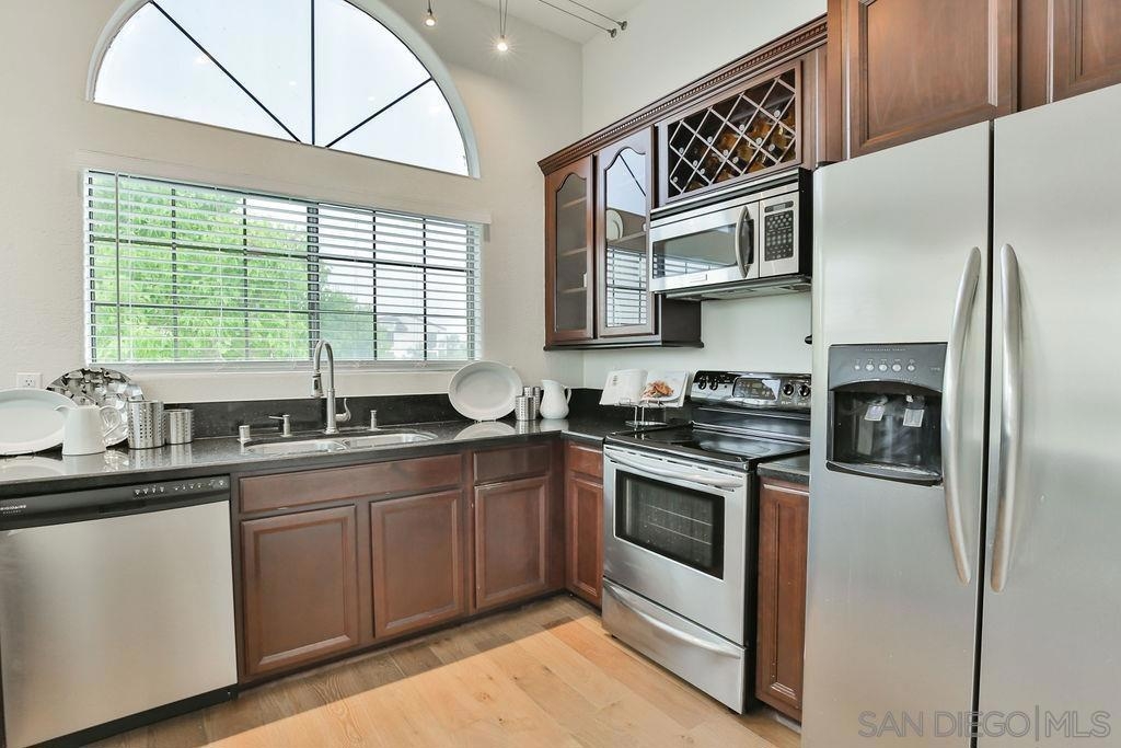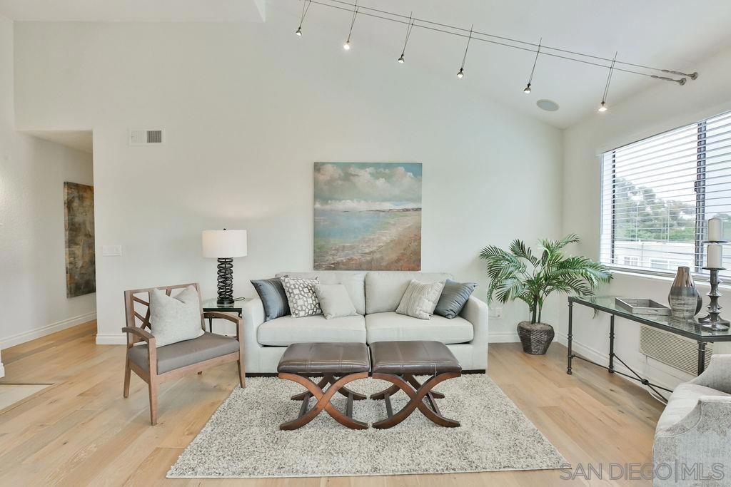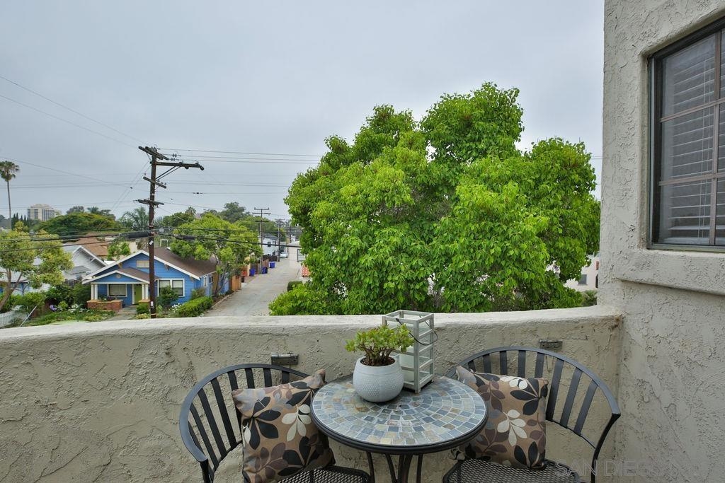Light & bright 2 bed, 2 full baths, top floor end-unit with vaulted ceilings. Perfectly located between Hillcrest & Marston Hills--head a few blocks North to Hillcrest's shops, dining and nightlife, or head S. a few blocks to Balboa Park, the San Diego Zoo, hiking trails and more! Like to cook? Large kitchen w/plenty of cabinets open to dining and living area. Other features incl. fireplace, two full baths, in-unit laundry, brand new wood flooring, fresh paint, private balcony, tree-top views, two wall A/C units too. Not a flip. Check out the 3-D Tour link. Equipment: Garage Door Opener, Range/Oven, Washer Sewer: Sewer Connected Topography: LL