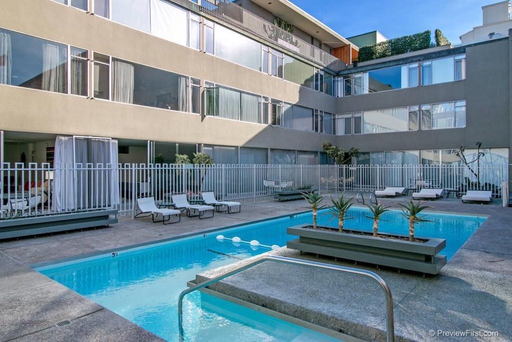 Step into on of San Diego's most sought after historical buildings, the Solomon Building. Designed by renowned architect, Henry Hester. Located in the popular Hillcrest community, directly across Balboa Park. Walk to shops, restaurants including Cocina Urbana, parks, and downtown. HUGE TAX SAVINGS with Mills Act Designation. This mid-century style unit is located on the 1st floor, with huge sliding glass doors facing the quiet pool area. Freshly painted walls & sleek staging makes this unit look gorgeous! Neighborhoods: Balboa Park / Park West Equipment: Range/Oven Other Fees: 0 Sewer: Sewer Connected Topography: LL