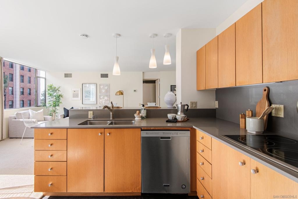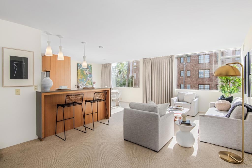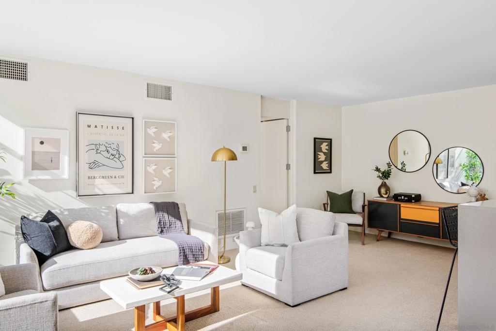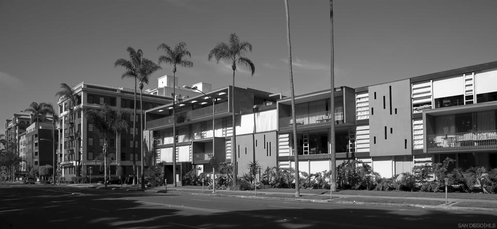Rarely available 3rd floor unit in historically designated Salomon Building located across from Balboa Park. Designed by Henry Hester, this building is one of San Diego’s finest examples of mid-century modern architecture. Plentiful windows and south-facing orientation allow for abundant natural light. Kitchen features stainless steel appliances. Coveted location enjoys close proximity to museums, restaurants, Old Globe Theatre and more. Mills Act status affords owner significantly reduced property taxes (appx. $2,800/yr).
