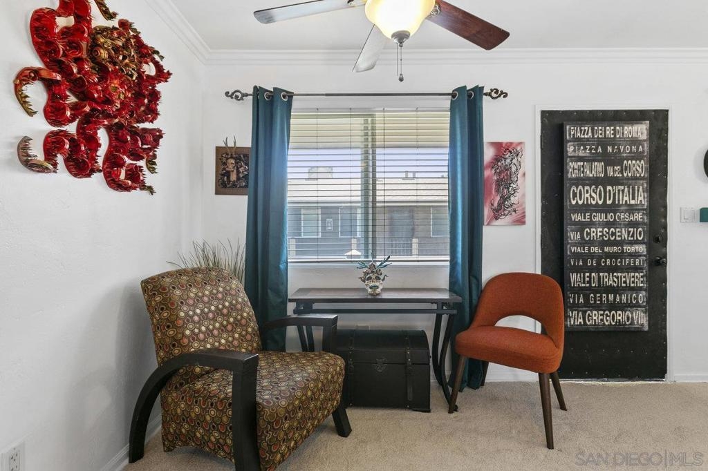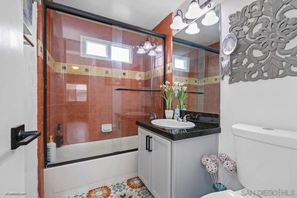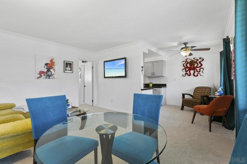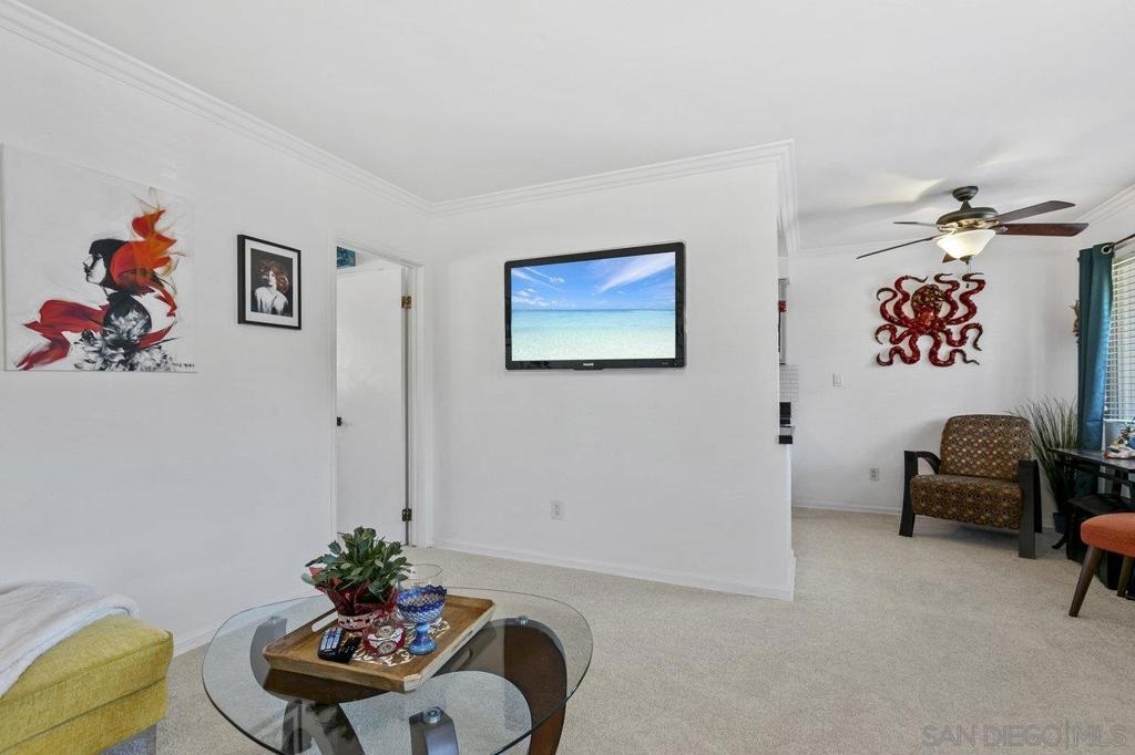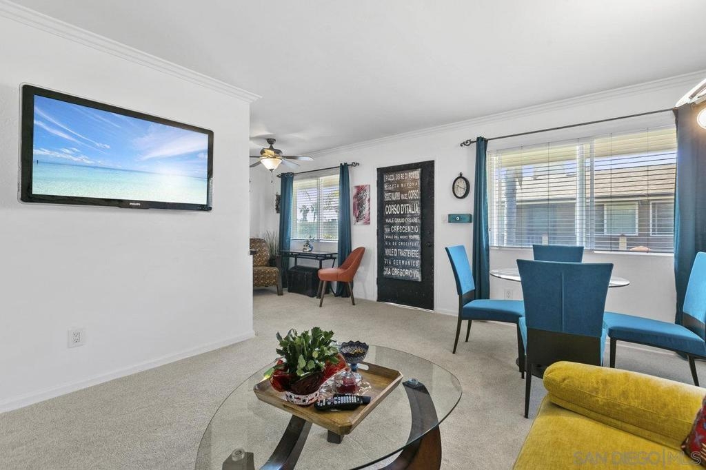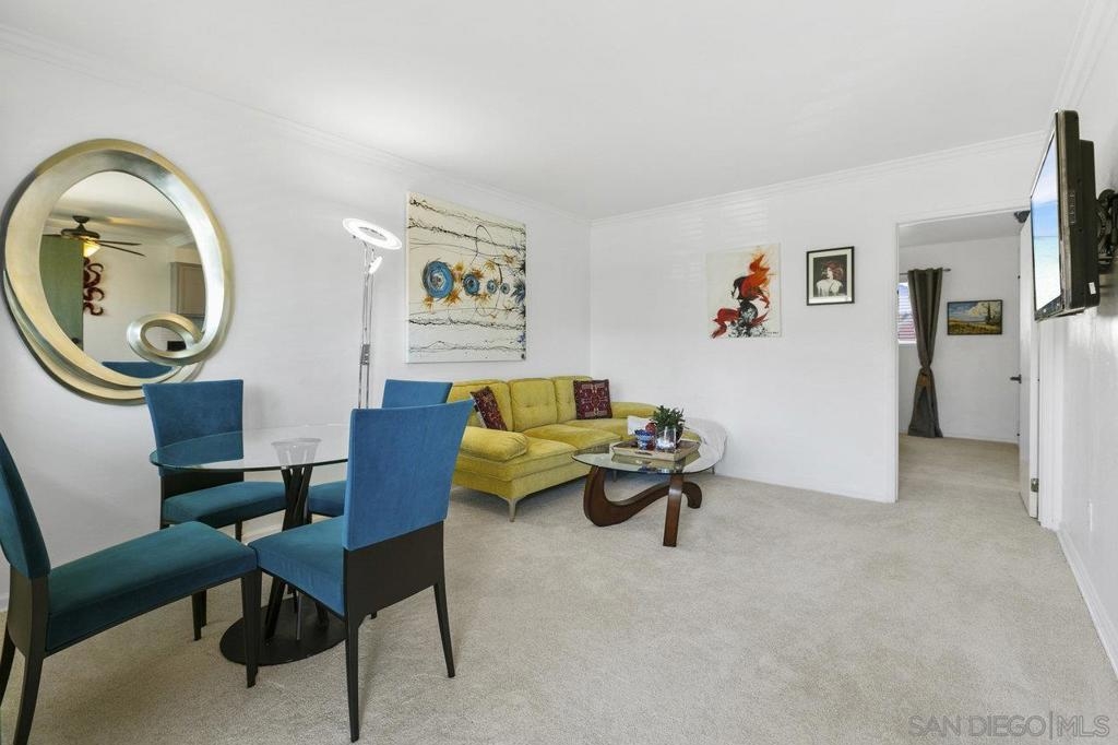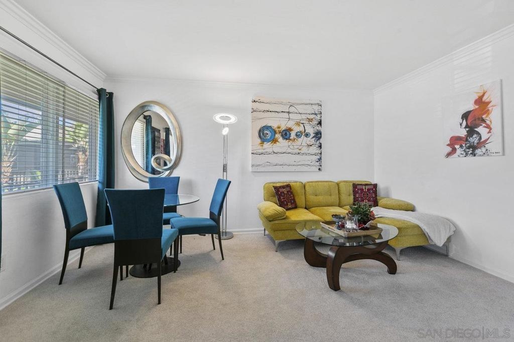 This stunning top floor condo situated in the desirable gated community of Stone Gate is nestled in the heart of Hillcrest. Offering spacious living room and bedroom with ample storage, and a convenient stackable washer and dryer. Brand new carpet throughout. The kitchen and bathroom feature striking designer Moroccan tile flooring and freshly painted cabinets. The kitchen offers stainless steel appliances, a newly installed reverse osmosis unit and garbage disposal in the sink. The bathroom has been updated with brand new toilet and sink. Triple-pane windows offer natural light and energy efficiency. You'll have an assigned parking space, and Stone Gate provides a well-manicured courtyard featuring a 3-Tier Waterfall Fountain, seating, and BBQ area. Perfectly situated within walking distance to Whole Foods, Ralphs, Trader Joes, Better Buzz Coffee, cafes, restaurants, and more.