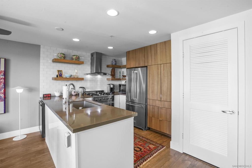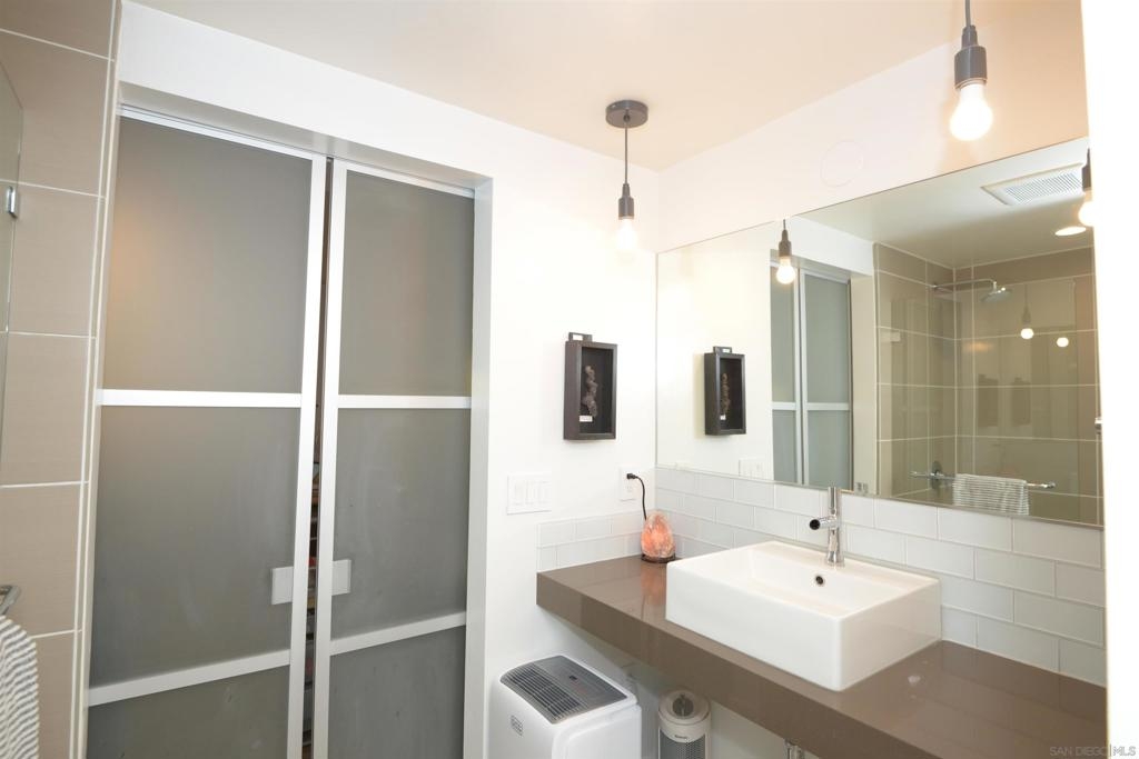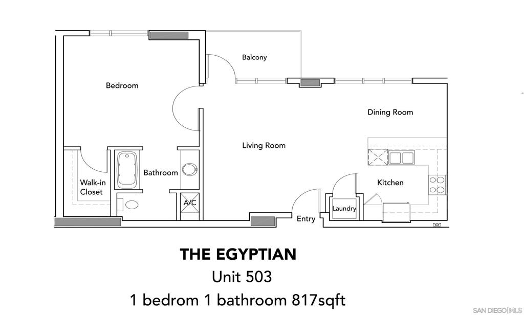 Welcome to the Egyptian, an elevated and modern concrete-constructed development incorporated into the Historic Egyptian Theater right in Hillcrest! This luxuriously updated, chic condo offers endless west-facing views! It has been meticulously maintained and is totally ready for your enjoyment. Stunning kitchen and bathroom, custom shelving, 2-car garage parking, in-unit laundry, and more! Saving the best for last, this is a quiet and rare courtyard unit. You can almost forget you live in the city! Features: Upgraded flooring throughout, Leviton dimmable electrical switches, Hunter Douglas window coverings, aluminum and frosted interior doors, California Closet custom shelving is installed in the living room, including a Murphy bed. Custom-fit shelves and drawers in the walk-in closet help with organization. Kitchen upgrades include quartz countertops, a custom kitchen sink, soft close cabinets, a newer dishwasher, a recently replaced Trane HVAC unit, and so much more! High-speed google fiber internet ready, cat5 wired outlets, two car gated garage car parking spaces. The Egyptian is situated in the prime location of Park Blvd. and University Ave. Convenient location in the middle of it all! Walkable to Sunday Hillcrest Farmers Market, Balboa Park, San Diego Zoo, and many restaurants, breweries, and coffee shops. The adjoining neighborhoods of University Heights and North Park are a stone's throw away. Nearby freeway access and main public transportation lines. Just minutes away from Downtown and San Diego International Airport. Equipment: Fire Sprinklers, Range/Oven Sewer: Sewer Connected Topography: RSLP