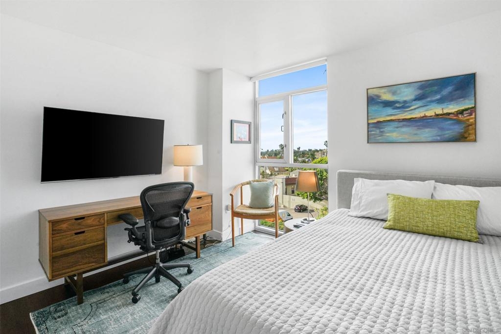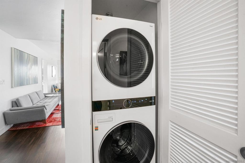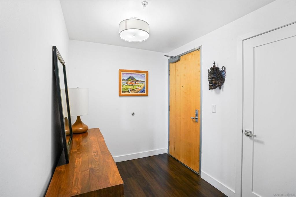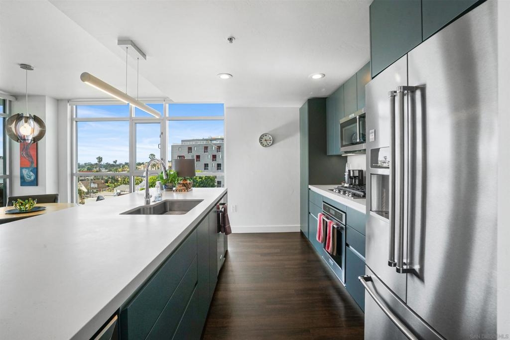 Stunning, recent remodel in the iconic Egyptian building! This reimagined corner unit offers panoramic northwest views toward Mt. Soledad, designer finishes, and a rare private patio. The interior showcases luxury vinyl tile throughout, Pedini cabinetry, KitchenAid appliances, a wine fridge, custom closets, and spa-inspired bathrooms. Additional highlights include Google Fiber readiness, 2 parking spaces with an EV charger, a large storage unit, and unbeatable walkable access to Hillcrest, Balboa Park, and more! Located in the heart of Hillcrest, this fully upgraded residence combines sophisticated design with everyday functionality. The sleek kitchen boasts Italian Pedini cabinets, a large waterfall island, pull-out pantry, Ferguson fixtures, and tucked outlets—all complemented by premium KitchenAid appliances and a built-in wine fridge. Floor-to-ceiling windows flood the open-concept living space with light and connect to a spacious private patio with elevated city views. The bathrooms are bright and serene, featuring white subway tile, upgraded lighting, Bluetooth speakers, and recessed niches. Additional upgrades include solid-core interior doors, Preston custom closets, under-cabinet lighting, dimmable recessed lights, a new laundry machine, and fully redone electrical throughout. Enjoy high-speed Google Fiber readiness, a private storage unit, and two garage parking spaces with an EV charger. Ideally situated near University Ave. and Park Blvd., you're steps from Hillcrest Farmers Market, the San Diego Zoo, Balboa Park, and endless dining options. With easy access to North Park, University Heights, Downtown, and the airport—this location truly connects you to it all.