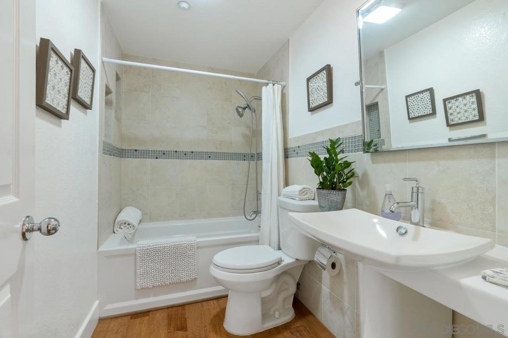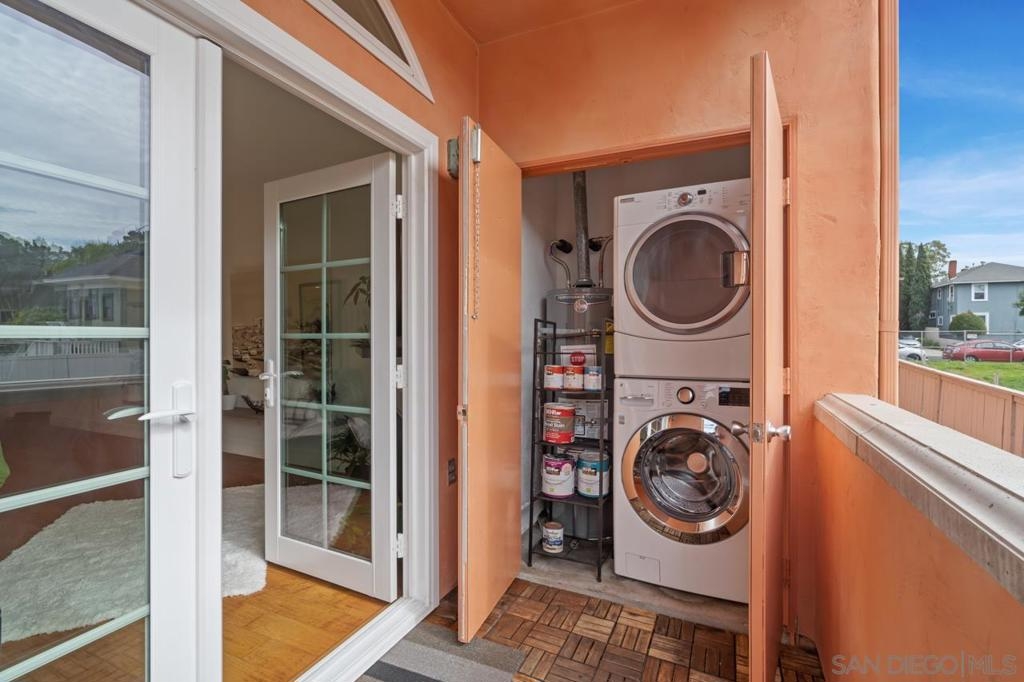Light and Bright southwest CORNER Hillcrest/Bankers Hill single story with balcony, remodeled bathrooms, newer plank flooring and designer paint, plus laundry in the unit. You'll enjoy this peaceful 23 unit complex with no steps to entry and a convenient elevator to garage entry, too. You'll be cooking with a gas range in an open plan kitchen/living/dining room or bringing in one of the nearby restaurants ethnic and vibrant meals to share....There's a cozy fireplace and French doors to the covered sun-filled private patio balcony. Lots of room for a barbecue, too. Both bedrooms have custom privacy top down/bottom up black out/filtered sunlight for restful sleep and daytime naps. Imagine being blocks from the center of the Hillcrest action yet home is a tranquil respite from busy days. Balboa Park is also a few blocks away, perfect for daily exercise, walking the dogs, or heading to the theater or many museums offered there. Beautiful historic Banker's Hill neighborhood is a mix of original buildings from the early 1900's and modern townhomes, with cutting edge architecture. Equipment: Dryer,Garage Door Opener, Washer, Water Filtration Sewer: Public Sewer Topography: LL