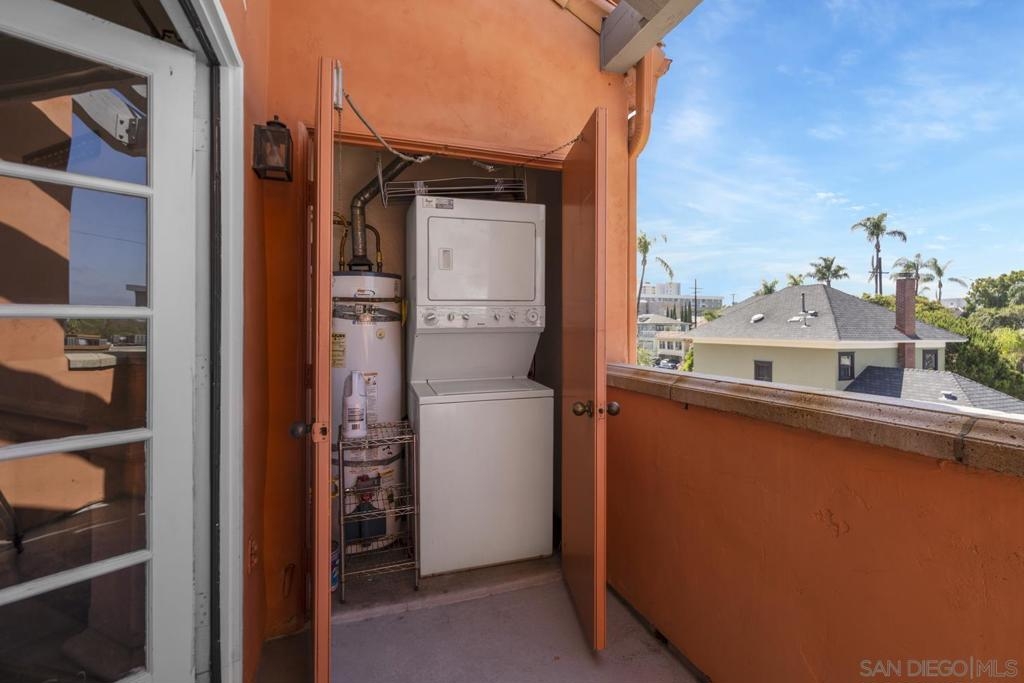 Light & bright top floor 2 bed 2 bath unit in desirable Trevi Villa of Hillcrest! Open floorplan features vaulted ceilings, cozy fireplace, French doors to balcony, dual master layout and in-unit laundry. Well-maintained Mediterranean-style complex with lush landscaping, inviting entry fountain, elevator and gated underground parking. Central location near shopping, dining, Balboa Park & night life! A must see! Equipment: Range/Oven Sewer: Sewer Connected Topography: LL