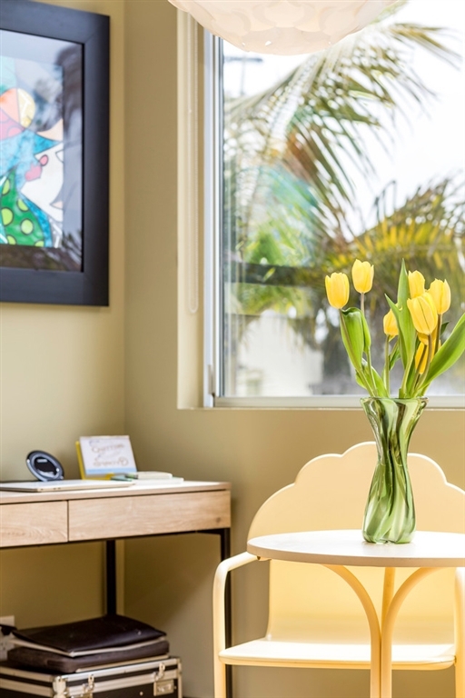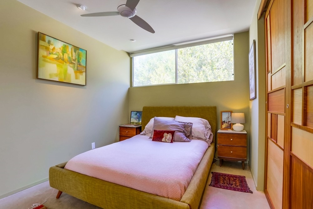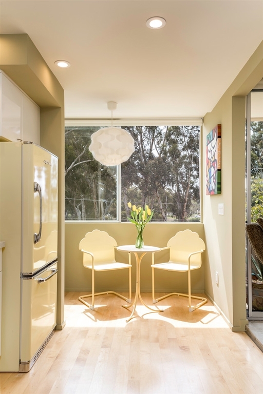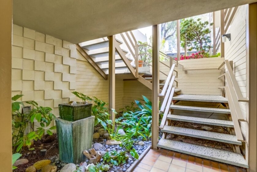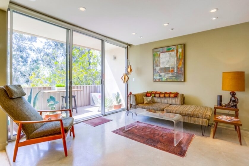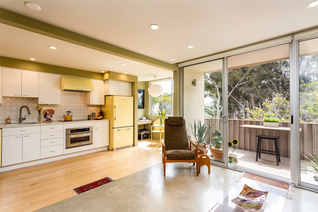 Own a piece of San Diego history! This mid-century modern style complex was designed by innovative Master Architects Lloyd Ruocco and Homer Delawie. Recently designated historic, and Mills Act approved! Upas Park is one of only a few residential buildings in San Diego that are Mills Act approved, allowing for a substantial reduction in annual property taxes. Meticulously and thoughtfully refined, this top floor, corner unit residence overlooks world famous Balboa Park. Mid-Century modern entices you with classic decor with the central landscaped courtyard with water feature. From the moment you enter the residence, and look down the gallery hall, you capture the views of Balboa Park. Upon entering the light and bright kitchen you immediately sense the marriage between vintage inspired design with modern performance. Features in the kitchen include Kitchen-Aid appliances with retro “Big Chill” skins, induction cooktop with commercial style hood, wall oven/microwave, European style InnerMost cabinets with wine rack and under counter lighting. Other designs include a 3D tile backsplash, recycled quartz counter tops, single handle pull down faucet, under mount stainless steel sink, and glistening birch hardwood floors. Enjoy sunny views from the breakfast area, which also features an office nook. Step up onto the concrete floor to enjoy the main living space. Floor-to-ceiling windows provide the perfect invitation to reconnect with nature right from your living room. All of the windows and the slider are Milgard double-pane with full lifetime warranties. Keep cool (and warm) with a stylish “Art Cool Gallery” LG ductless air-conditioner for today’s discerning art collector. Personalize the unit with your favorite artwork or photography for the ultimate in custom design plus energy-efficient technology. The living room offers custom, built-in shelving, and is wired for audio/visual. Just off the living room is a spacious 12x6 balcony that has a folding ta...
