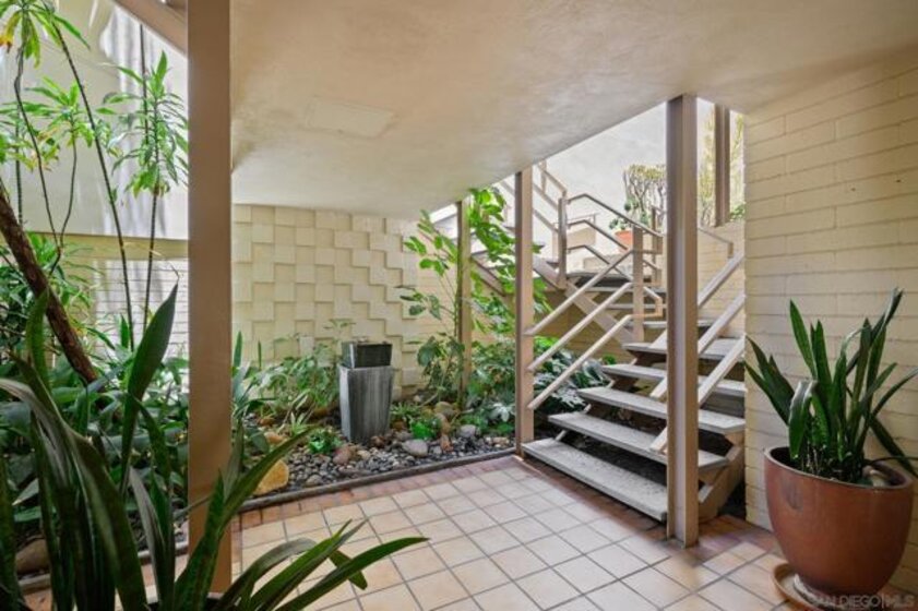 An opportunity awaits you at this historically designated mid-century building designed by Lloyd Ruocco and Homer Delawie! This unit is under the Mills Act allowing a significant tax reduction. It is centrally located and very close to public transportation, across the street from the world famous San Diego Zoo and the fun eclectic neighborhood of Hillcrest! This end unit features walls of windows with large sliding glass doors opening to a roomy garden patio from the living room and master suite . The condo was just painted, has newer flooring, updated kitchen and a concrete counter top! There is one designated parking spot (113) at the rear of the building which is very close to the condo. This home has been Virtually Staged....Enjoy! NO Smoking Complex. The Mills Act was approved for the complex. Each owner must apply for their unit to be included which has been done on this condo. It runs for approximately 10 years and must be renewed by each owner. It does transfer upon sale. The significance is the property taxes have a substantial reduction in price when Mills Act is in place. Unit 16 sold privately with no agents involved to my knowledge in April for $500,000. Equipment: Range/Oven Sewer: Sewer Connected, Public Sewer Topography: LL