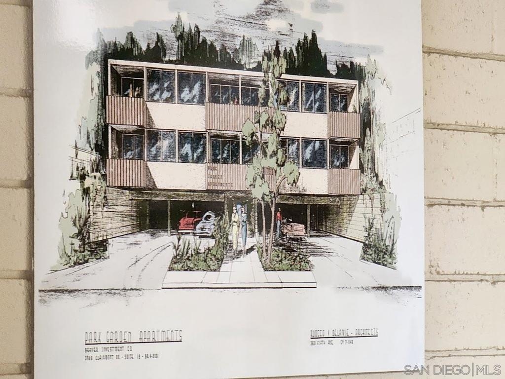 Sold prior to processing. Mid Century design by Master architects Homer Delawie and Lloyd Ruocco. Upas Park has been Historically Designated which allows for significant tax savings with the Mills Act. Top floor unit with beautiful views of Balboa park and evening lights. Remodeled kitchen, newer paint and carpet. Large balcony and assigned parking space. 2 pets allowed. Gated community with lush landscaping, fountain and tranquil sitting areas. Enjoy living in the heart of San Diego across the street from world famous San Diego Zoo, Balboa Park, near dining, nightlife, shopping and transit. Complex Features: ,, Equipment: Range/Oven Sewer: Sewer Connected Topography: LL Frontage: Open Space