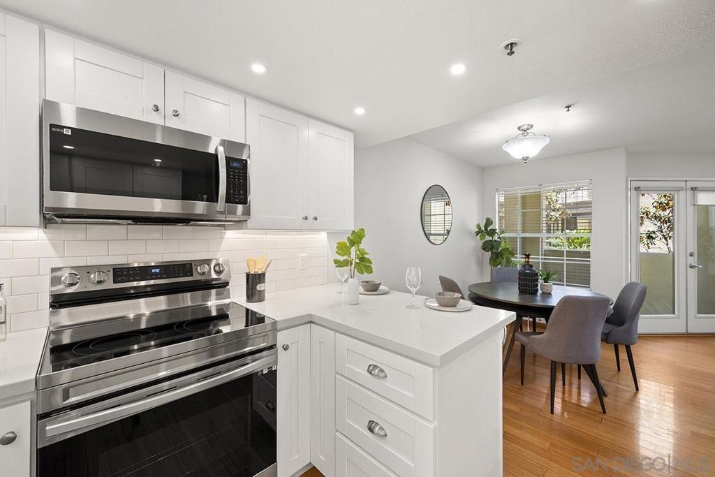 PRIME HILLCREST LOCATION: Do not miss this ground-level Uptown District residence that is merely steps away from EVERYTHING! This peaceful interior and impeccably maintained unit is flooded with natural light and boasts rich hardwood floors and baseboards, cool paint tones, and a private patio overlooking the tranquil rose garden courtyard. The fabulously upgraded kitchen is complete with stainless appliances, quartz surfaces, designer subway tile backsplash, farmhouse sink, recessed lighting, and ample cabinetry. Both dining and entertaining are a breeze with an adjacent dining space and convenient breakfast bar. PLUS two spacious bedrooms, two sparkling bathrooms, plenty of closet and storage space, in-unit washer/dryer, elevator access, and TWO secured parking spaces. A turnkey Uptown charmer fit for the discerning metropolitan dweller! Uptown District is a desirable gated community situated in the heart of bustling Hillcrest. Take advantage of being within walking distance of some of the city’s best restaurants, cafes, boutiques, grocery stores, beloved Hillcrest Farmers Market, and the world-famous Balboa Park. Residents enjoy the pool and spa, fully equipped fitness center, outdoor BBQ grilling area, dog park, and impeccably maintained landscaping. Complex Features: ,,, Equipment: Dryer, Range/Oven, Washer Sewer: Sewer Connected Topography: LL