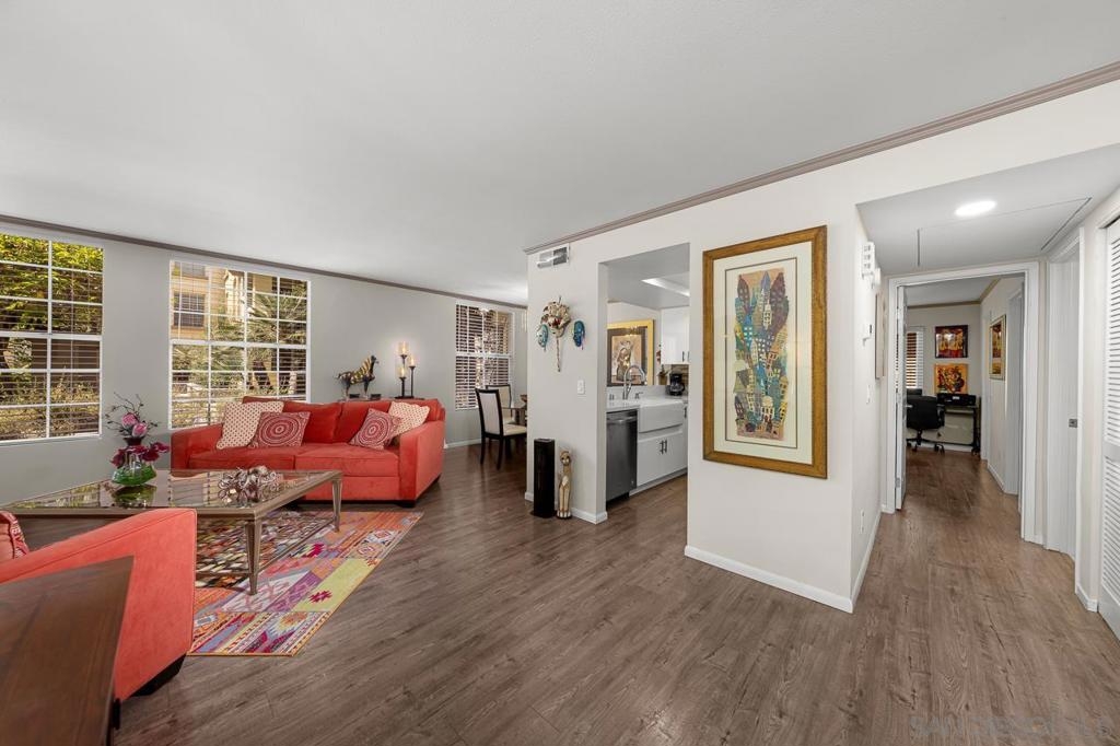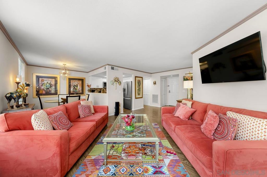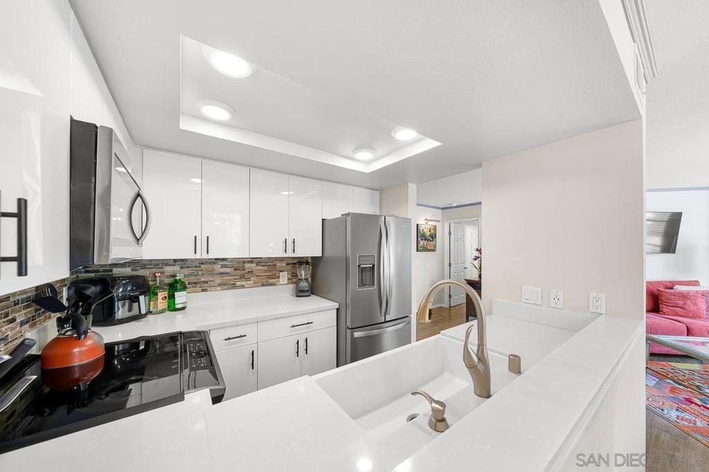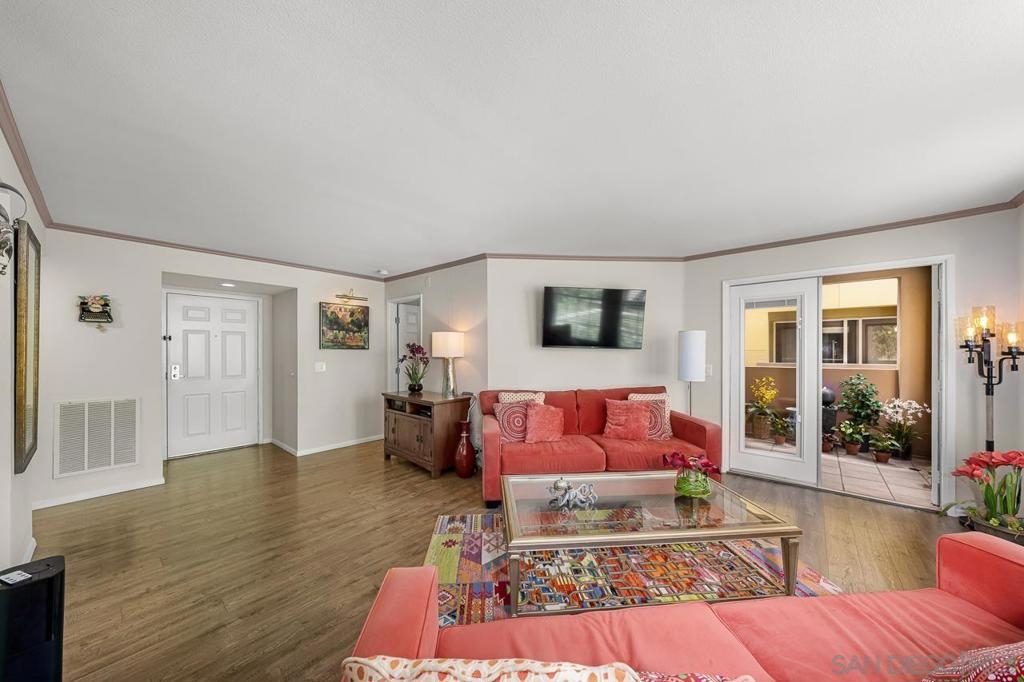 This freshly updated ground level corner unit offers 2 bedrooms and 2 bathrooms and is located in the vibrant Uptown District of Hillcrest. Truly turn-key, the home features premium modern finishes throughout, including a gourmet chef’s kitchen with sleek cabinetry, slab countertops, and top-grade appliances. The open concept layout is complemented by wide plank flooring, custom window treatments, custom lighting, designer paint, stylish remodeled bathrooms, ceiling fans, and a spacious private patio. Enjoy a resort-style complex just steps from shopping, dining, entertainment, and everything Metro San Diego has to offer. This is a property you do not want to miss!