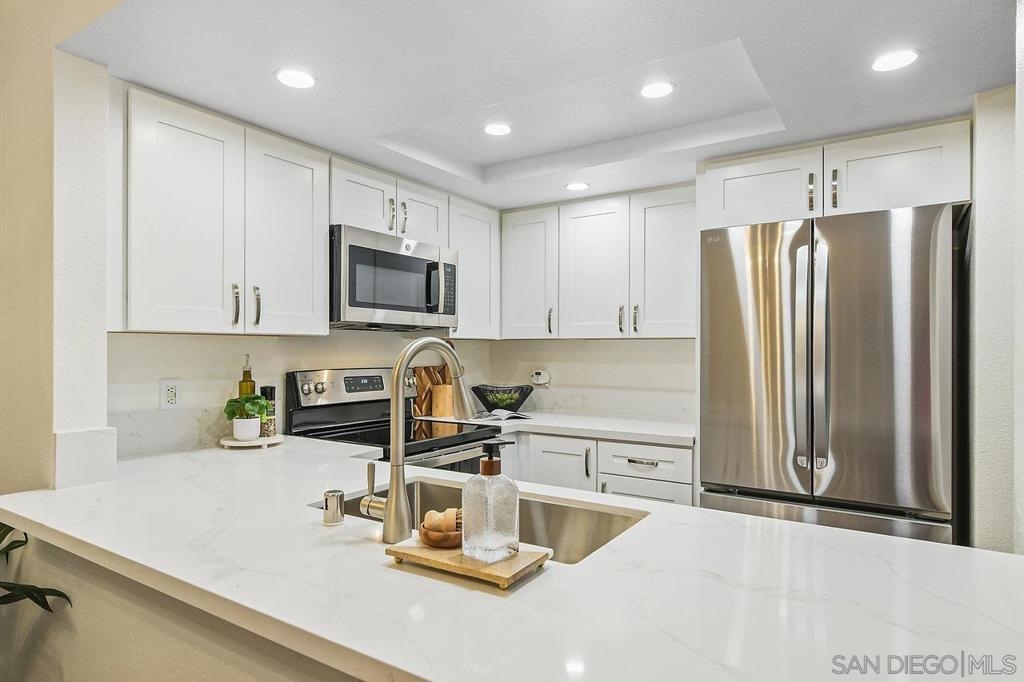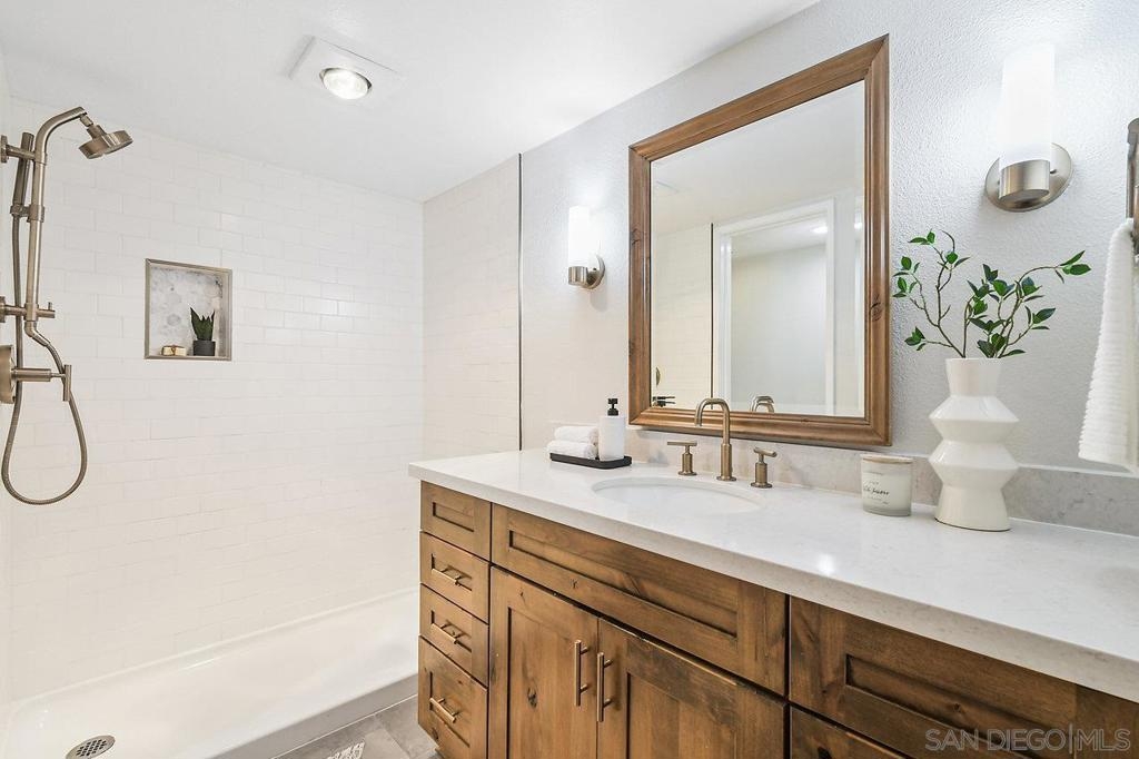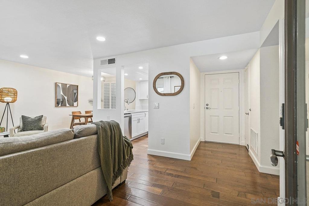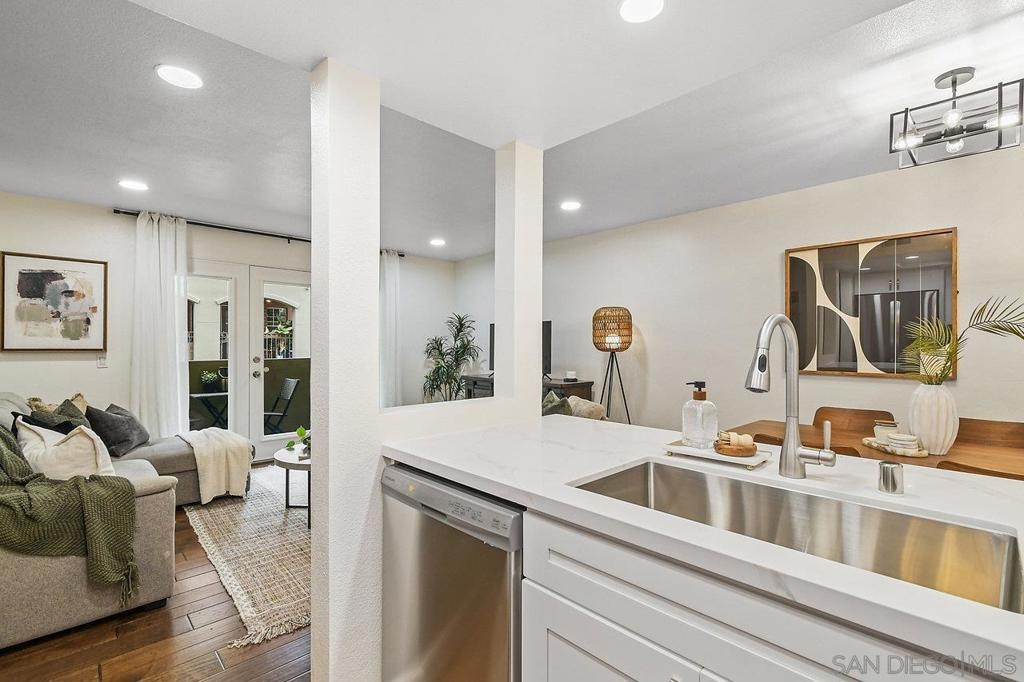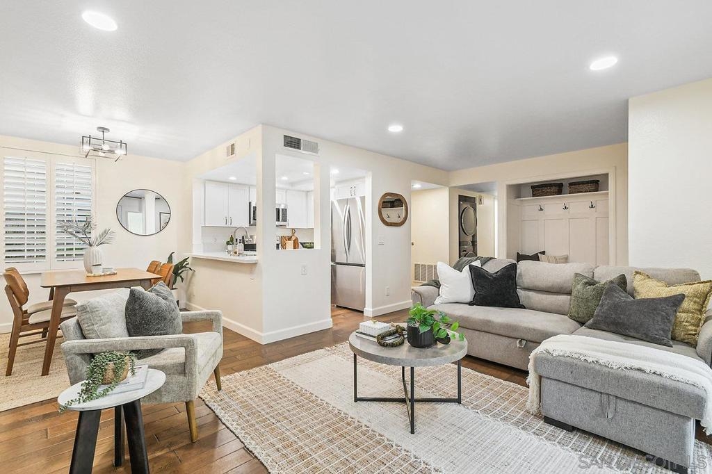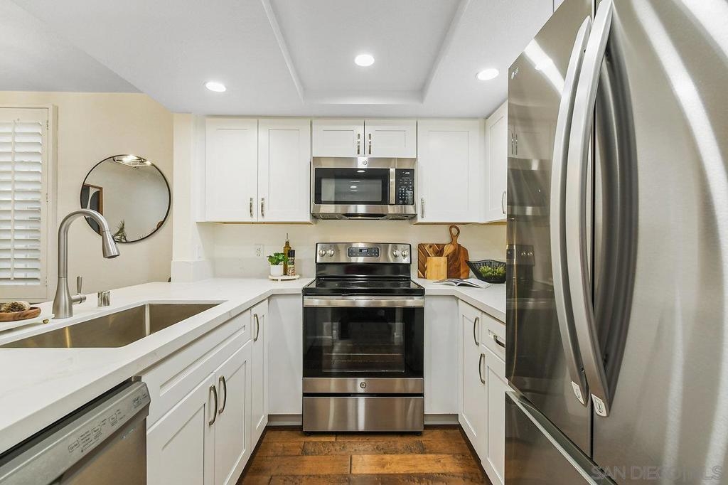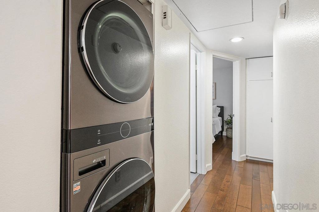 This Uptown District ground-level condo is updated and ready for its new owner! Located in a central and easily accessible location in the complex, this spacious 2 bedroom condo puts you in the middle of Hillcrest! Stylish updates include new white shaker cabinetry, quartz countertops, stainless steel appliances and recessed lighting. The open layout living room features plenty of space and natural light, with large windows and access to the south-facing patio. Both bathrooms showcase newer vanities and custom tile floors, plus subway tile in the showers. Other features include beautiful engineered wood flooring, a LG WashTower, and 2 convenient underground parking spaces. Don’t miss the friendly community feeling and amenities at Uptown, including a spectacular pool and spa, BBQ area with seating, a dog park, and gym. This unit also provides dual entry options – you can access the unit from inside the gated complex, or from the fire lane. Incredibly close to shopping (Trader Joe’s and Ralph’s), plus numerous dining, entertainment and transportation options. And the famous Hillcrest Farmer’s Market happens just a few blocks away! Don’t miss this one.