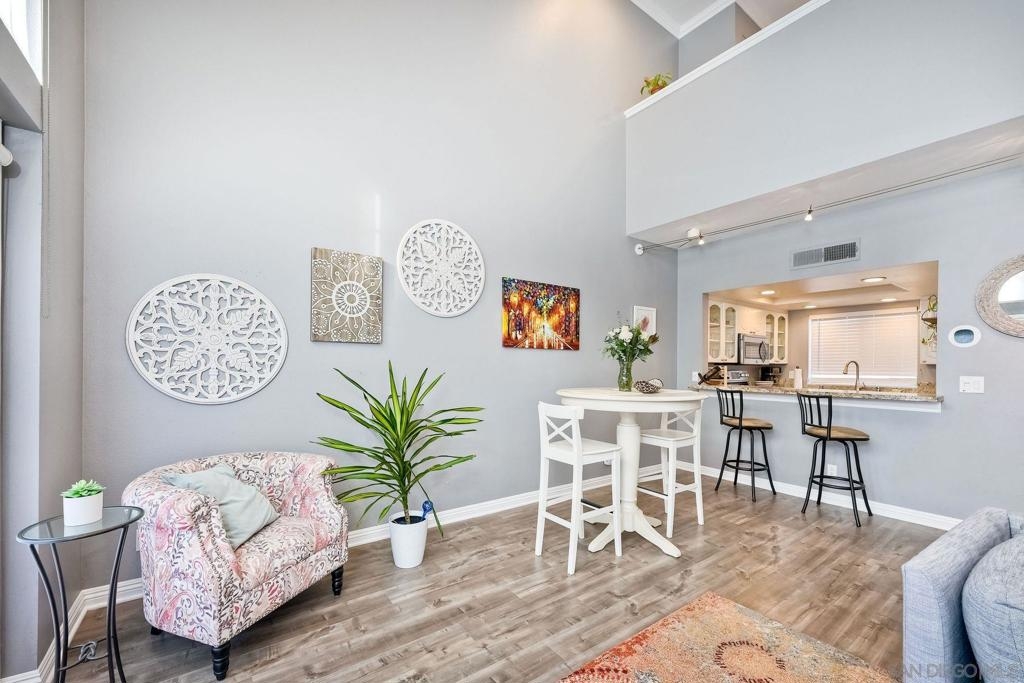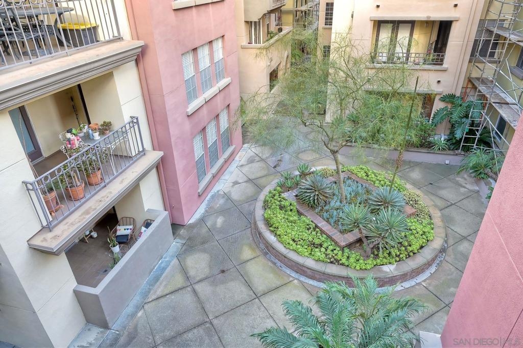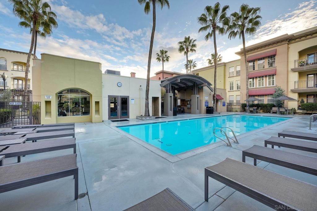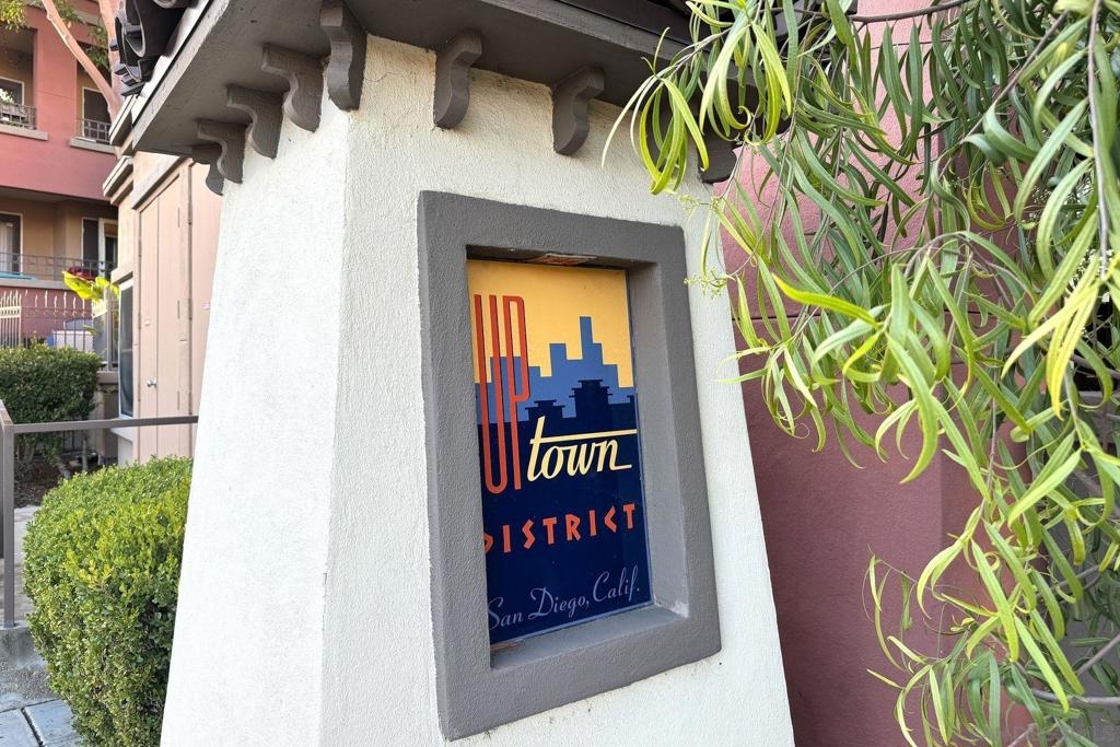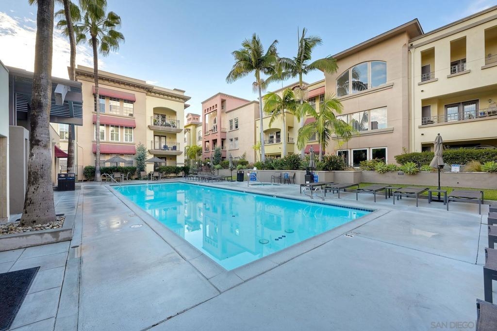 Welcome to urban sophistication. This is a limited designed TOP FLOOR, one-bedroom, one-and-a-half-bathroom residence nestled in the sought-after Uptown District Condos. Boasting a seamless blend of contemporary elegance and modern comfort, this exquisite unit offers an unparalleled living experience. Pool, Spa & Fitness center are right out your door. Leave your car in the garage, this complex is in the heart of the Hillcrest Community. Walk to shopping, restaurants, bars and Balboa Park. Need to get to work, or out of town? Public transportation is abound. This Uptown District complex, unit stands out with its distinct advantages, including a single shared wall and strategically placed East & West exposures that invite a refreshing cross breeze. Its central location ensures access to essential amenities: mailbox station, elevator, trash chute, and designated parking space #327. Residents are greeted by the community's gated ambiance, highlighted by courtyards, a tranquil sitting area complemented by a water feature, and coveted amenities like a pool, spa, gym, management office, and a dedicated dog park. A standout feature of this residence is the convertible roof-space, allowing for exclusive customization. Additionally, the garage is equipped with shared charging stations, catering E-vehicles. Commuters will appreciate the abundance of public transportation options, while quick access to Highways 163 & 8 simplifies regional travel. Downtown San Diego is a mere ten-minute drive via Park Blvd, adding to the property's allure. Inside, the condo exudes sophistication with granite countertops, stainless steel appliances, and luxury vinyl plank flooring. The vaulted ceiling amplifies the 735 sqft. space, creating an expansive feel throughout. Retreat to the lofted bedroom, a serene haven complete with a luxurious en-suite bathroom and generous closet space. The well-designed one-and-a-half-bathroom layout ensures optimal convenience and privacy, catering to modern lifestyles and seamless hosting. Don't miss the opportunity to explore this exquisite property; schedule your tour today.
