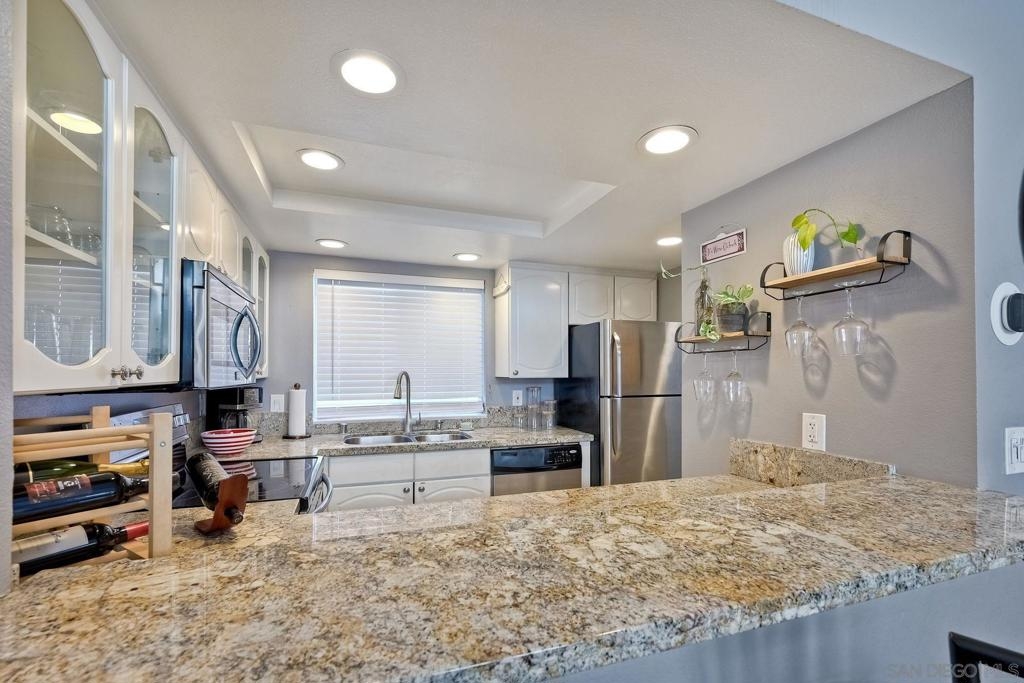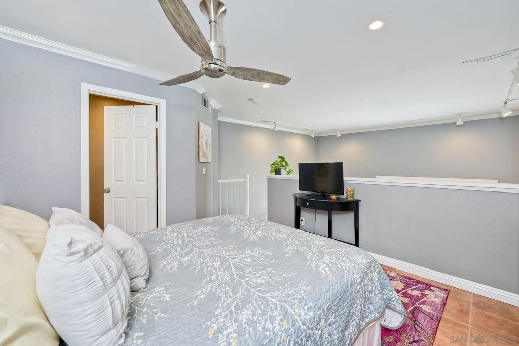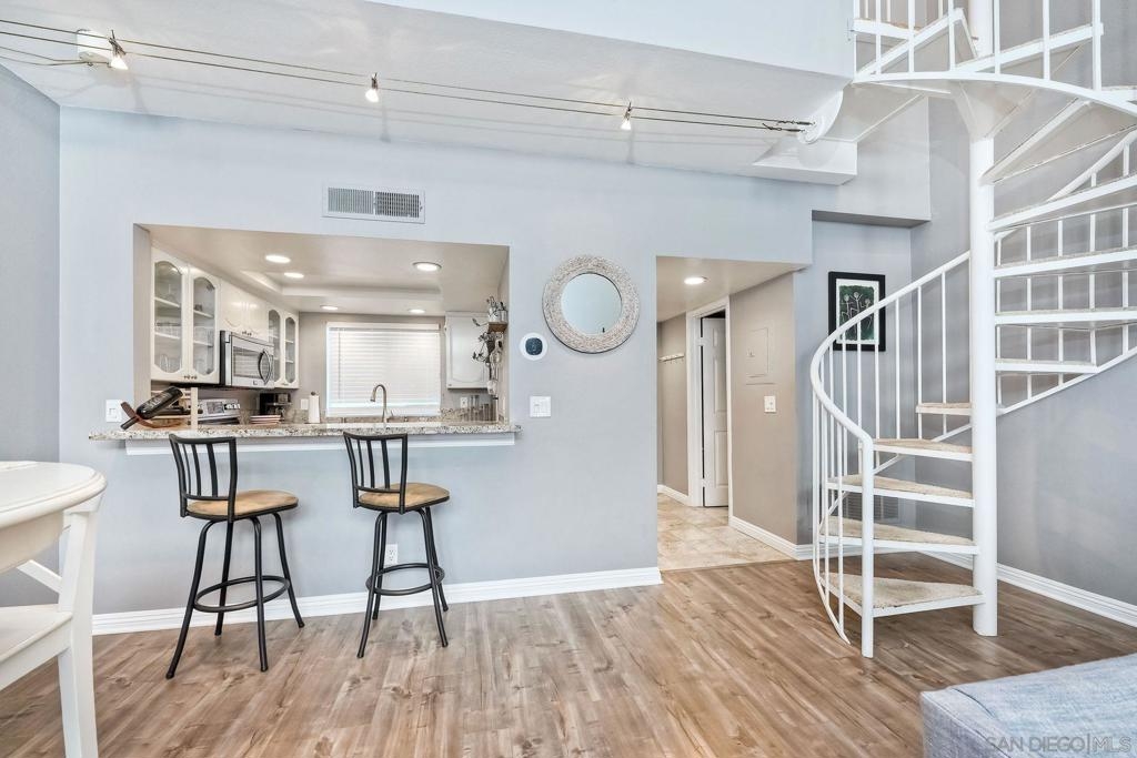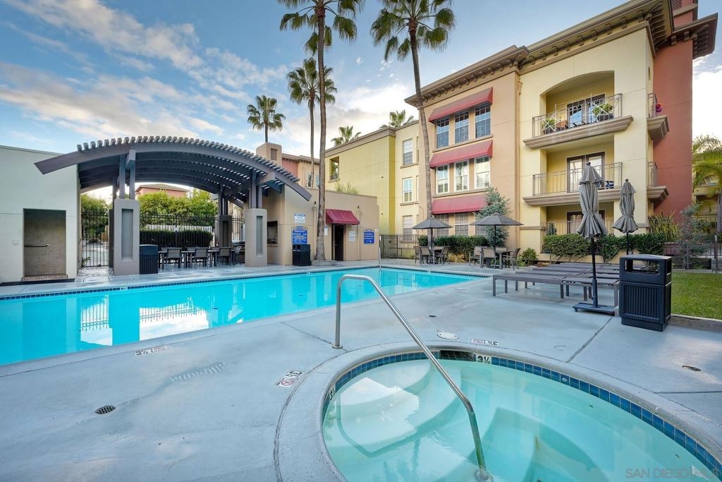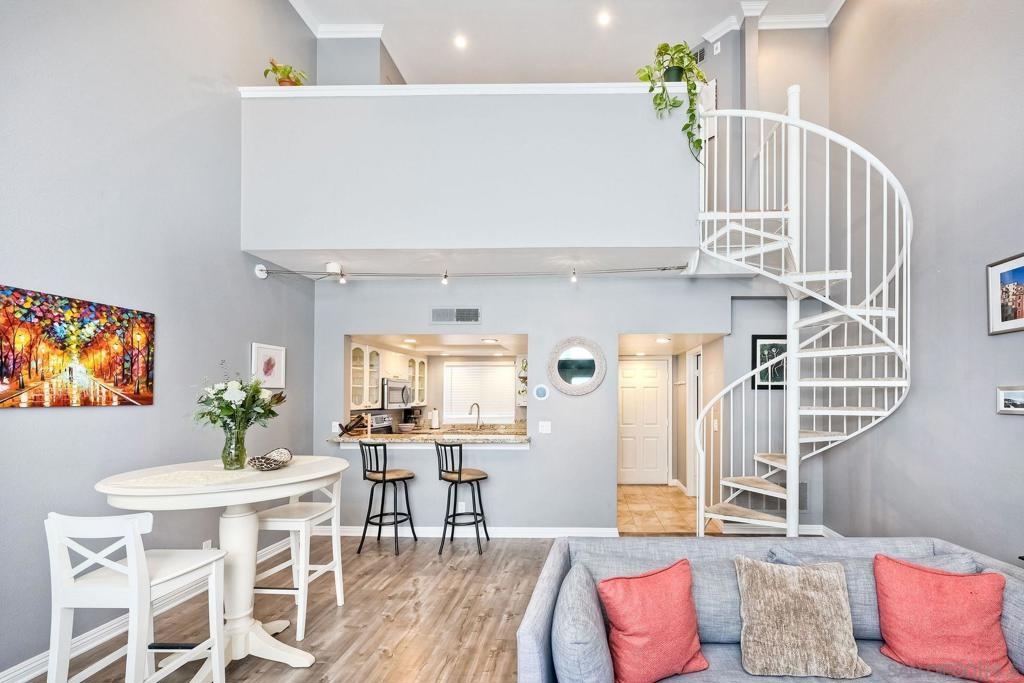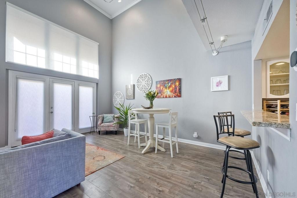 Welcome to urban sophistication. This is a limited designed TOP FLOOR, one-bedroom, one-and-a-half-bathroom residence nestled in the sought-after Uptown District Condos. Boasting a seamless blend of contemporary elegance and modern comfort, this exquisite unit offers an unparalleled living experience. Pool, Spa & Fitness center are right out your door. Leave your car in the garage, this complex is in the heart of the Hillcrest Community. Walk to shopping, restaurants, bars and Balboa Park. Need to get to work, or out of town? Public transportation is abound. This Uptown District complex, unit stands out with its distinct advantages, including a single shared wall and strategically placed East & West exposures that invite a refreshing cross breeze. Its central location ensures access to essential amenities: mailbox station, elevator, trash chute, and designated parking space #327. Residents are greeted by the community's gated ambiance, highlighted by courtyards, a tranquil sitting area complemented by a water feature, and coveted amenities like a pool, spa, gym, management office, and a dedicated dog park. A standout feature of this residence is the convertible roof-space, allowing for exclusive customization. Additionally, the garage is equipped with shared charging stations, catering E-vehicles. Commuters will appreciate the abundance of public transportation options, while quick access to Highways 163 & 8 simplifies regional travel. Downtown San Diego is a mere ten-minute drive via Park Blvd, adding to the property's allure. Inside, the condo exudes sophistication with granite countertops, stainless steel appliances, and luxury vinyl plank flooring. The vaulted ceiling amplifies the 735 sqft. space, creating an expansive feel throughout. Retreat to the lofted bedroom, a serene haven complete with a luxurious en-suite bathroom and generous closet space. The well-designed one-and-a-half-bathroom layout ensures optimal convenience and privacy, catering to modern lifestyles and seamless hosting. Don't miss the opportunity to explore this exquisite property; schedule your tour today.