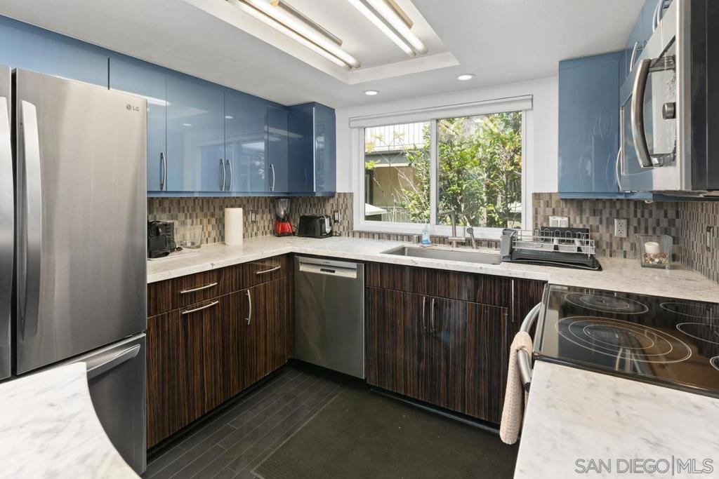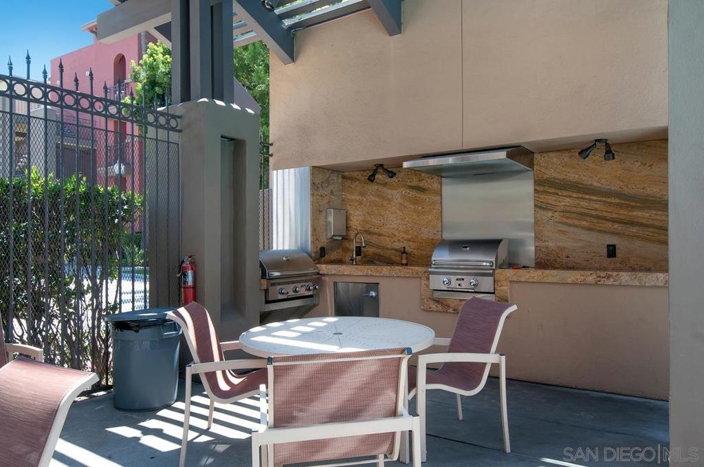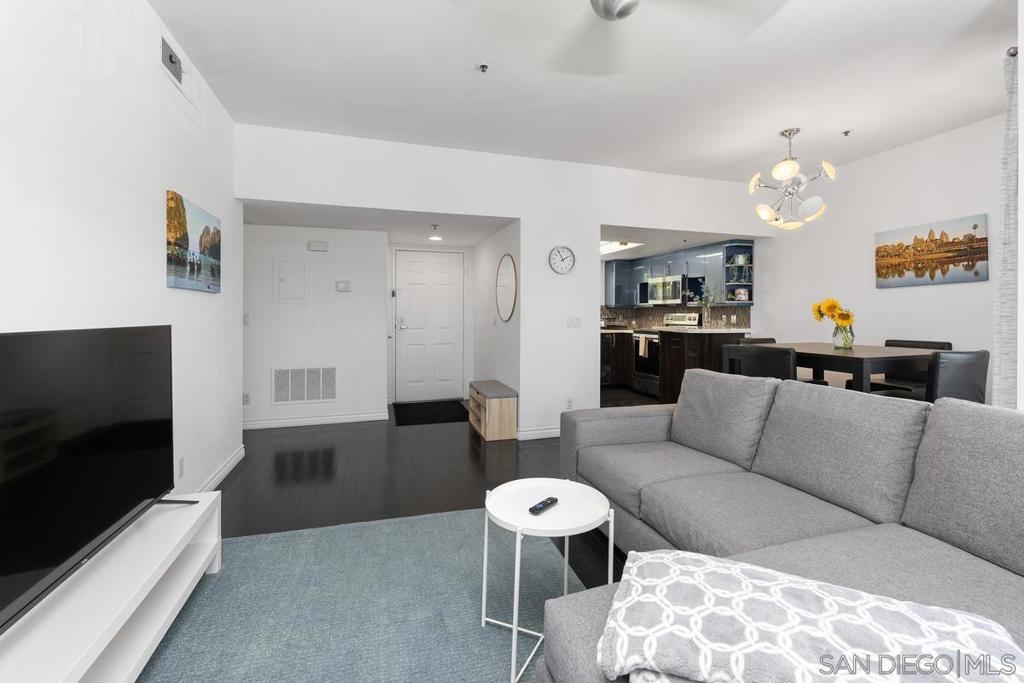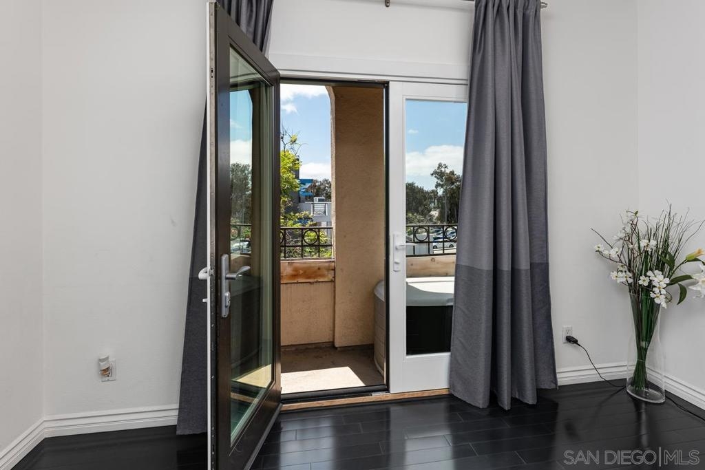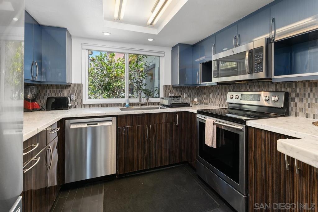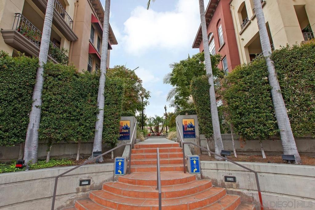 Rare private top floor condo in desirable Uptown District in the heart of Hillcrest. This highly upgraded two bedroom two bath unit features a designer kitchen with chic custom cabinetry, marble countertops and stainless appliances. Spa like bathrooms with Zuma soaking tub, custom vanities and tumbled marble showers. Plenty of natural light fills this west facing unit. Enjoy your morning coffee on one of the two private balconies overlooking the urban cityscape. Ample closet space and in-unit stacked Bosch washer/dryer, new Milgard windows and french doors and maple hardwood floors throughout. The gated community offers resort-style amenities including underground parking (two deeded spaces-not tandem, one with an EV charging station), pool, spa, gym, BBQ area, dog park and beautifully maintained grounds, all just steps away from Trader Joe’s, Ralphs, cafes, shops, and restaurants. Priced to sell, don’t miss this chance to get into Hillcrest and make it your own!