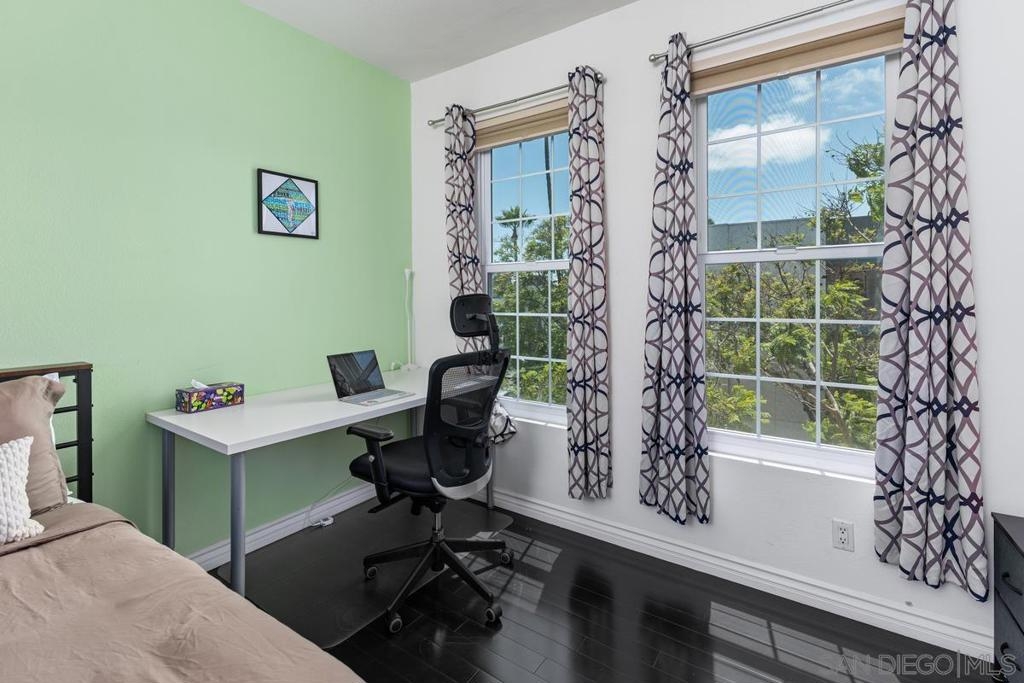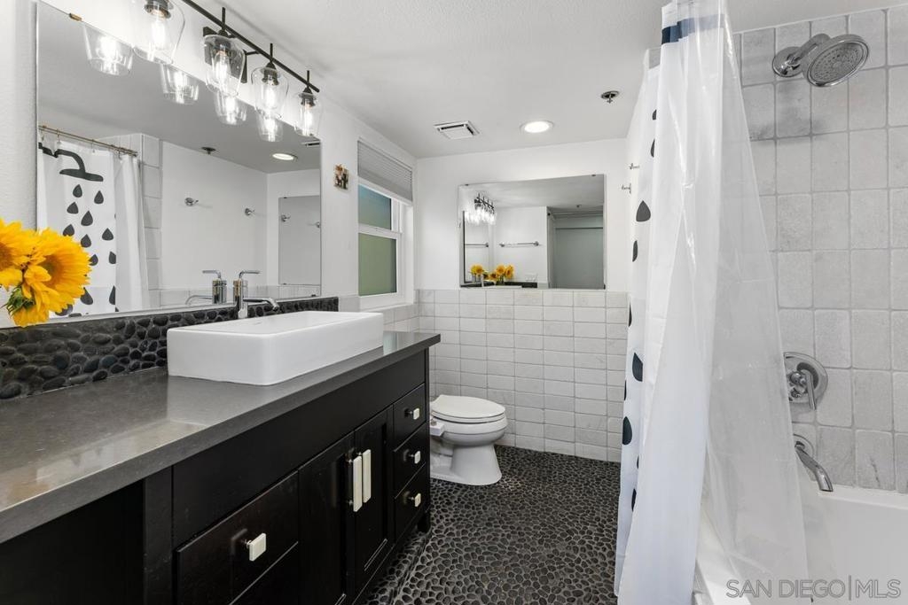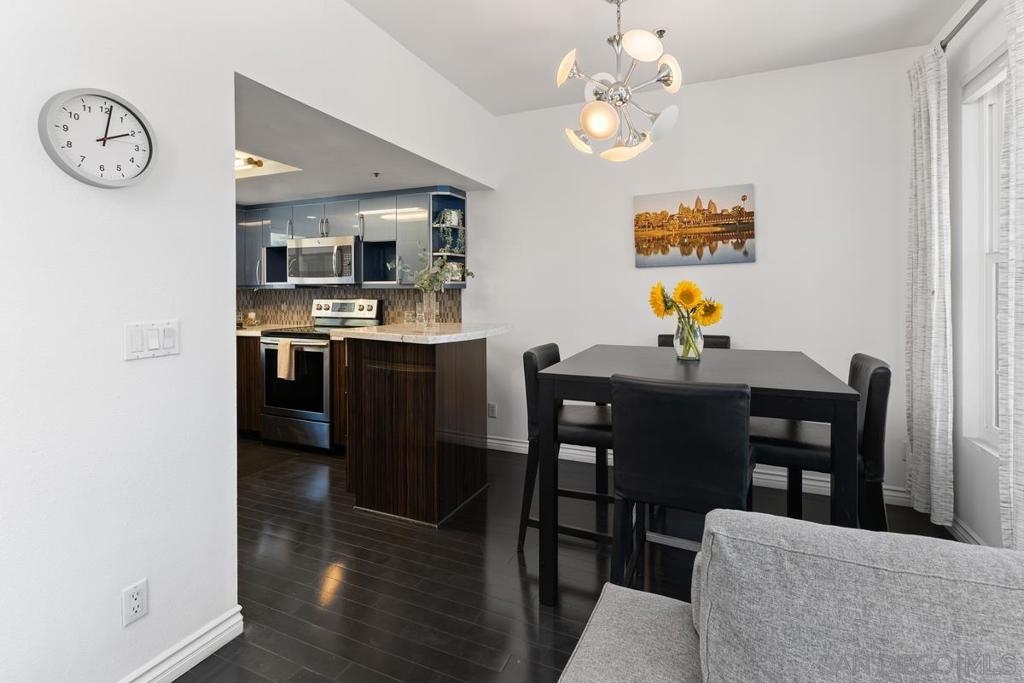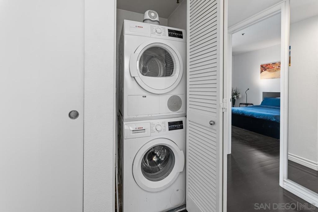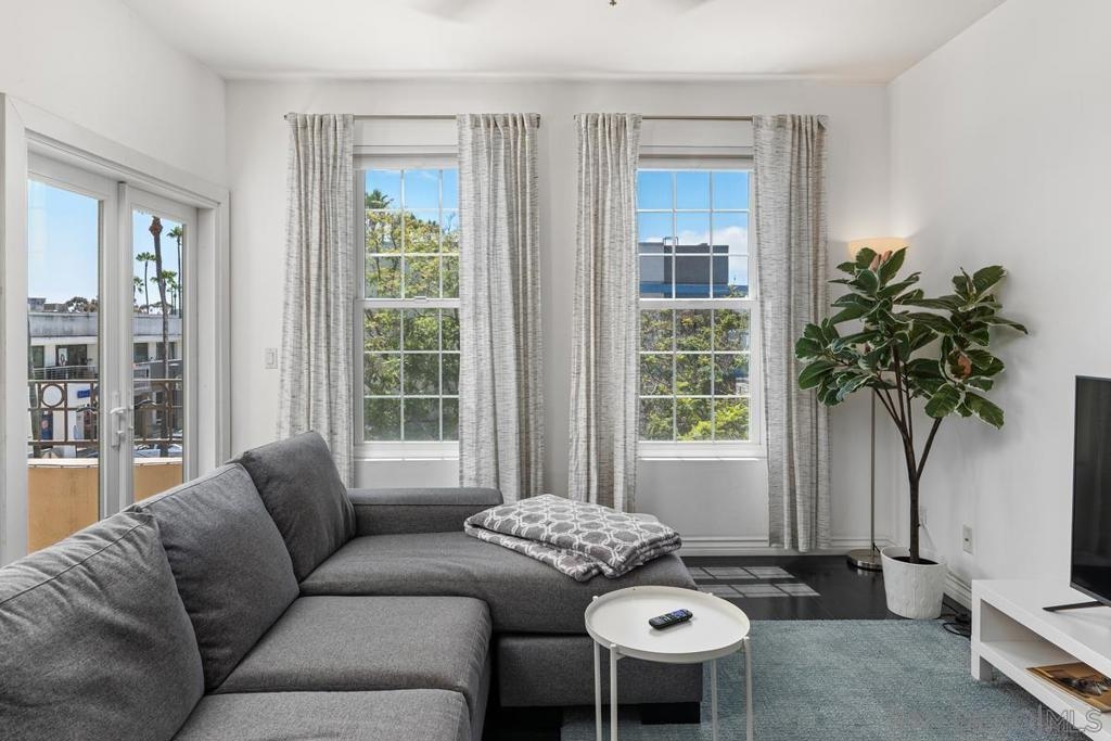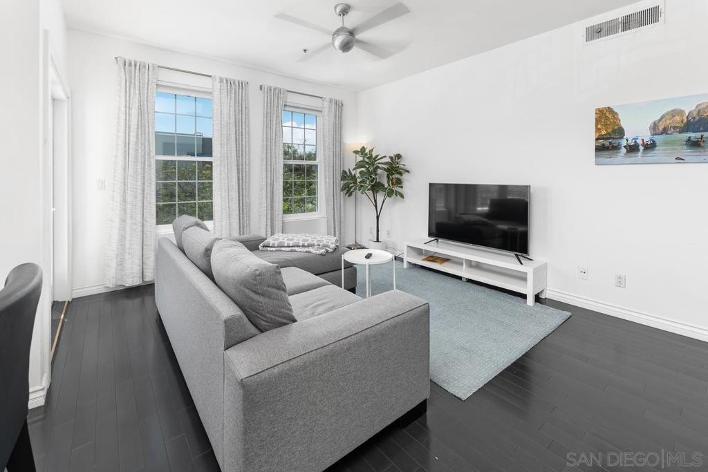 Rare private top floor condo in desirable Uptown District in the heart of Hillcrest. This highly upgraded two bedroom two bath unit features a designer kitchen with chic custom cabinetry, marble countertops and stainless appliances. Spa like bathrooms with Zuma soaking tub, custom vanities and tumbled marble showers. Plenty of natural light fills this west facing unit. Enjoy your morning coffee on one of the two private balconies overlooking the urban cityscape. Ample closet space and in-unit stacked Bosch washer/dryer, new Milgard windows and french doors and maple hardwood floors throughout. The gated community offers resort-style amenities including underground parking (two deeded spaces-not tandem, one with an EV charging station), pool, spa, gym, BBQ area, dog park and beautifully maintained grounds, all just steps away from Trader Joe’s, Ralphs, cafes, shops, and restaurants. Priced to sell, don’t miss this chance to get into Hillcrest and make it your own!