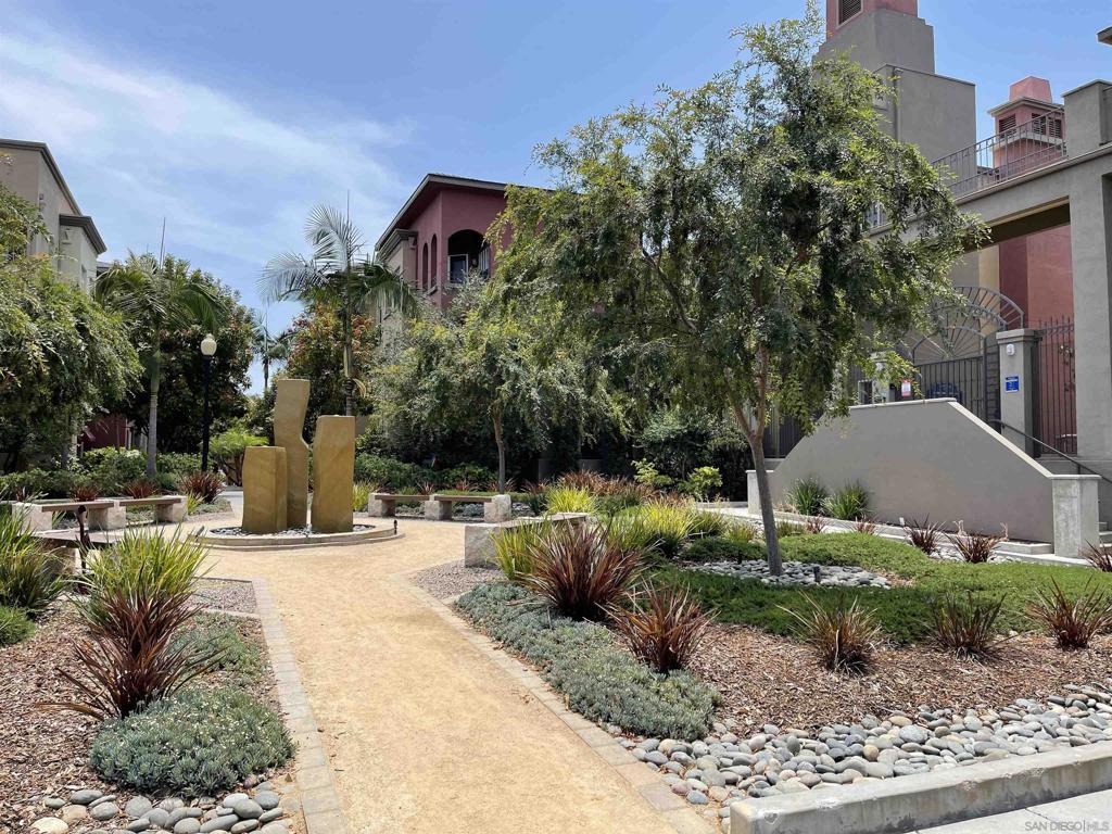 This is it! The rarely available townhouse at the desireable Uptown District. One of only 20 townhouses, this corner unit offers a large, open living/dining area with high ceilings.Two sets of french doors, and the additiional bay window in the dining area, provides added light, gleaming on the rich, hand carved wood flooring. Enjoy the downstairs patios, a private area off the living room and one off the dining room A professionally designed kitchen offers inset and under counter lighting, upscale wood cabinetry, a range top, wall oven, and lots of granite countertop The upstairs bedrooms, are both ensuite and have been remodeled. Both contain large, professionally organized closets, walk-in showers and ceiling fans The larger, east facing opens to the upstairs, sunny, east facing patio. Lemon trees may stay. Recent HVAC, washer/dryer and two deeded parking spaces complete this special home. Enjoy all the wonderful amenities the complex has to offer, year-round heated pool, spa, bbq area and a dog park. You are within walking distance to Trader Joe's, Ralphs, coffee shops and many restaurants . Complex Features: ,,,,, Equipment: Dryer, Washer Sewer: Public Sewer Topography: LL